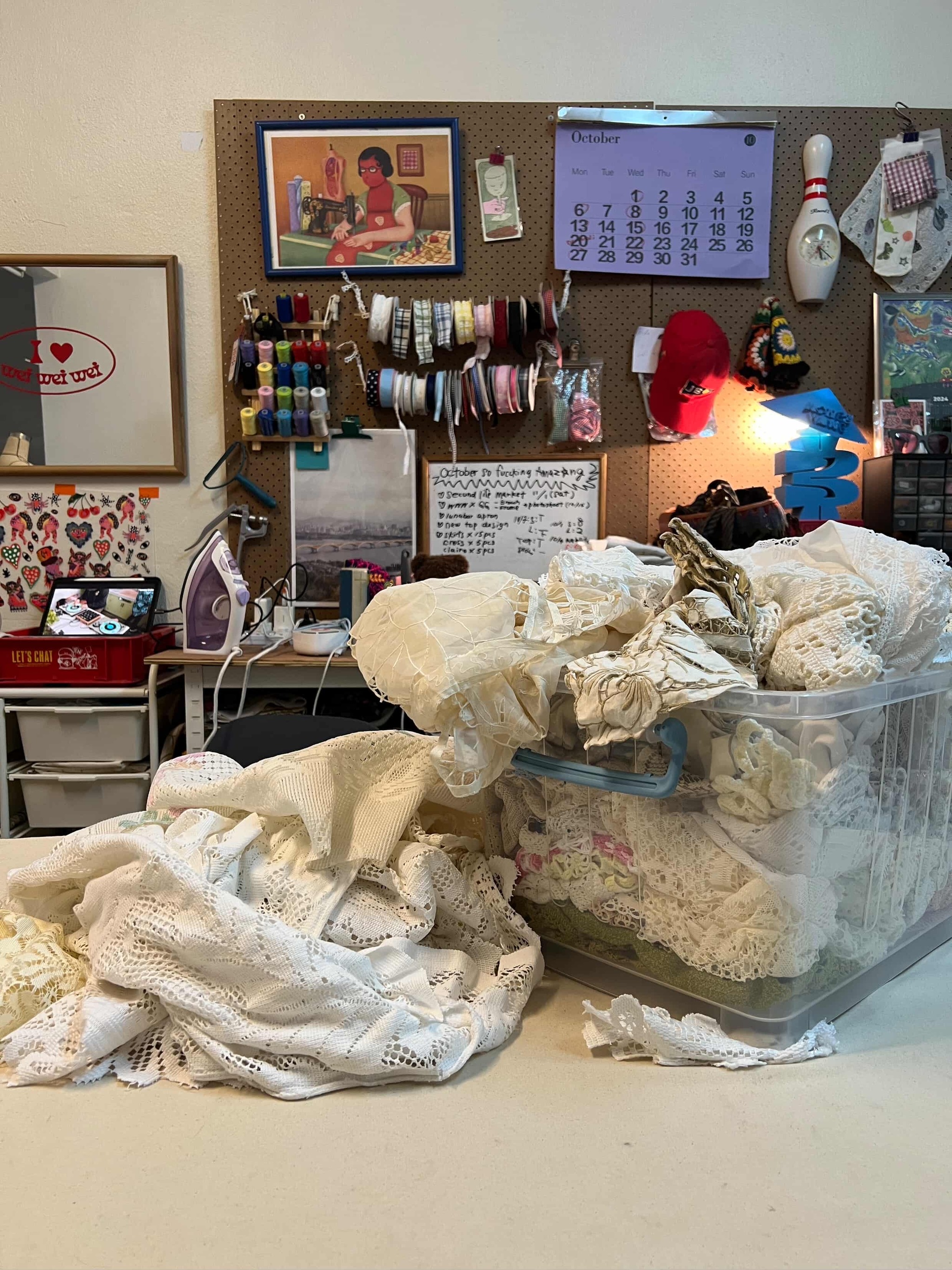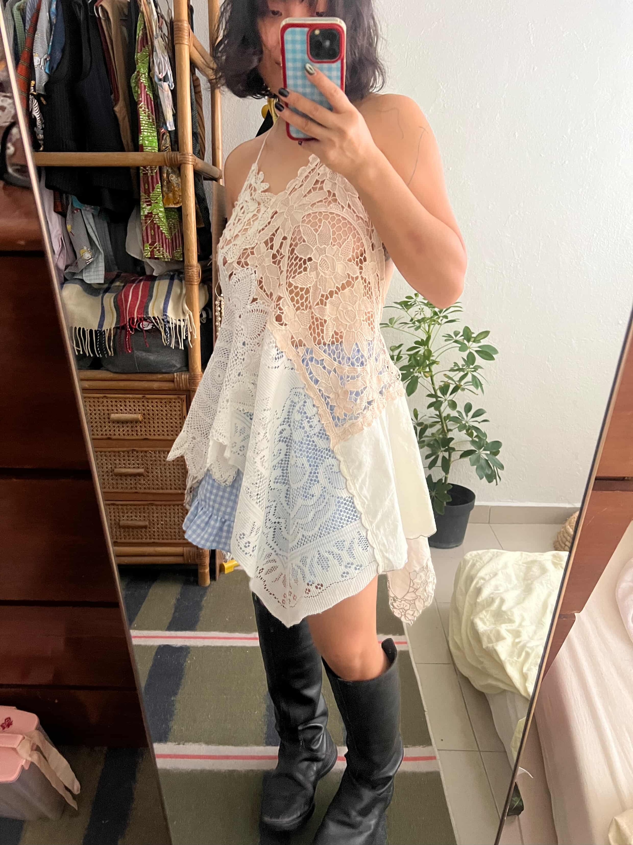RIE:本当にありがとうございます!本当に嬉しいです。weiweiweiは、実は2023年の終わりに親友のRainaと一緒に始めたんです。二人ともファッションデザインを学んでいましたが、それぞれ別の国で、帰国後、ただ一緒に楽しく服を作りたいと思ったんです。私は昔から古着屋巡りが大好きだったので、実験できる服や生地がたくさんありました。とても自然な流れで、ただ遊んで、ミックスして、ワクワクすることを追求していくうちに、作品が完成していきました。