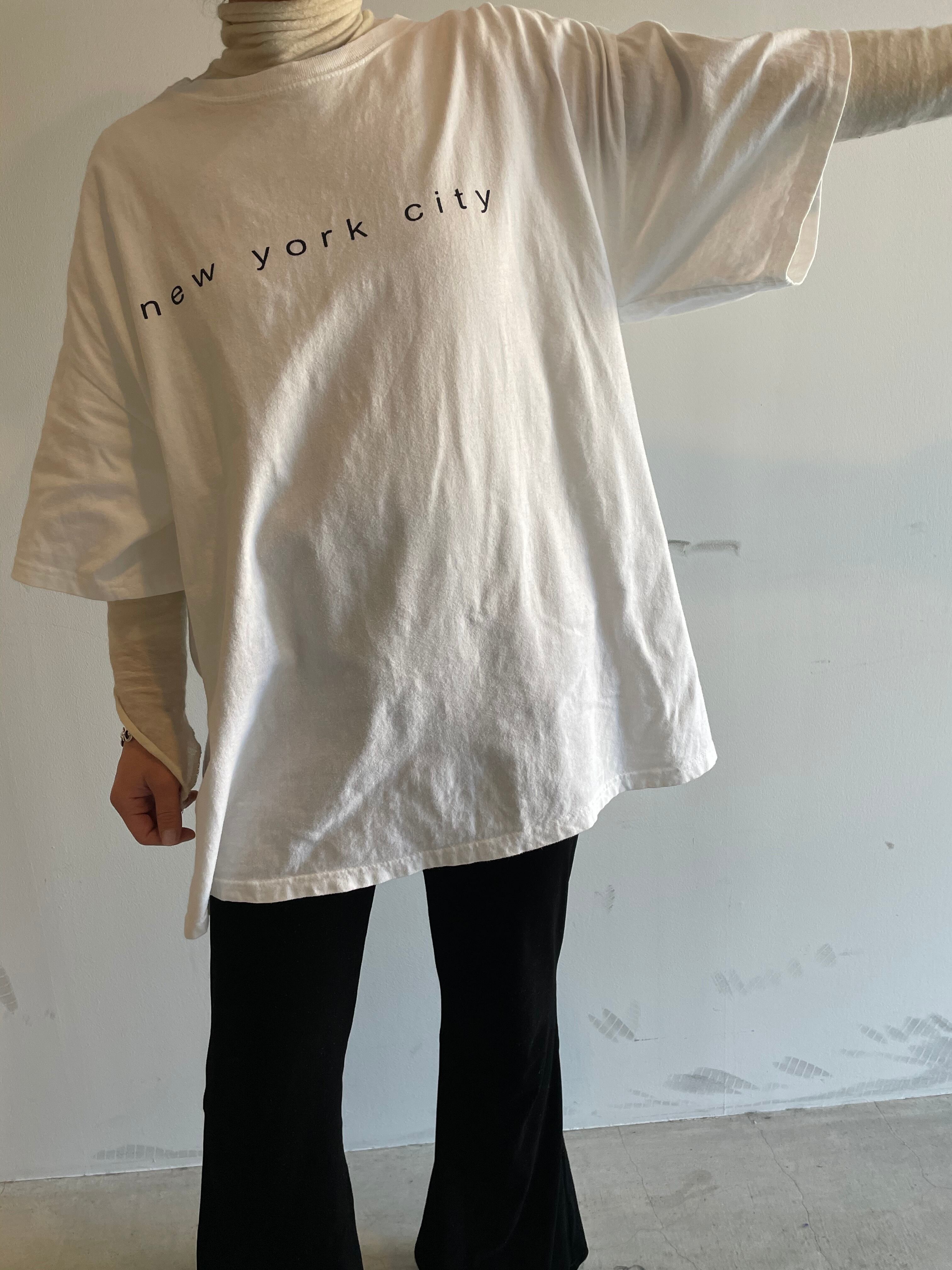 ルーズなシルエットで肉厚なTシャツにシンプルなフォントプリントで"New York City"
