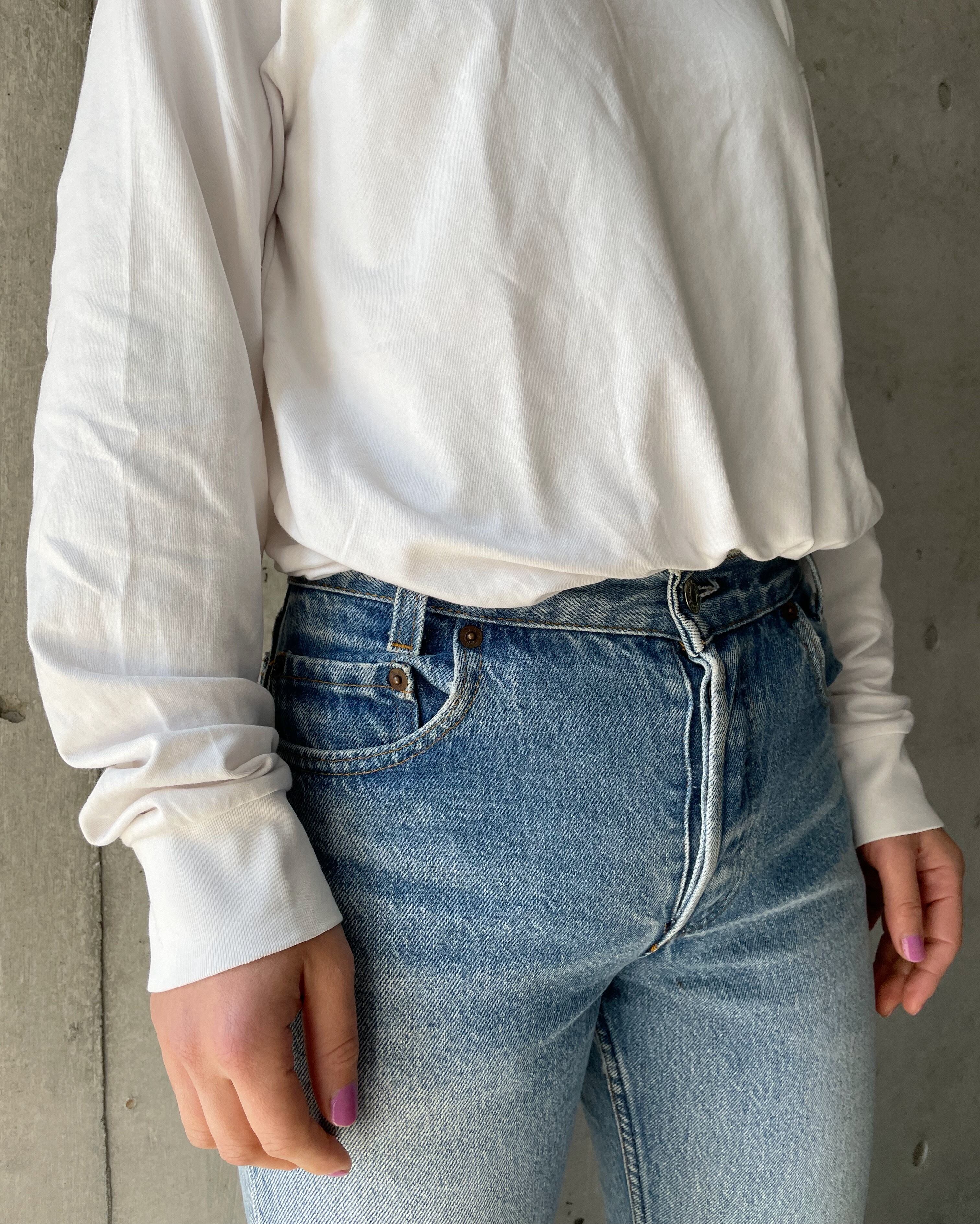 今回入荷分は、希少サイズでもあるw27で、ヒップ周りも大きすぎず、タイトなシルエットでお探しの方にオススメ。レングスがかなり長めなので大きめにロールアップして履くのも◎