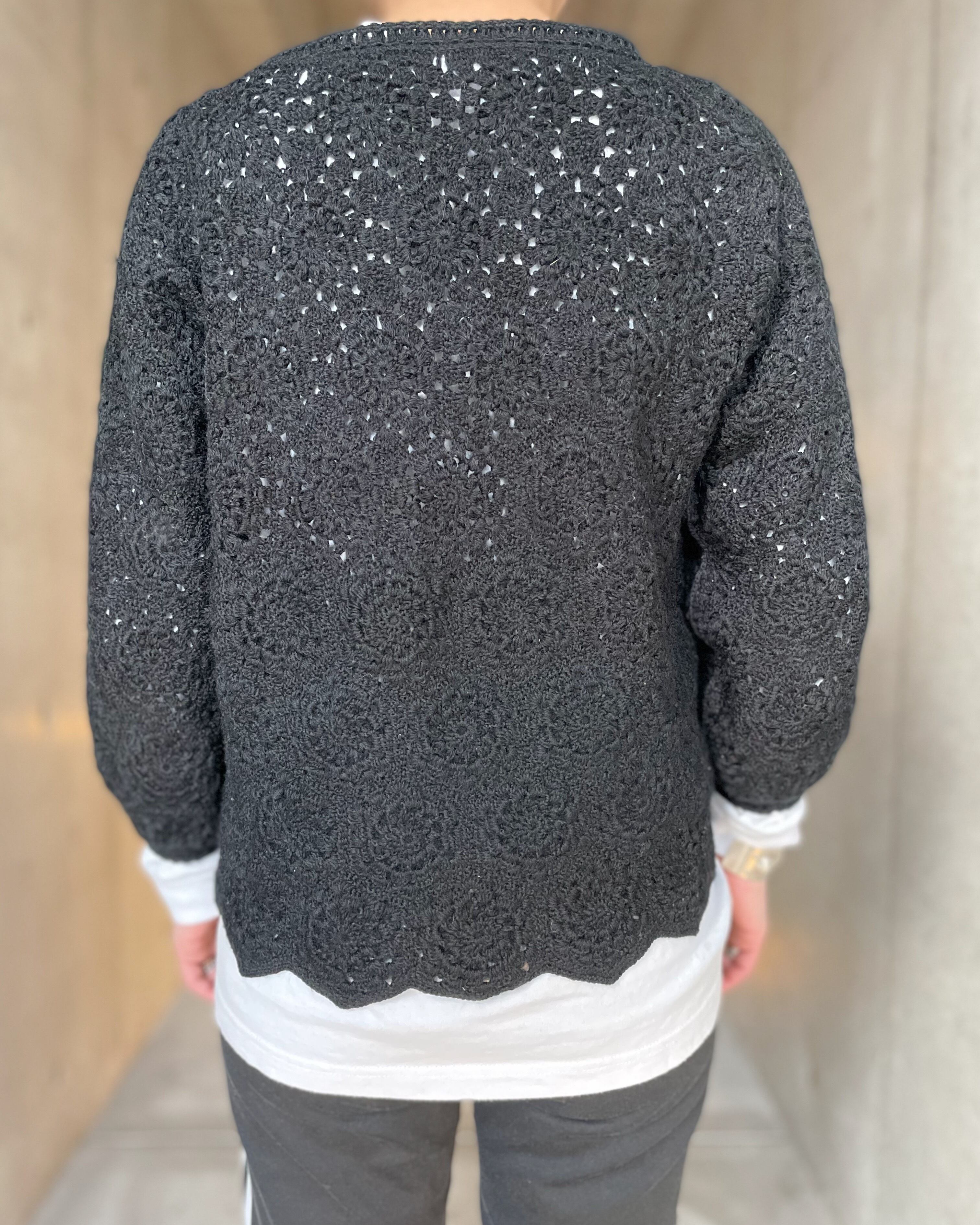 グラニーは比較的ビビッドなカラーリングの組み合わせの物などか多いですが、今回入荷分はシンプルな黒一色。袖丈、着丈共に少し短めでデザインが施されているのもポイント