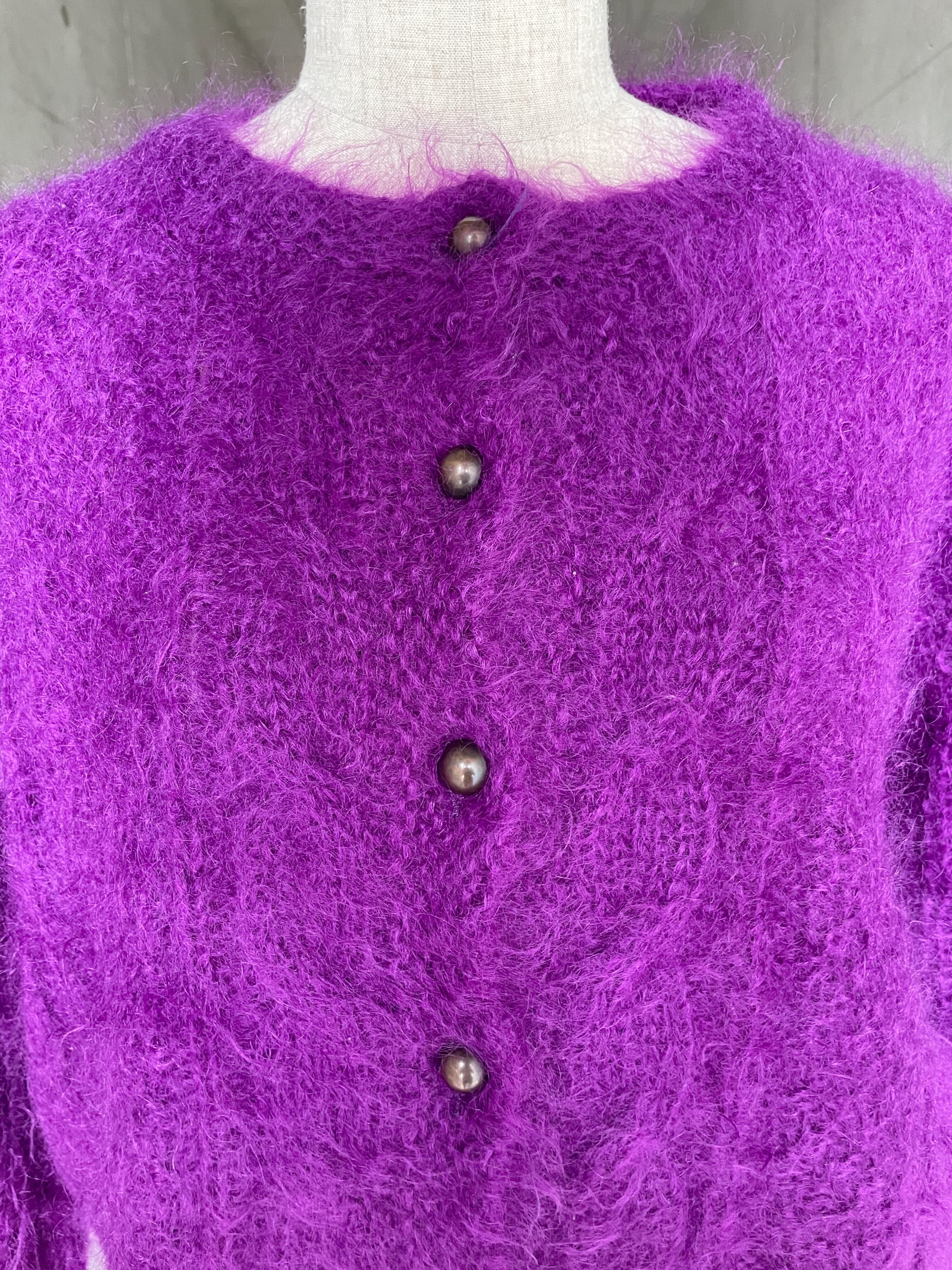 今回のモヘアニットは90年代のベネトンらしいシンプルなデザインに対してビビッドなパープル
