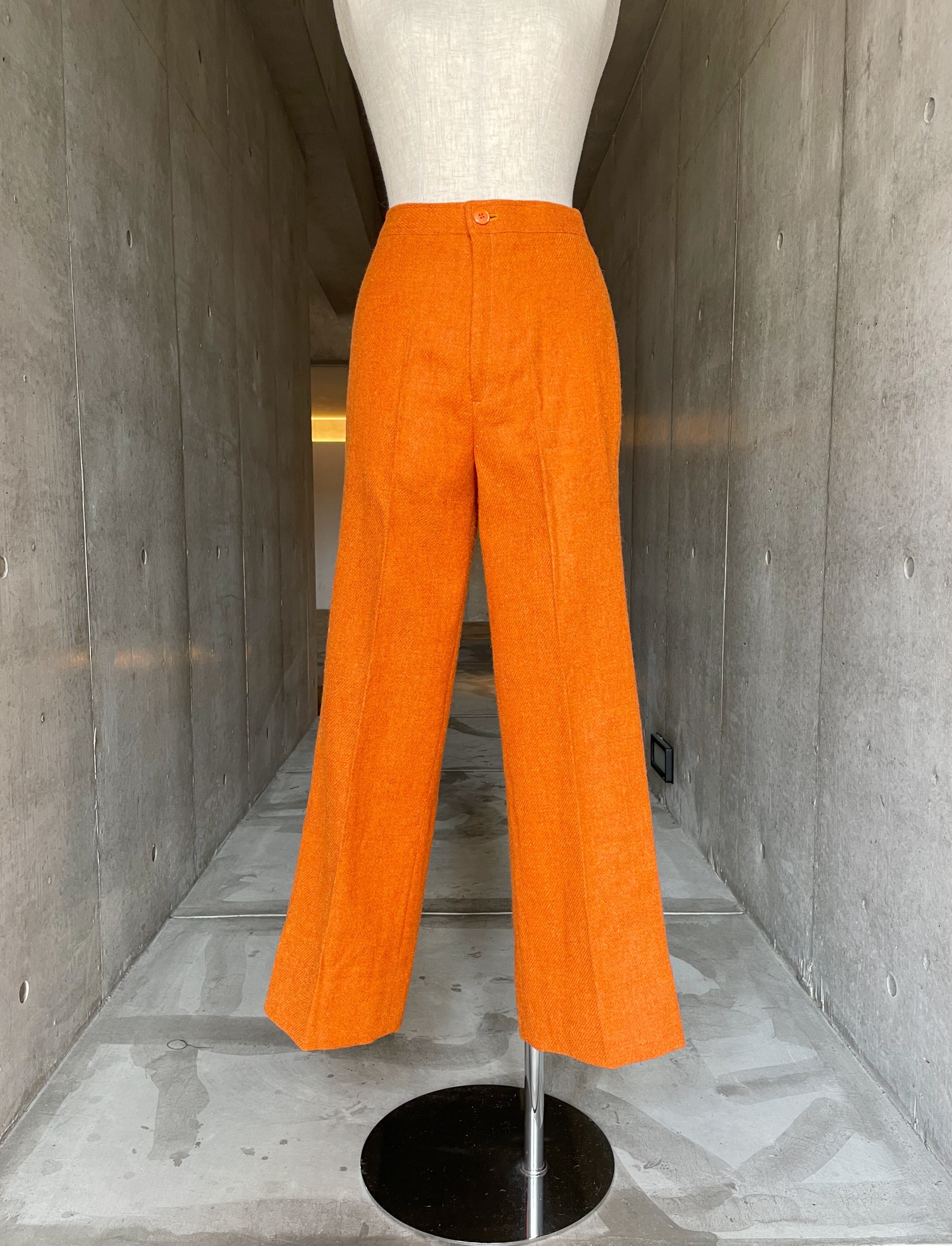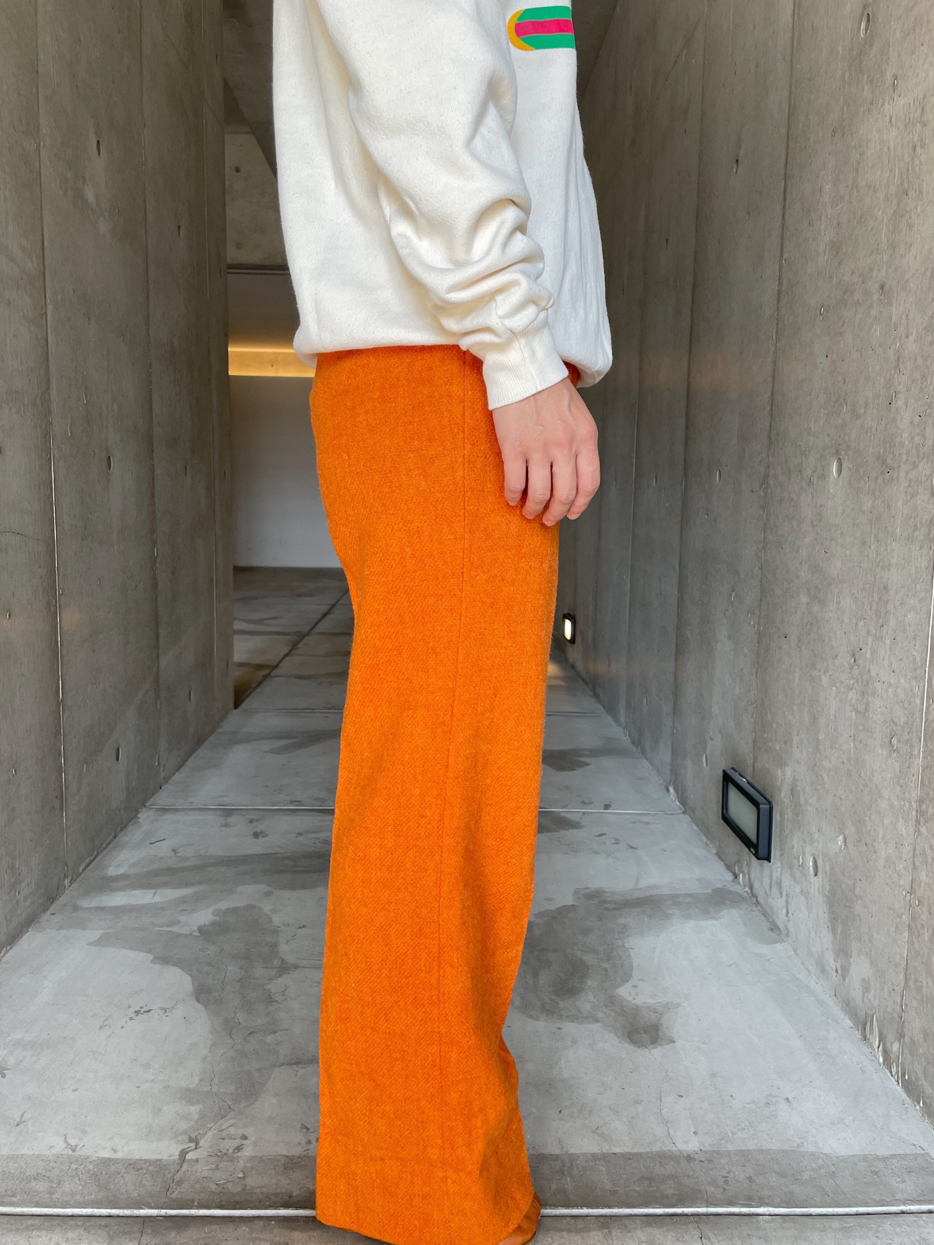 探すとない意外に見つからないウールツイードのワイドパンツ。ビビッドなビタミンカラーなのもポイント