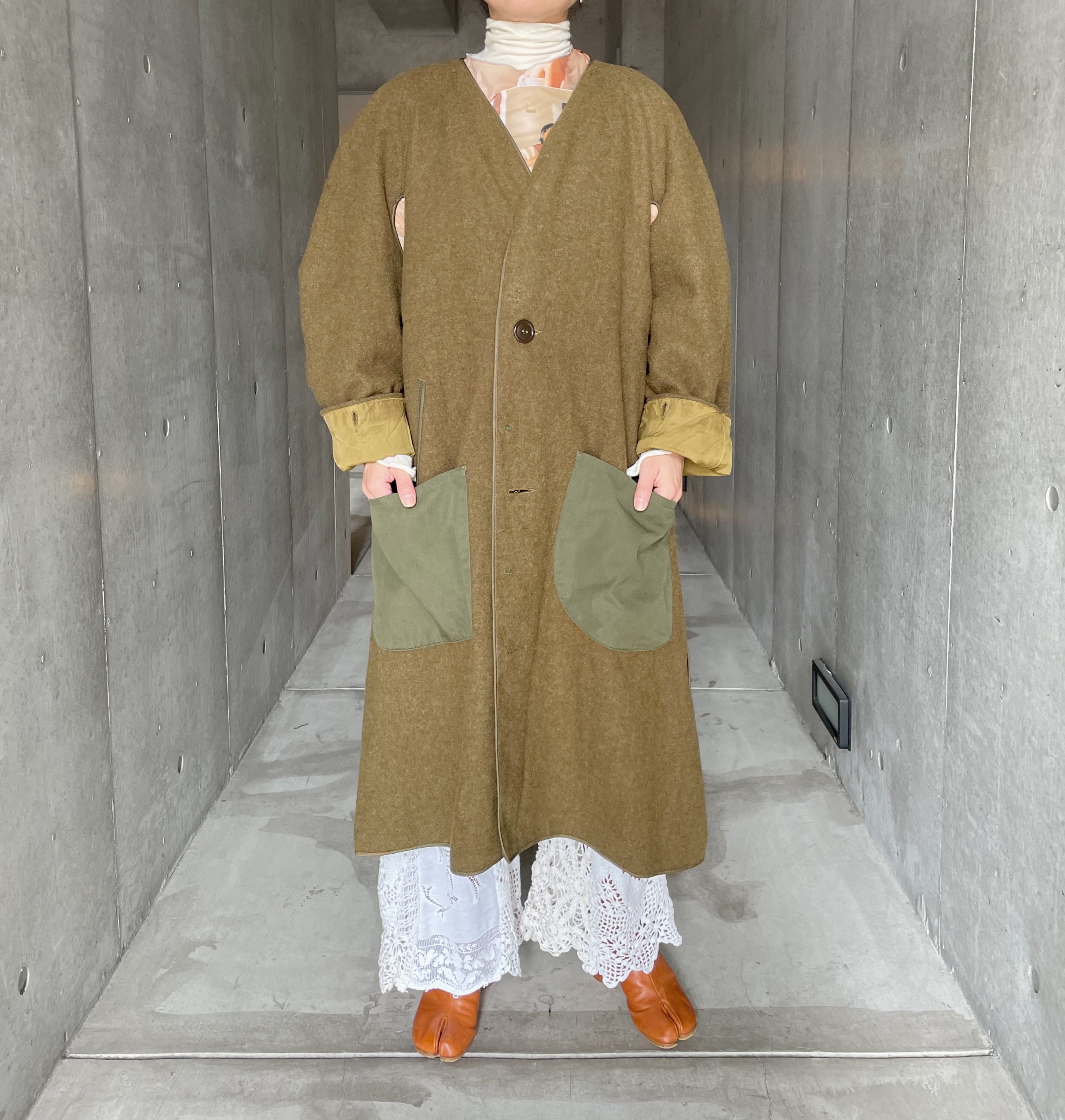 アウターとしての着用だけでなく、寒い季節は上からブルゾンやダウンジャケットをレイヤードして暖かさに加え完成度の高いコーディネートに仕上がります