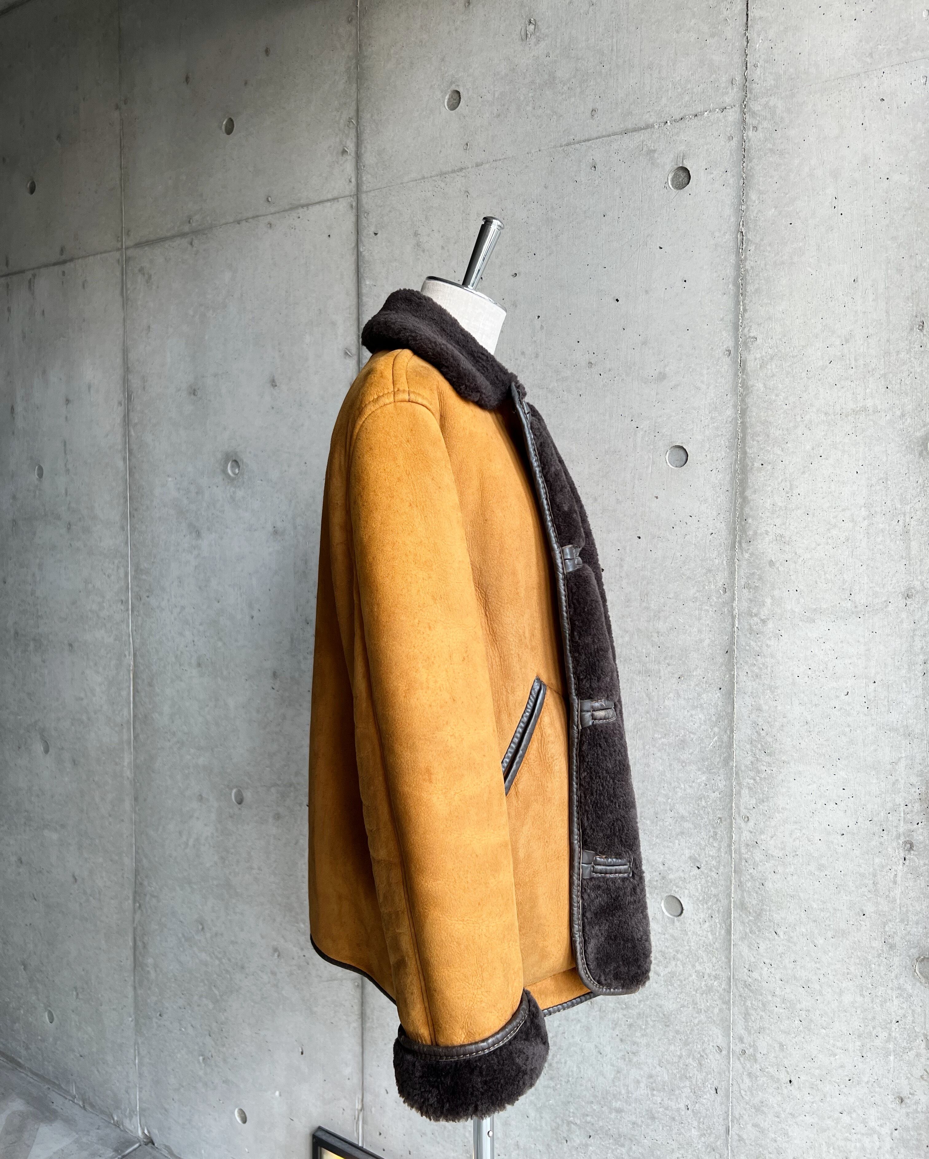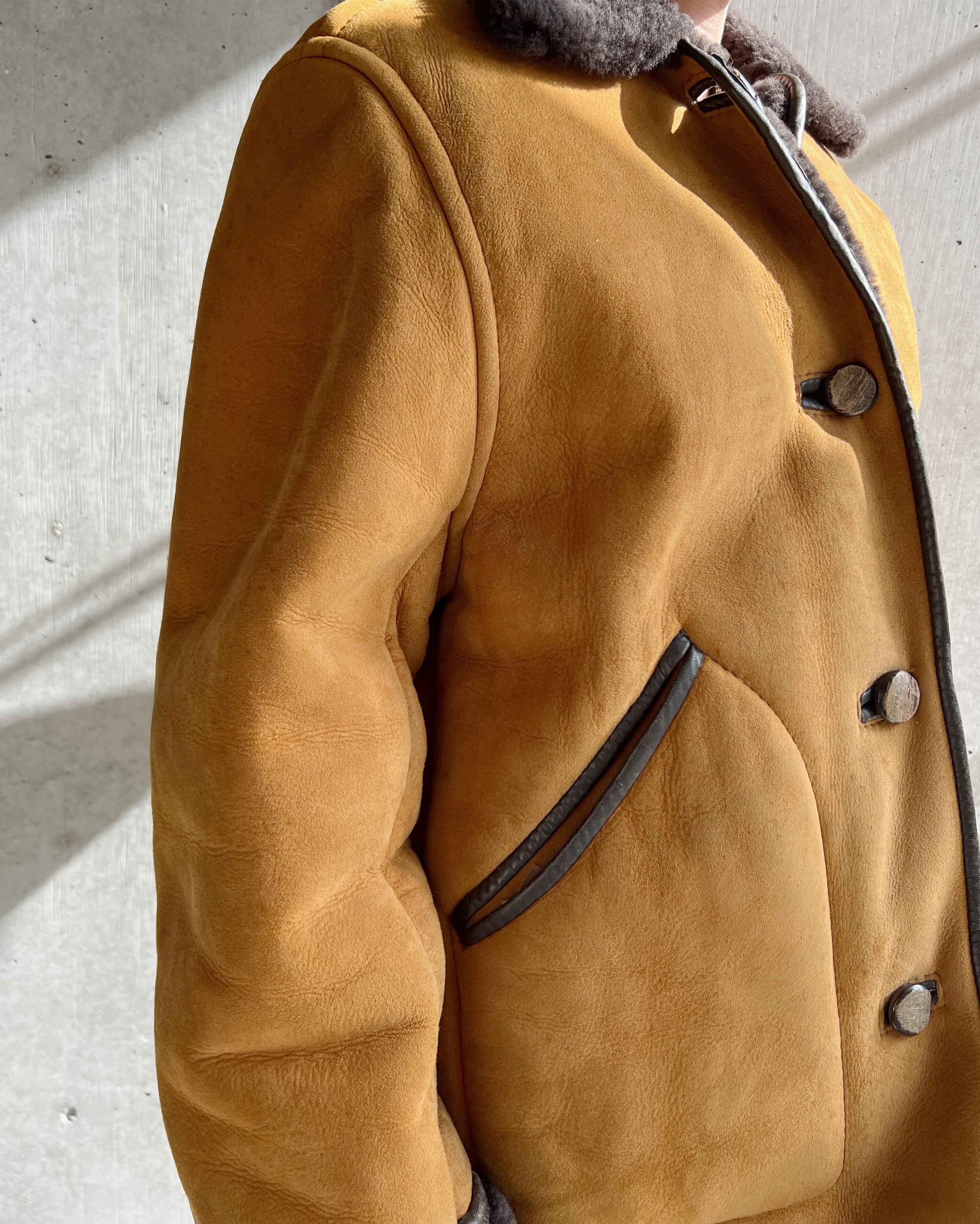 少し深みを含んだマスタードカラーとブラウンのボアの組み合わせが絶妙なシープスキンジャケット
