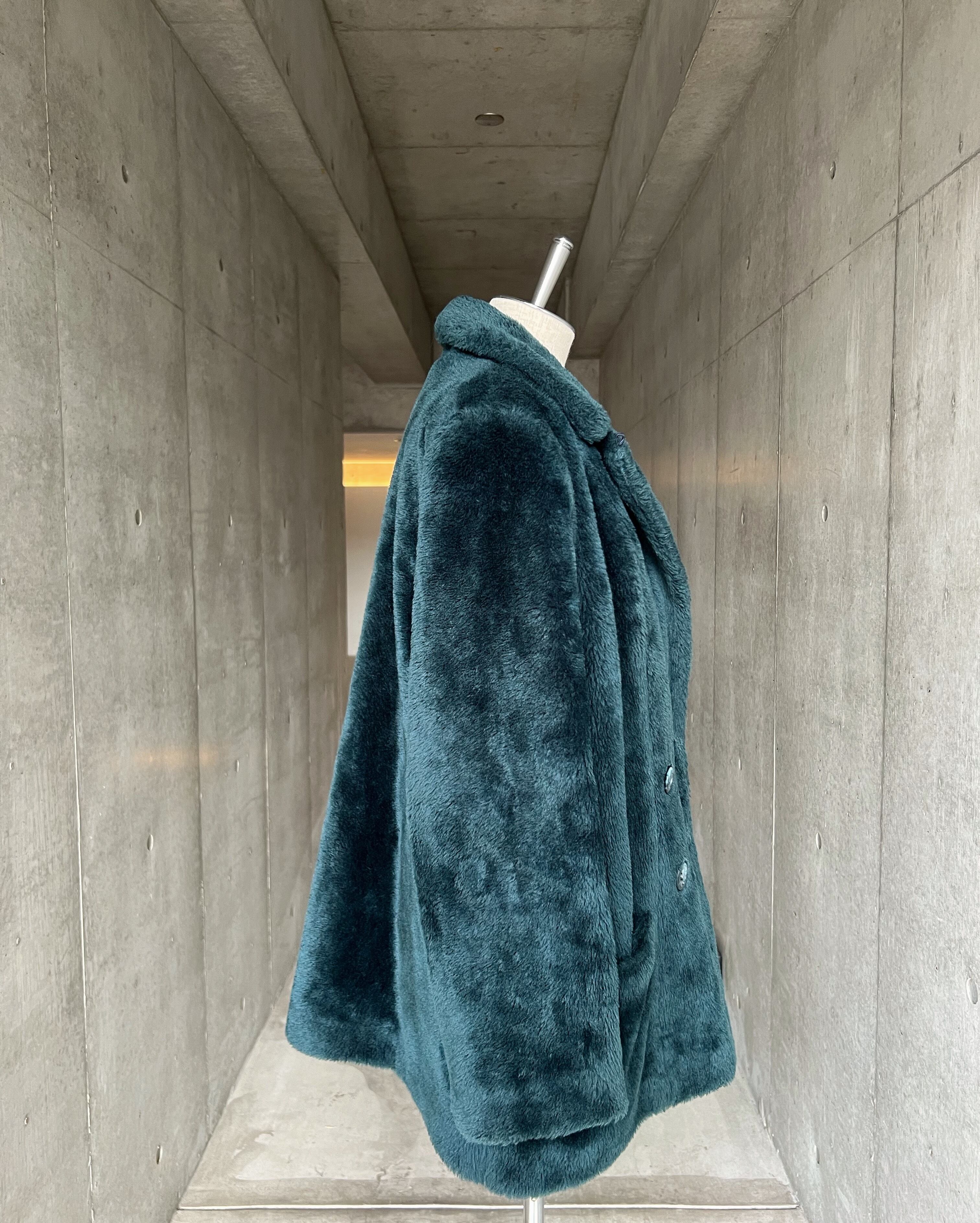 青味掛かった絶妙な色はダークトーンになりがちな冬のコーディネートの良いスパイスに。そしてダブルブレスト仕様なのも今の気分にマッチします