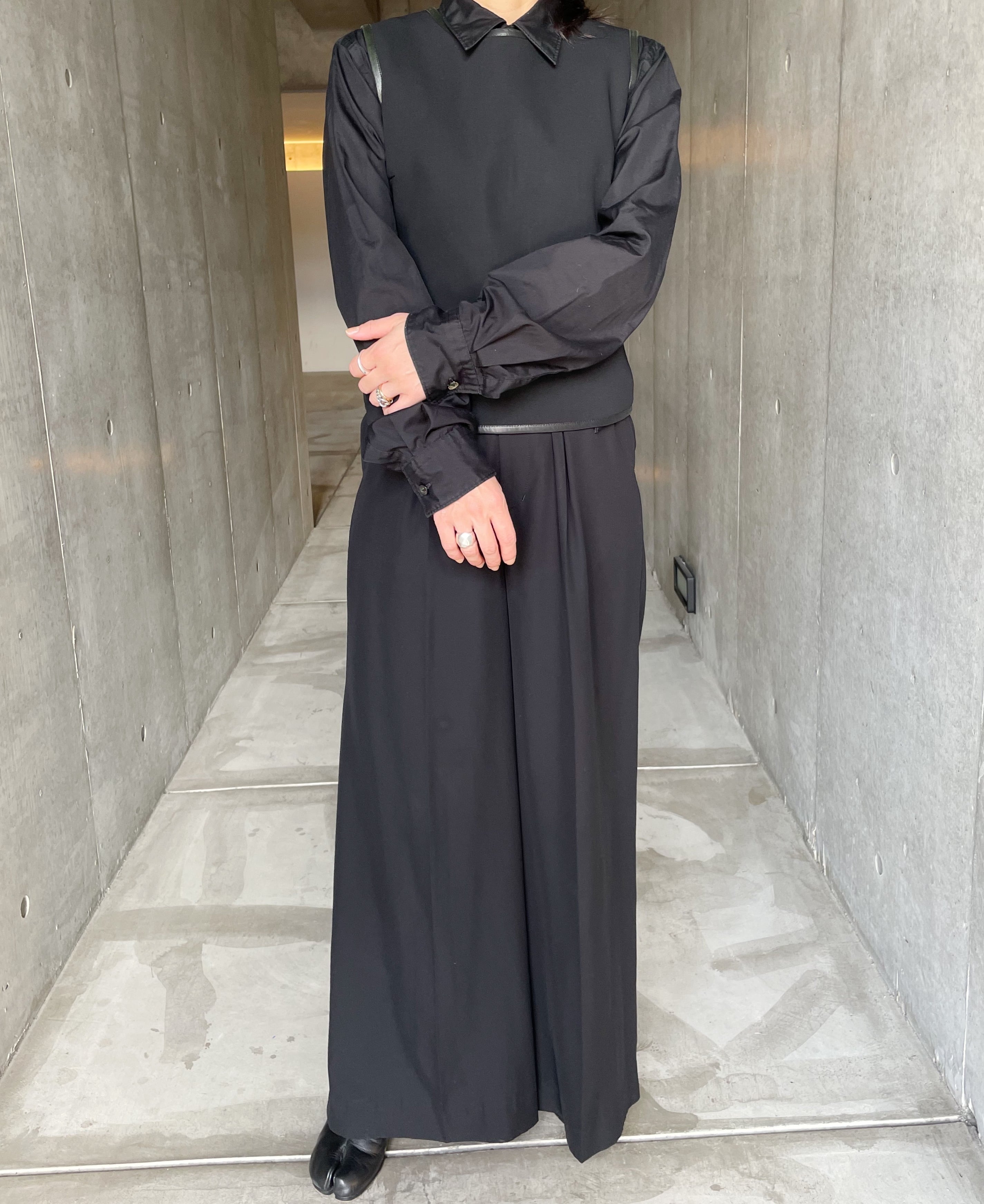 裾にさり気なく施されたレザーパイピングがデザインをより一層エレガントに仕上げています。(よく見るとGUCCIのブランドカラーのオリーブグリーン‼︎)
