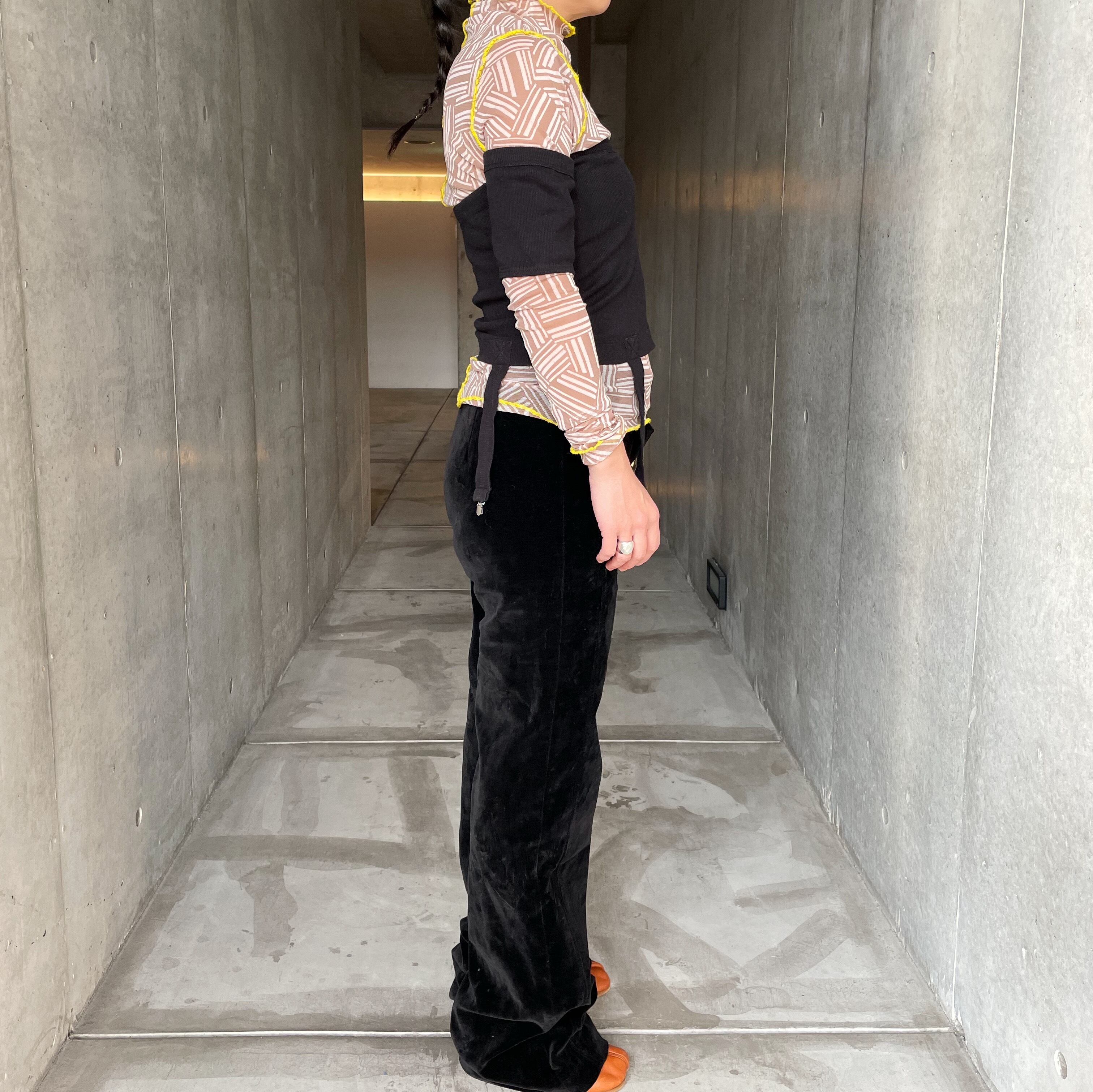 セカンドスキンなどタイトなトップスに足元はヒールブーツやチャンキーブーツで合わせてモードに着たり、ワンピースとのレイヤードで華やかなコーディネートに合わせたり…コーディネートの妄想が拡がる一枚です