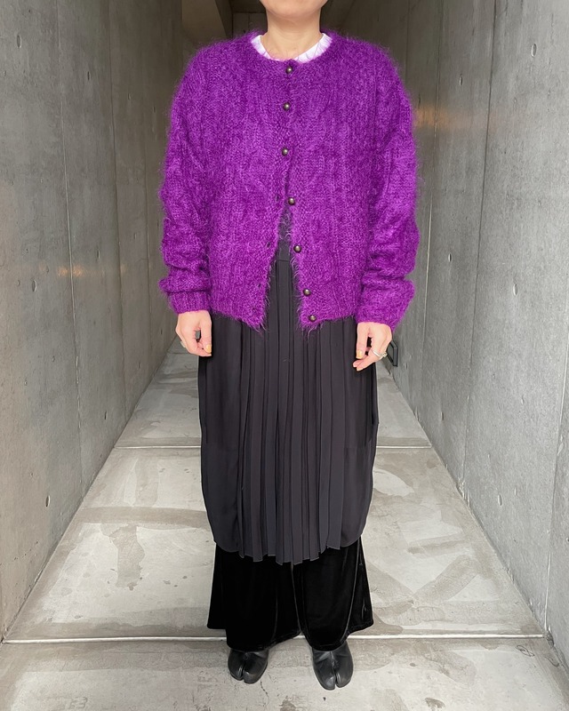 コンパクトではありますが、脇周りは広く作られているので、フィッシャーマンニットなど厚手のニットにレイヤードに同系色のパンツや柄物スカートで大人なコーディネートがオススメです。