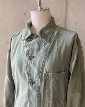 81年納品のus armyカバーオール。女性も着やすいSサイズで全体的にフェードしたセージグリーンが雰囲気抜群です。