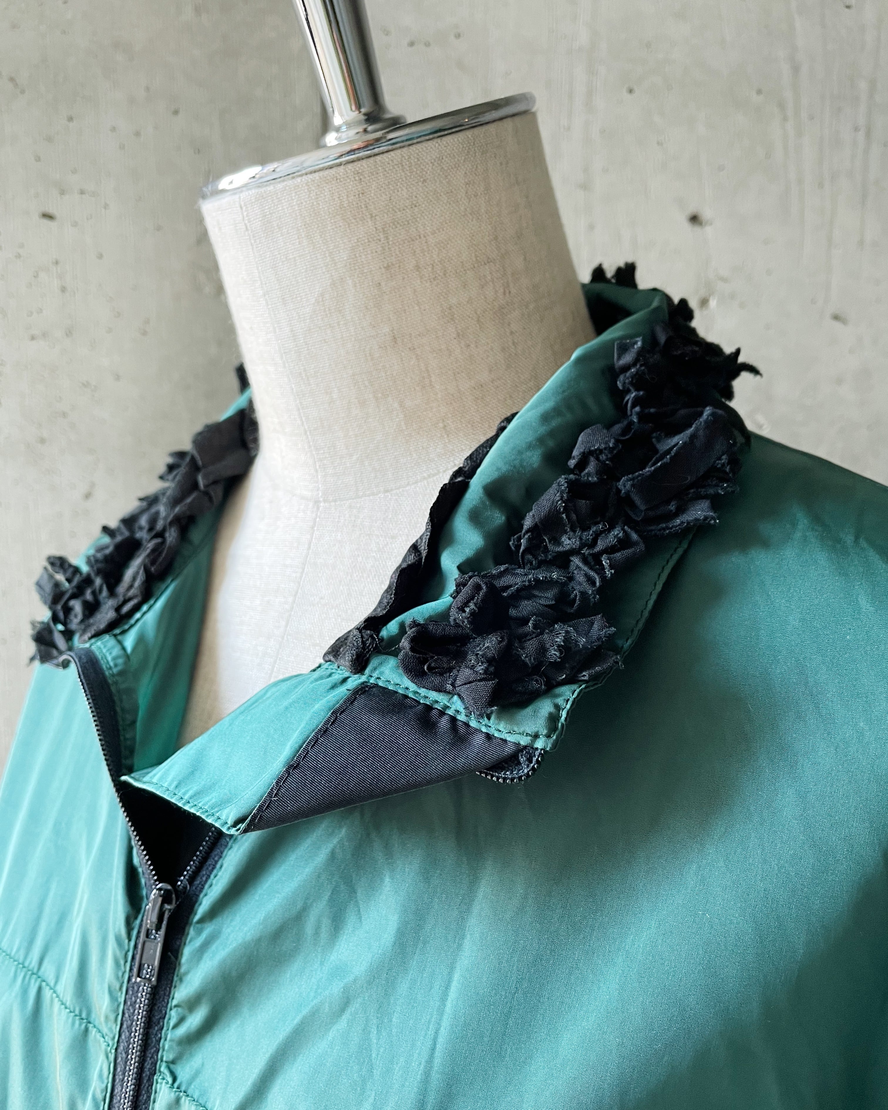 スポーティアイテムに襟と袖に装飾を施し、可愛らしさを演出している辺りがmiu miuらしいブルゾン