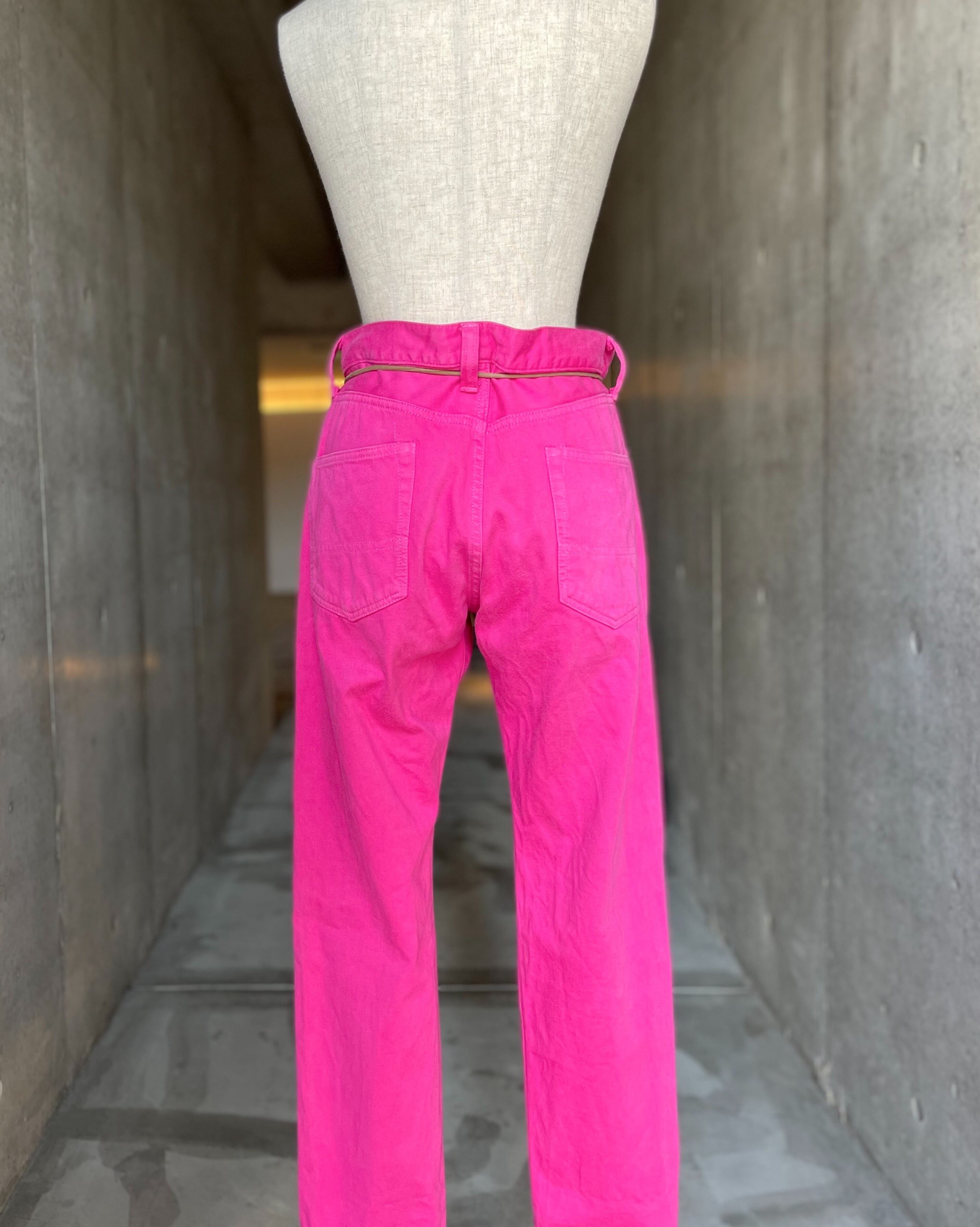 Levi's 501を連想させる適度にテーパードが掛かったシルエットはどんなスタイリングにも合わせやすく、薄着になりがちな暑い季節には重宝する一本。ビビッドなトップスを合わせてポップに着たり、黒などダークトーンでモード色を強めたり…ワードローブに加わればコーディネートの幅が拡がること間違いなしのアイテムです