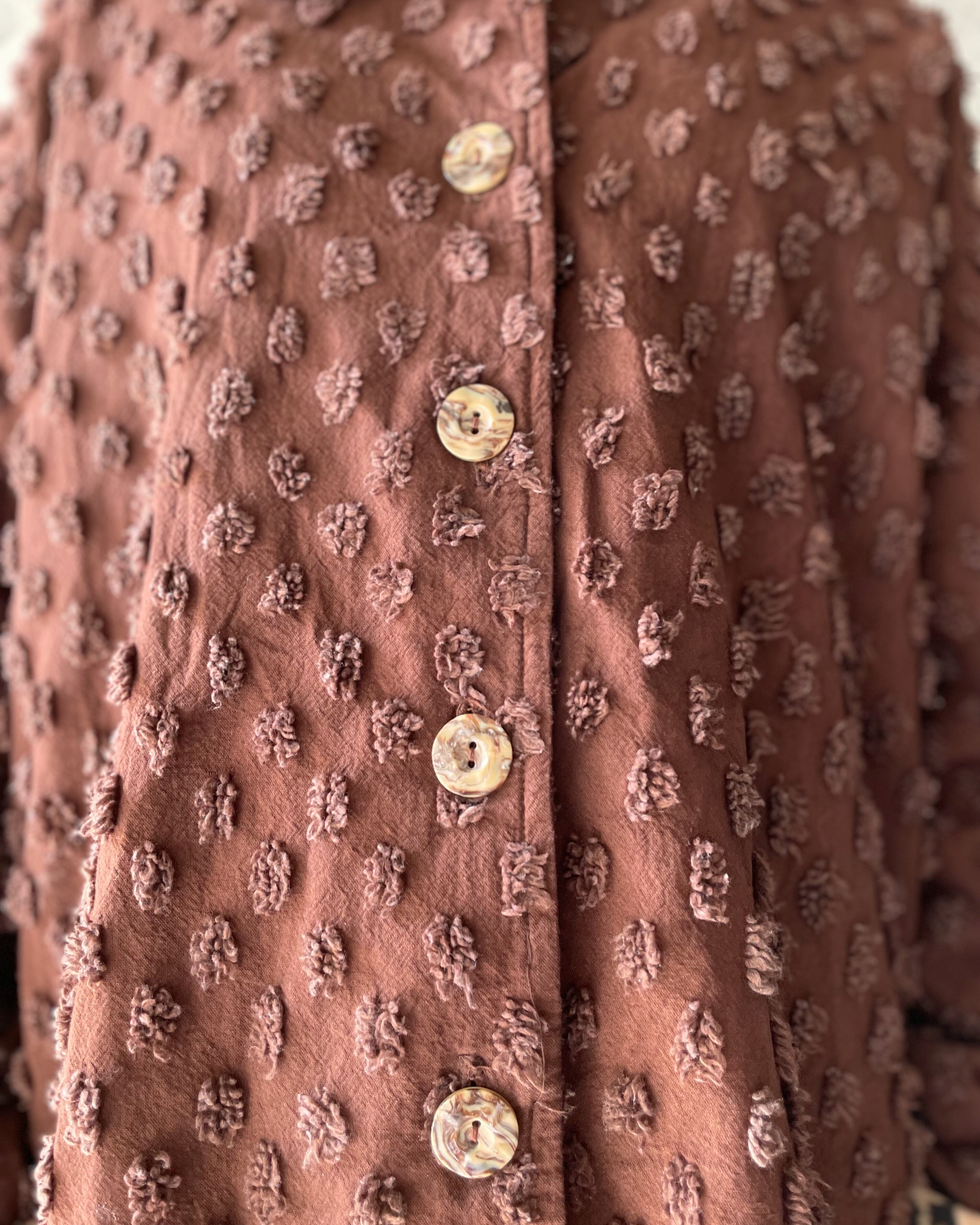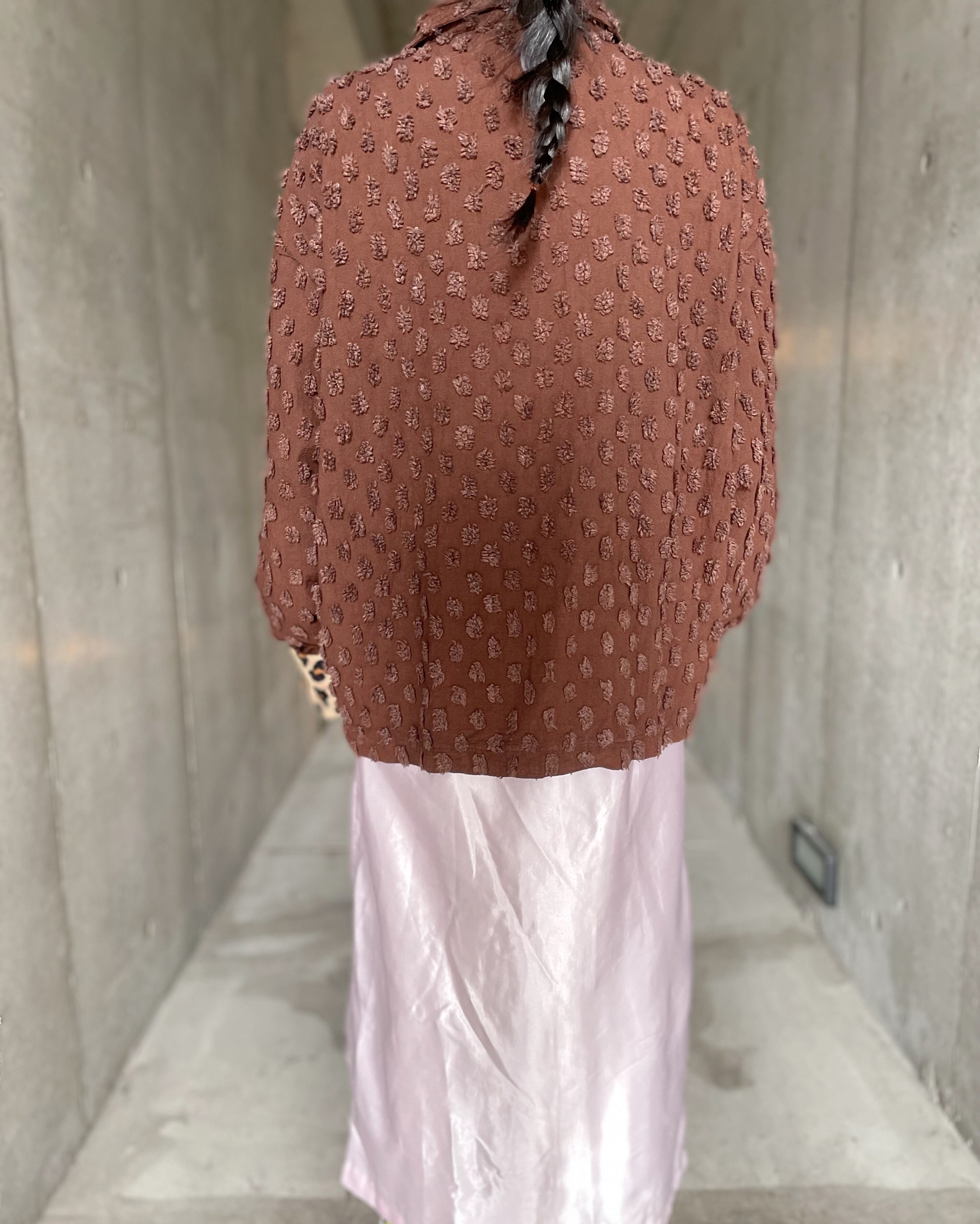 ボディ全体の立体刺繍、袖のレオパード切り替えしデザインが愛らしいシャツジャケット
