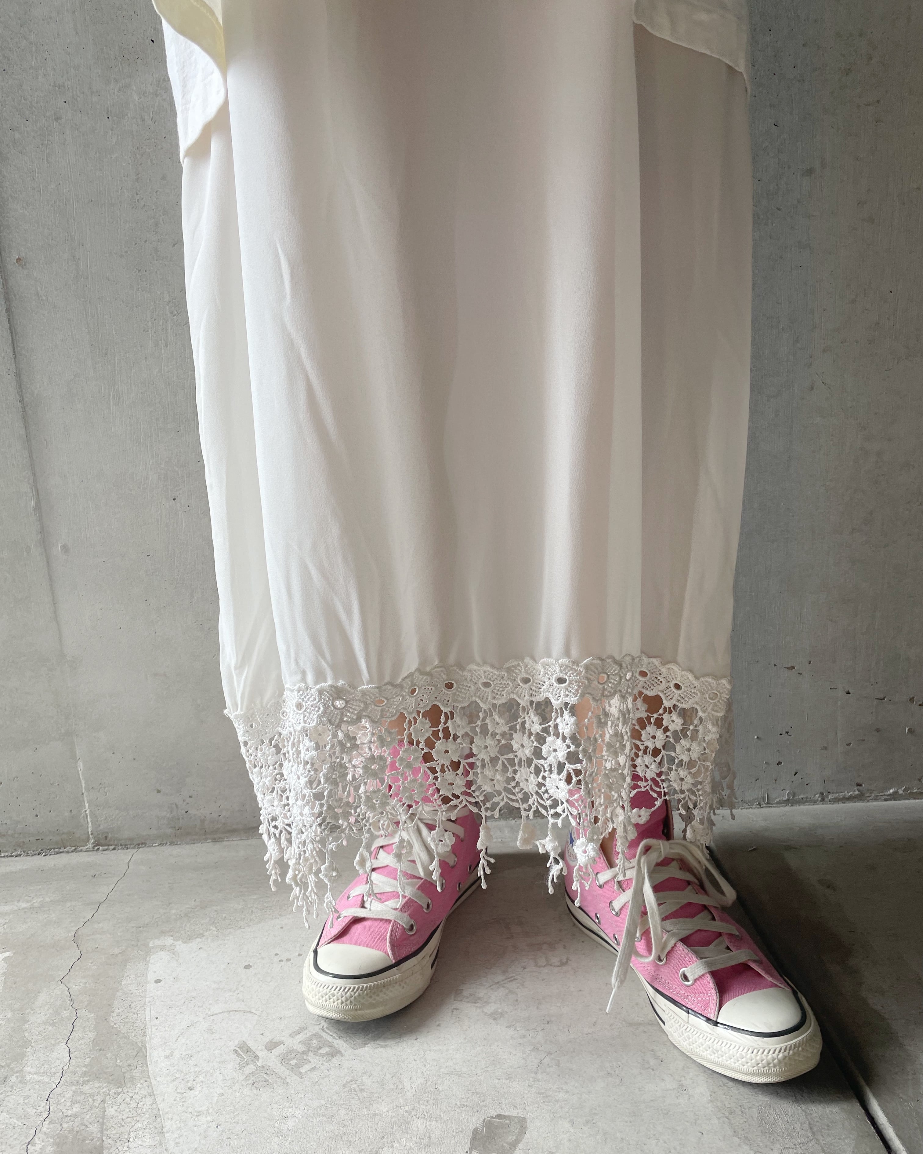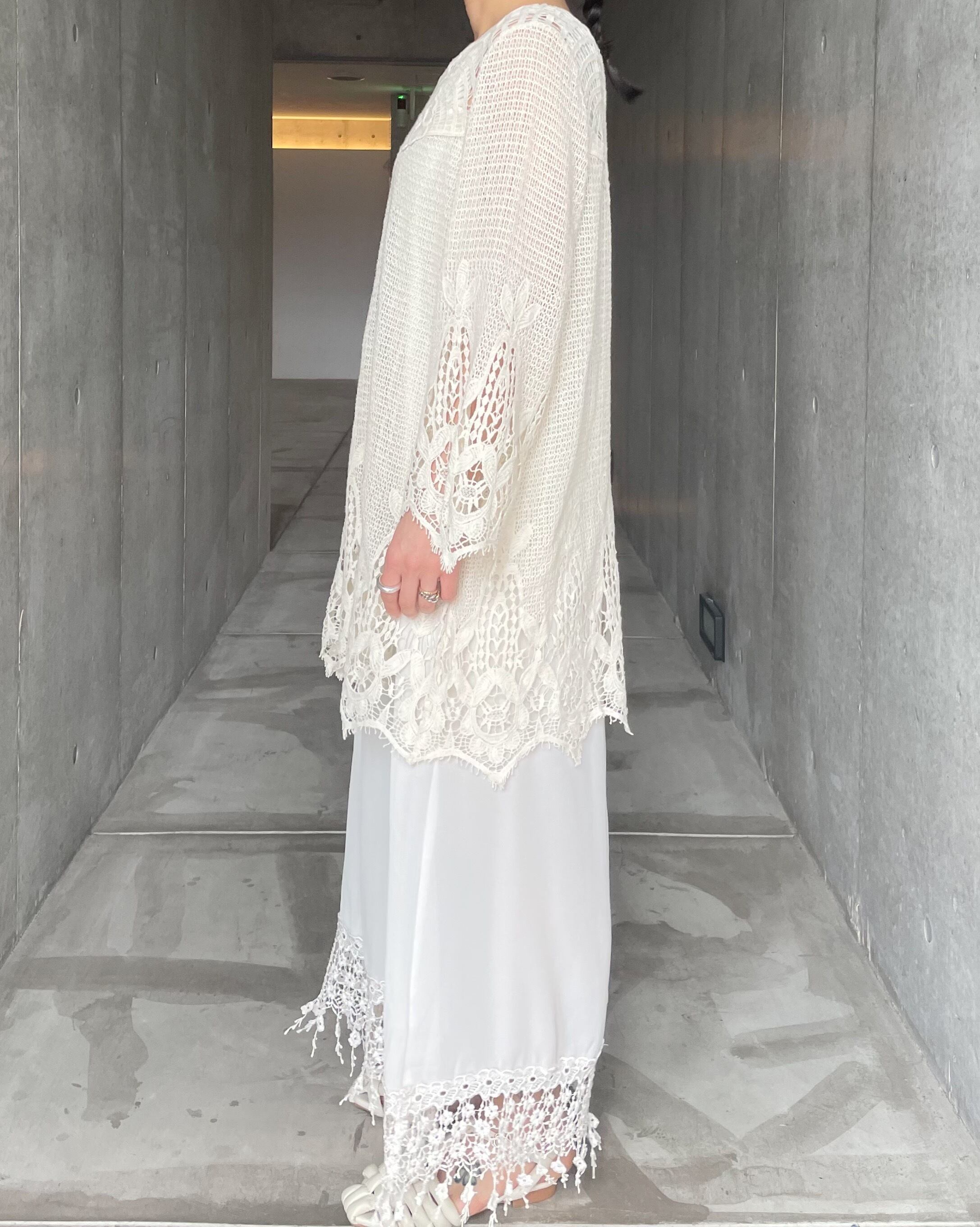 シンプルデザインながら首元と裾に施されたレースデザインはレイヤードコーデに持ってこいなディテール‼︎