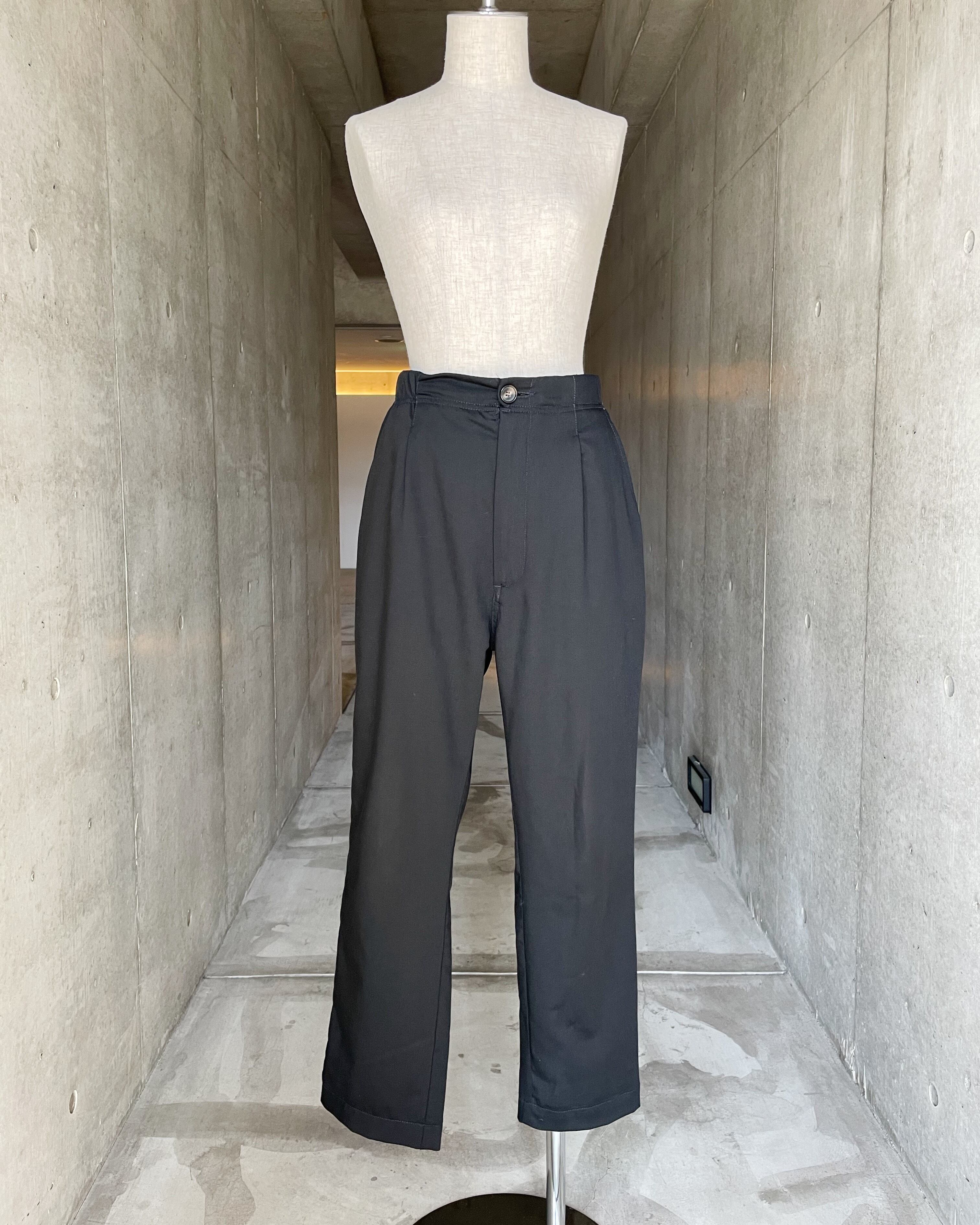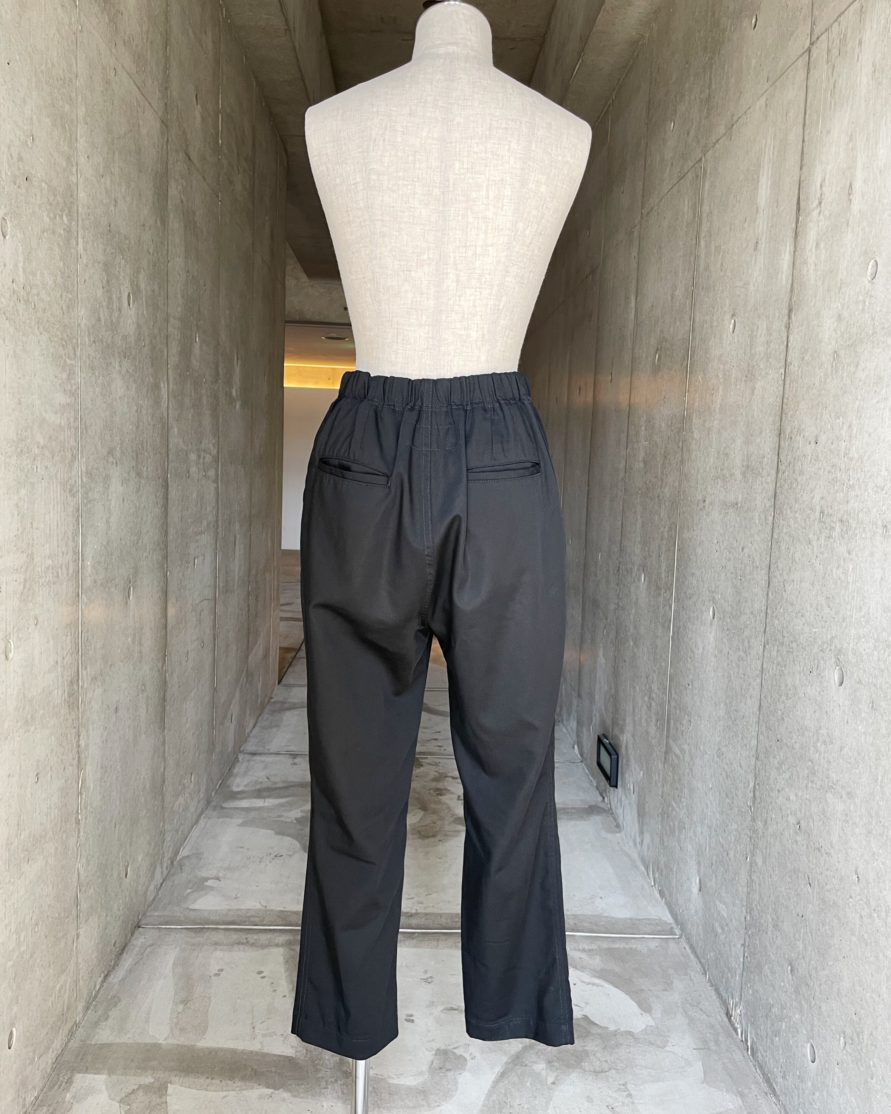2タック仕上げでテーパードがしっかりめに掛かったイージーパンツ。この手のパンツの特徴は一見、イージーパンツには見えないのが面白い所です。
