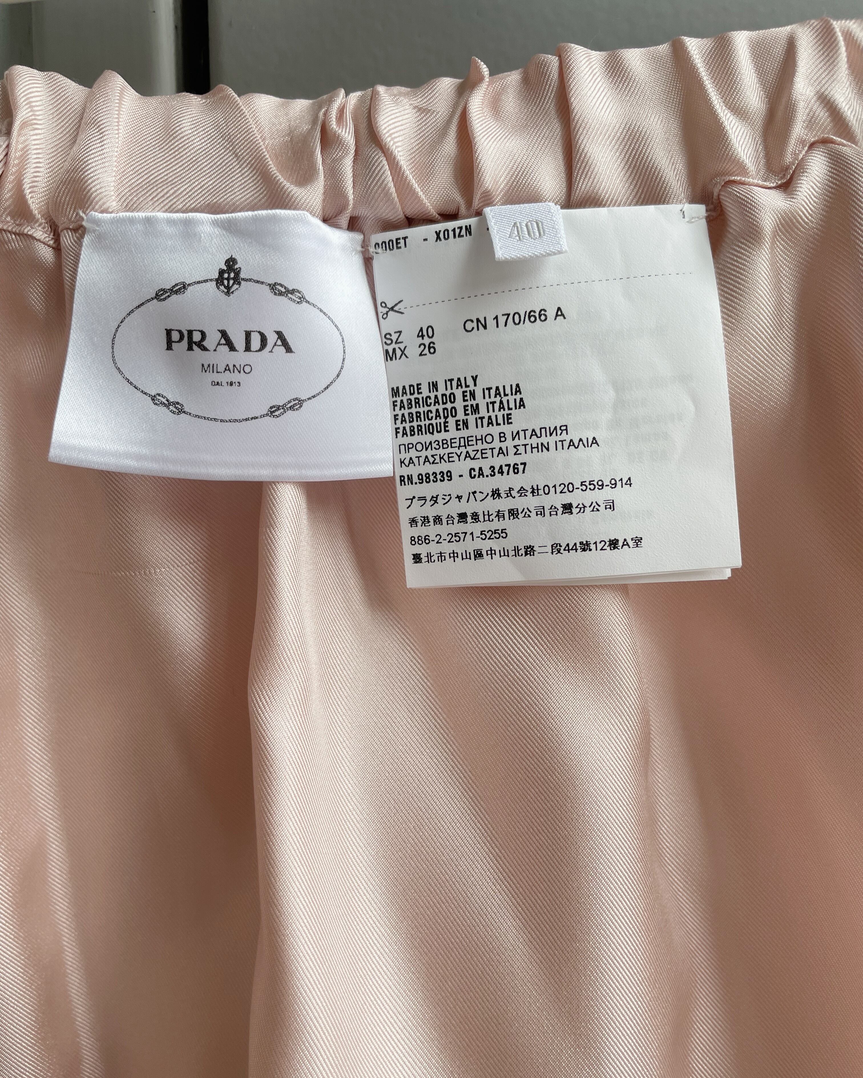 裾に施されたパイピングなどさり気ないディテールからプラダらしさを感じさせます…