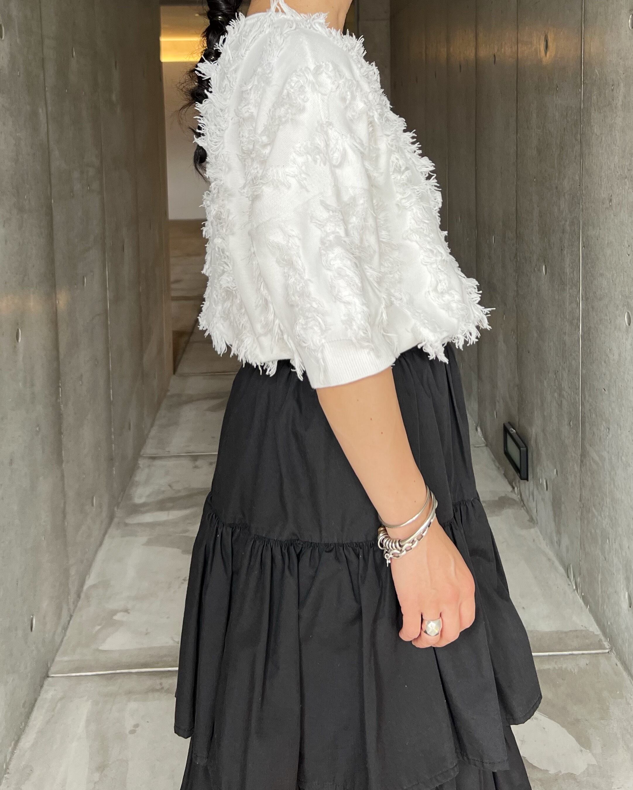 均等な感覚でフリンジのように施された加工も良いアクセントに