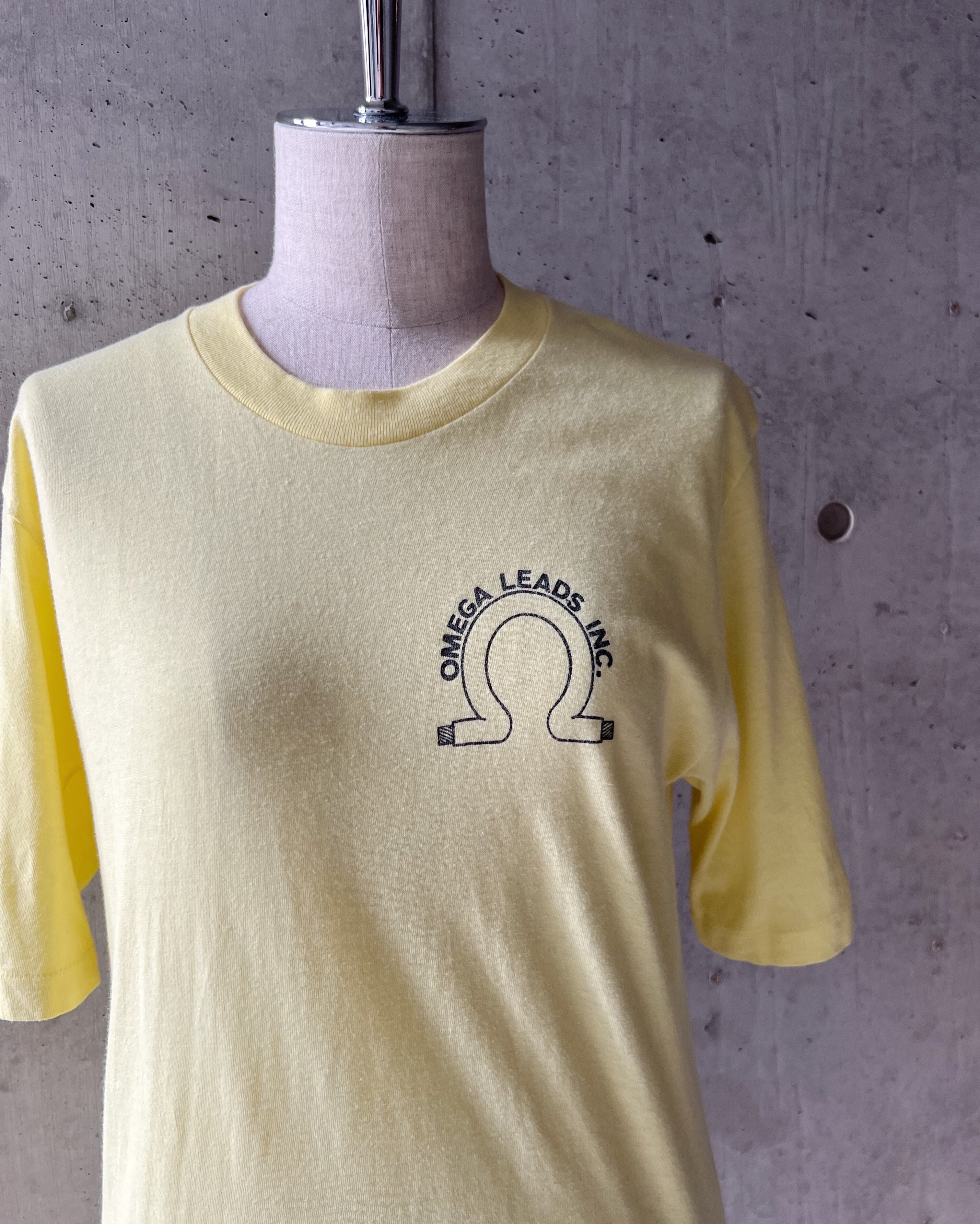 淡いイエローボディにグラデーションカラーのバックプリントが映える企業プリントTシャツ