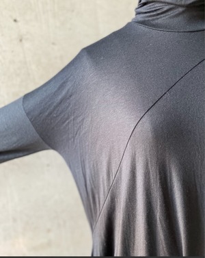 上半身下部からは素材の重みを活かしたドレープが出るようにしっかりと生地を使ったテクニックがMM⑥ならでは。