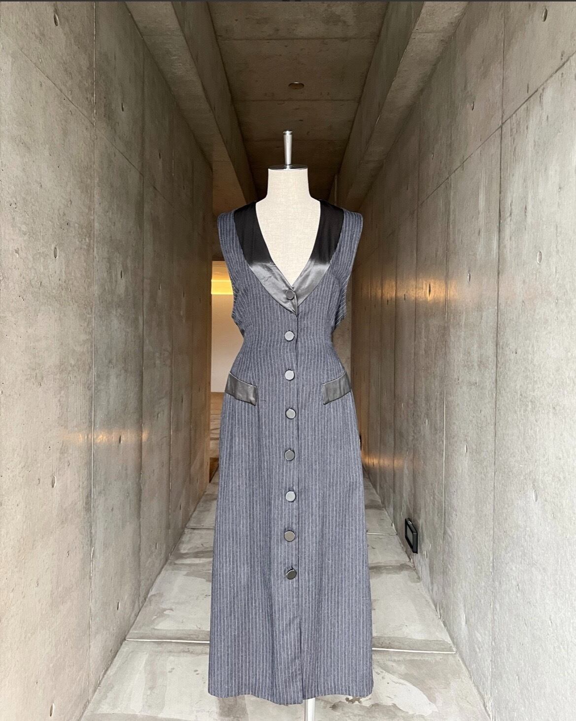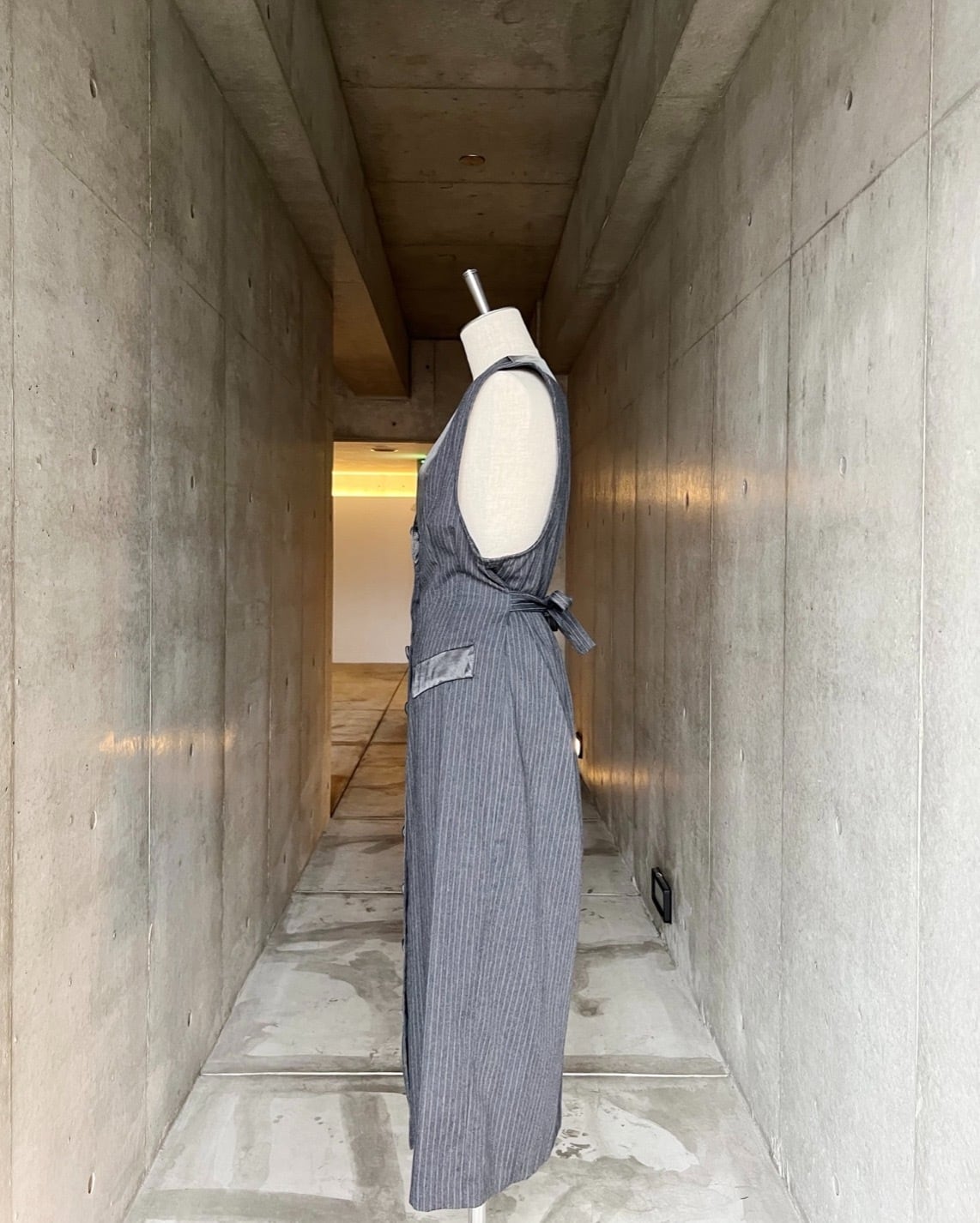 ブルゾンやジャケットなど短丈のアウターを上から羽織って長短の付いたレイヤードコーデで"ワンピース"として着るよりも"ベスト"として着たくなるどこか不思議な一枚です。