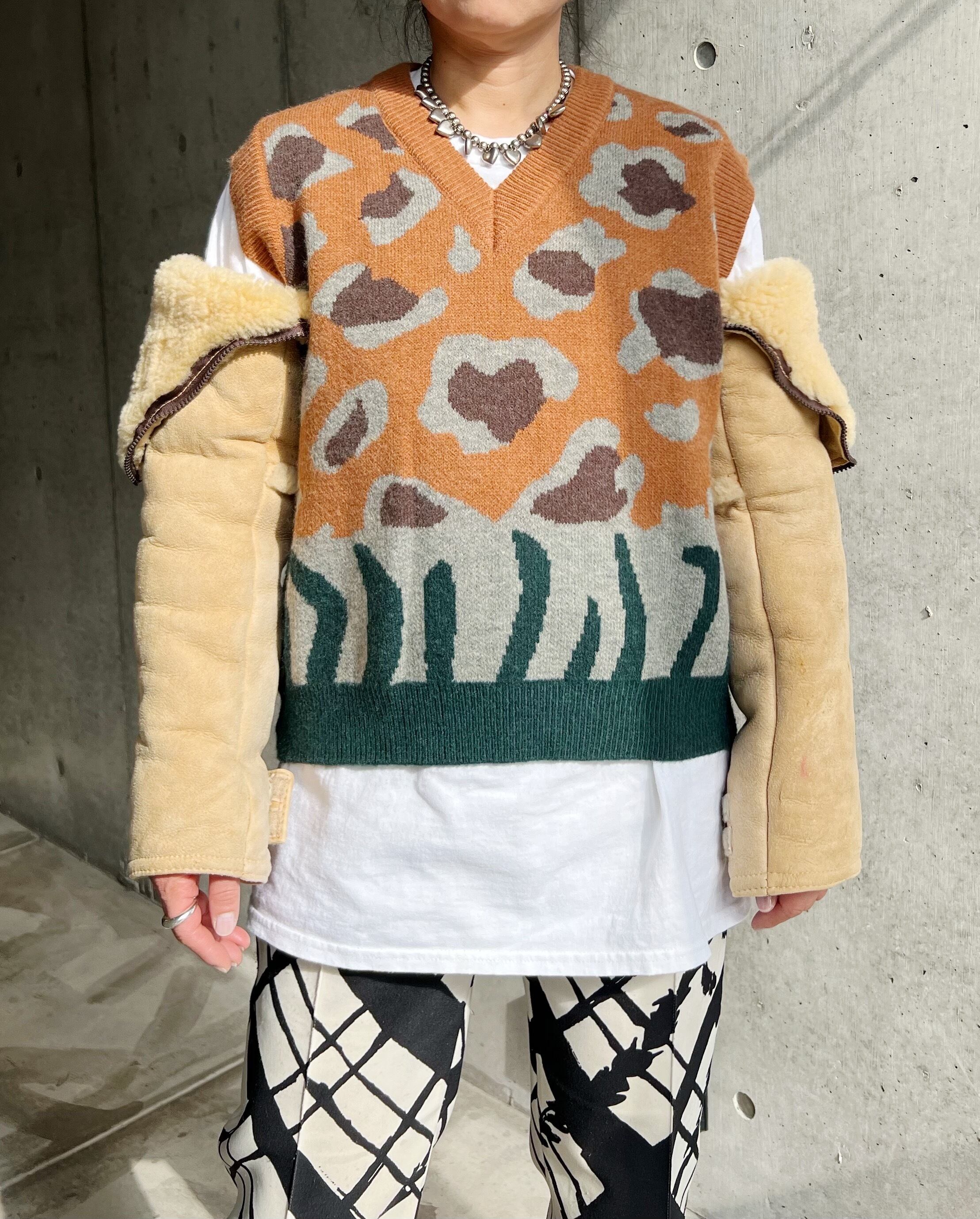 ミリタリーであるフライトジャケットB-3をベースにディテールに変化を付けたユニークなムートンジャケット。特筆すべきポイントは袖がジップで取り外しが可能なこと‼︎