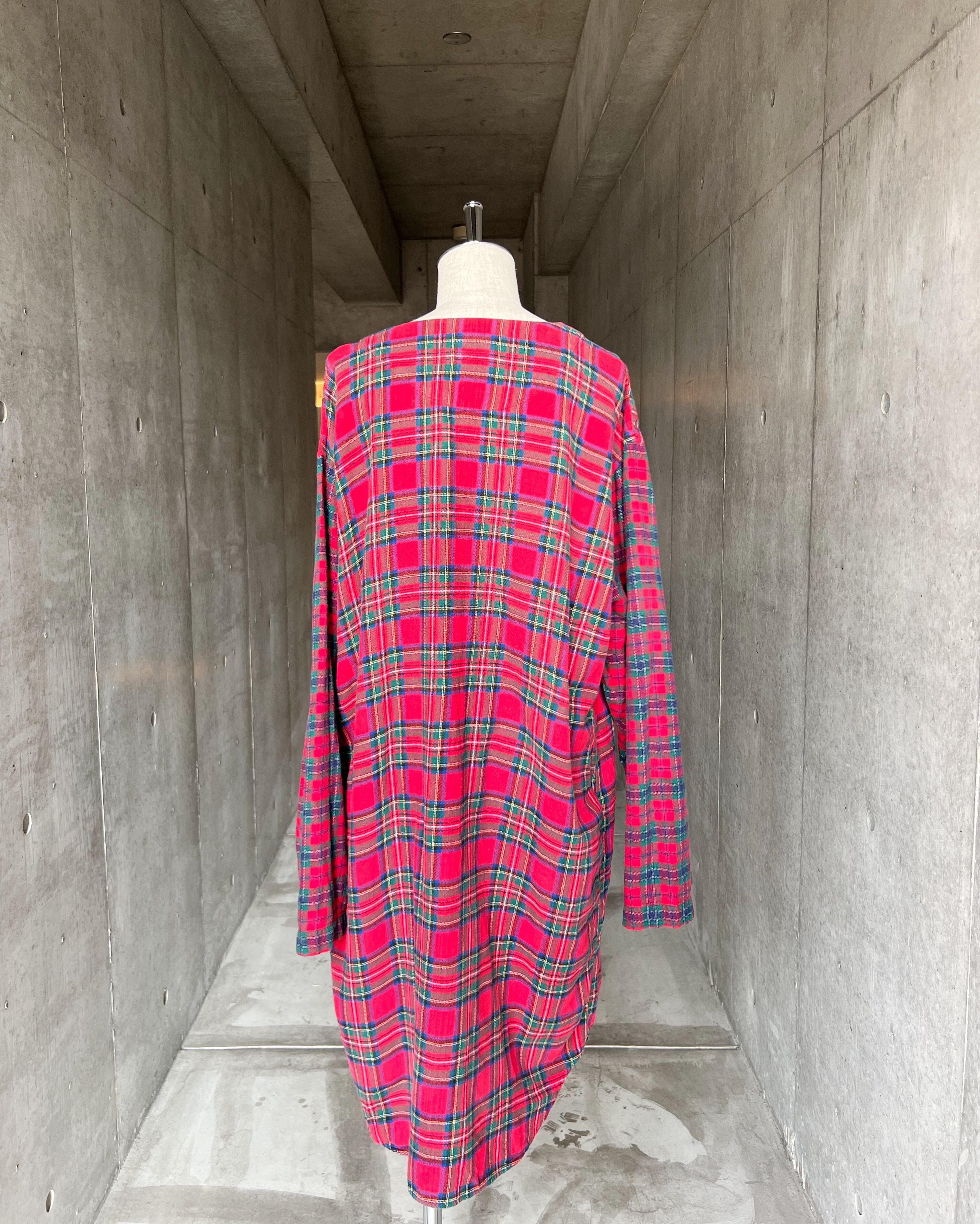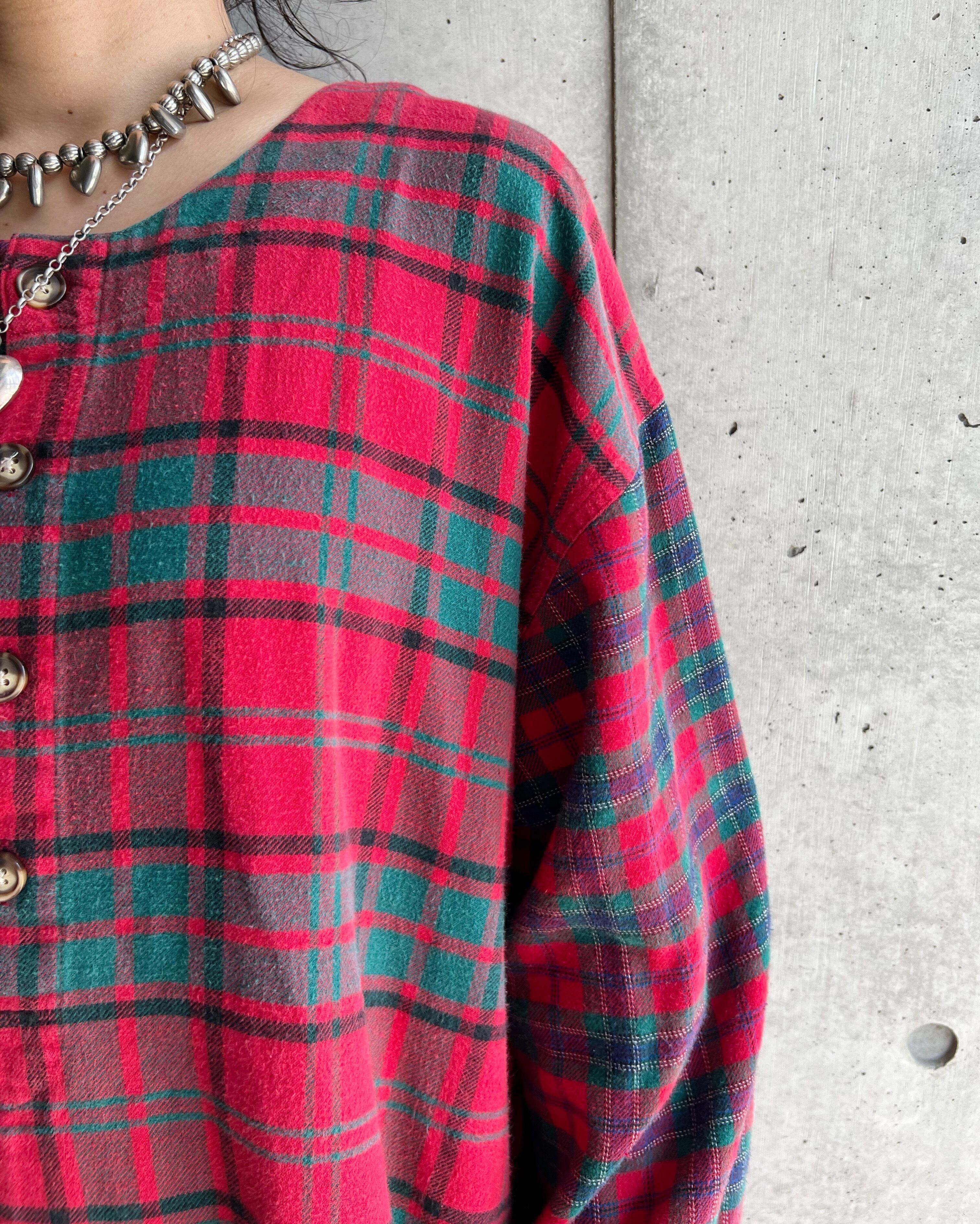 OLD GAPの呼称で人気を博す90年代GAPのグランパシャツ。赤を基調としたチェック柄で、よくよく見ると左右の身頃が切り替えられたGAPらしいユニークな作りとなっています。