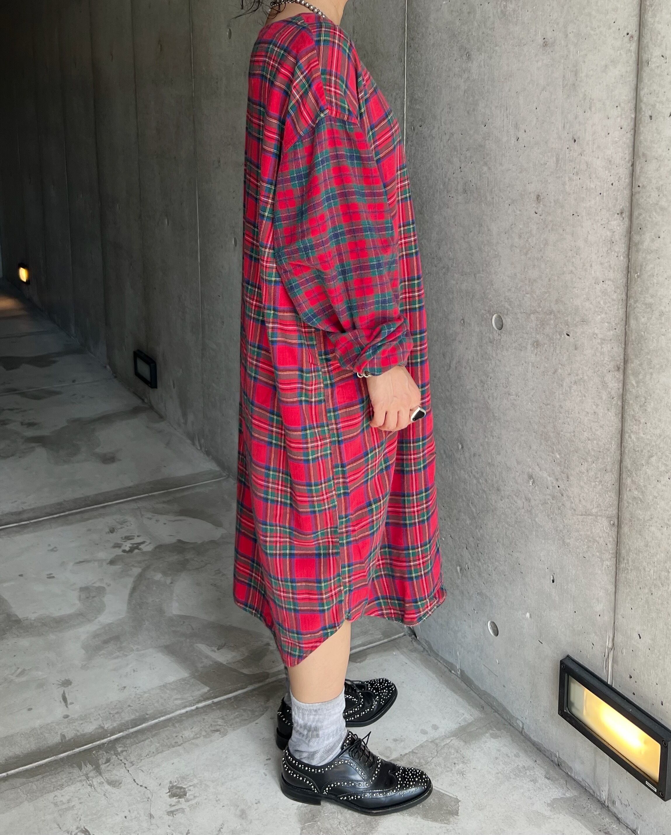 ワンピースとして着れるくらいの長さ、ネル素材ならではの程よい厚みも魅力的。もちろん一枚での着用だけでなく、パンツとのレイヤードコーデでも楽しめます。