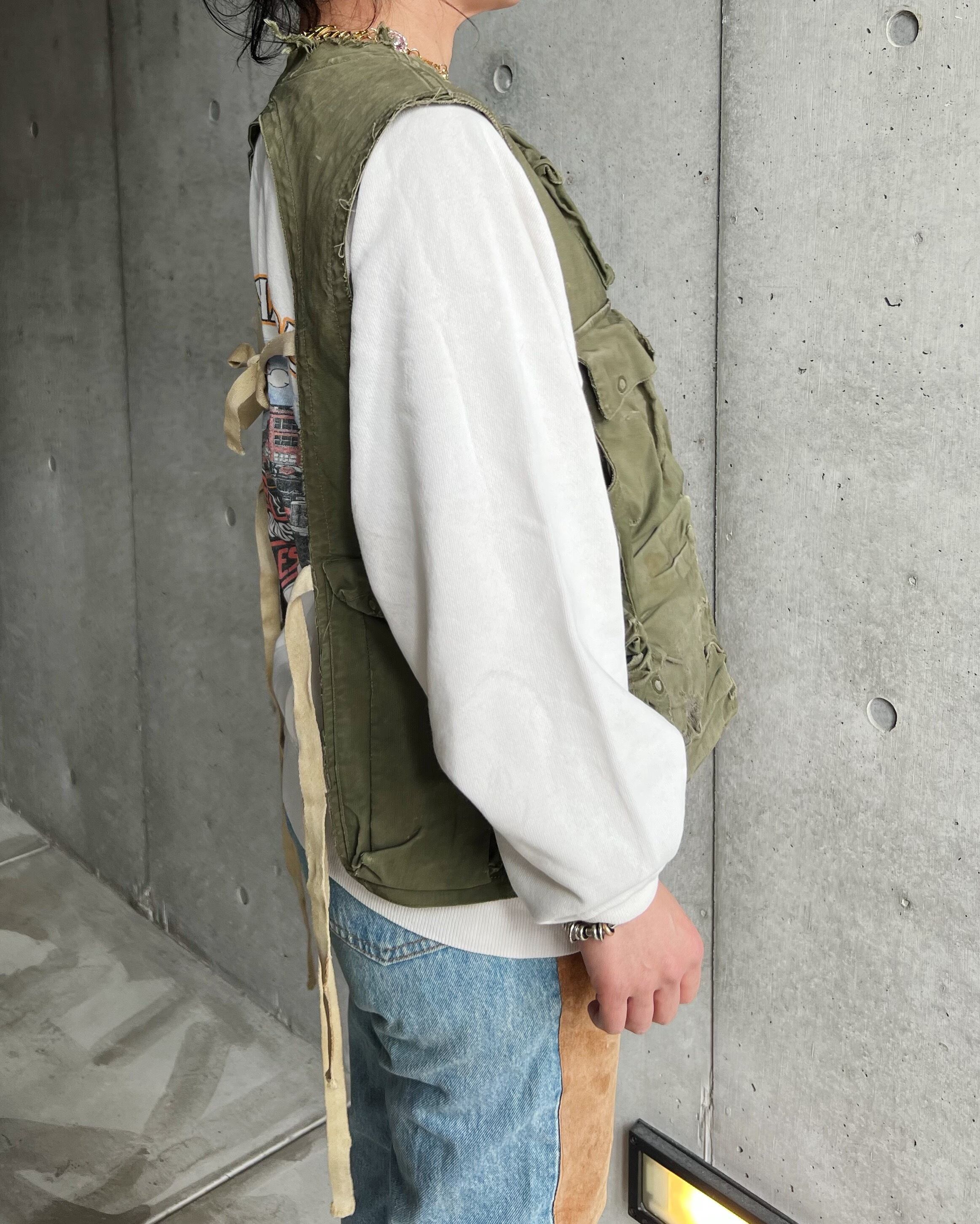 ・経年変化によるダメージをデザインとして残す為、着用時に負荷の掛かる部分のみリペアを施しています。