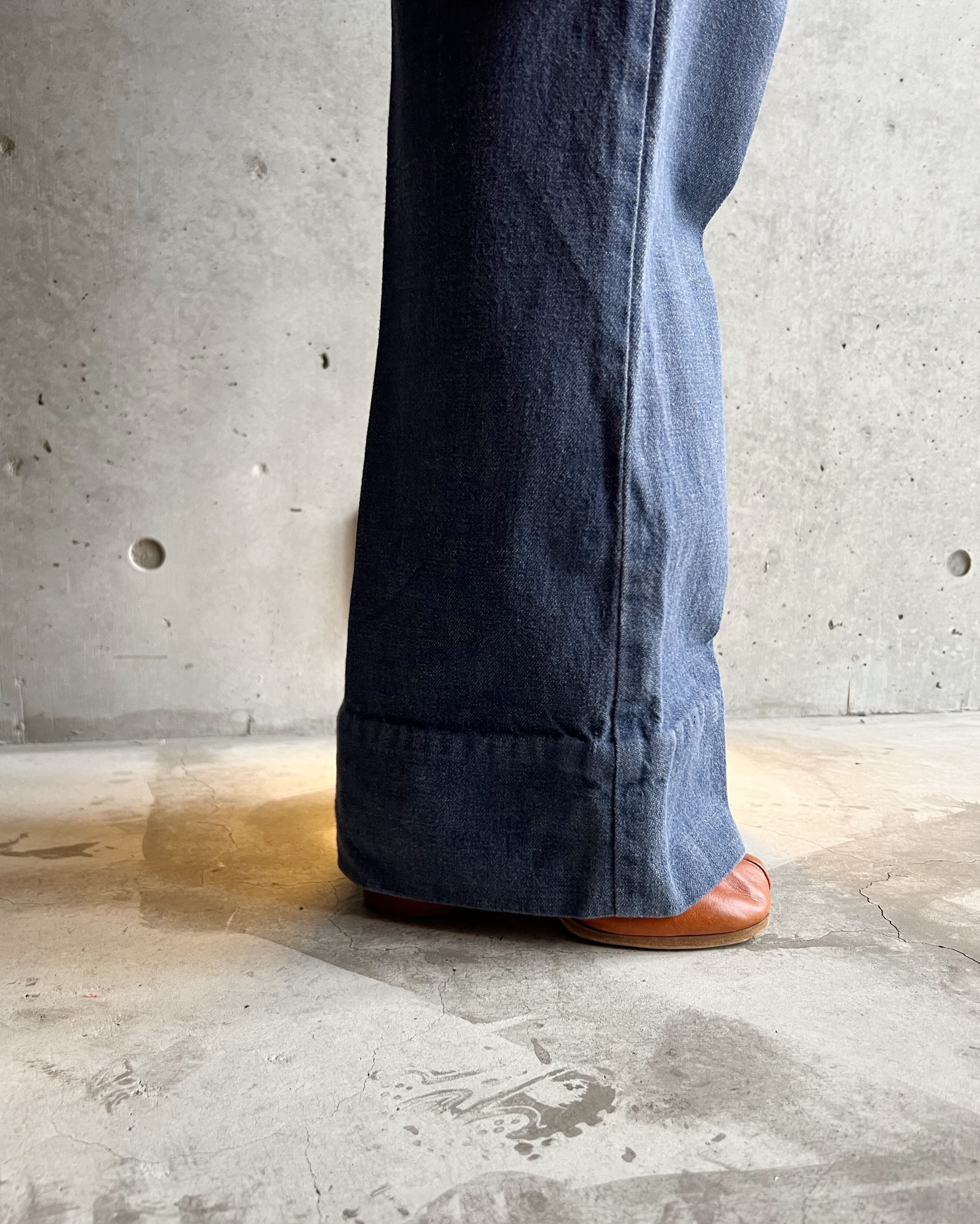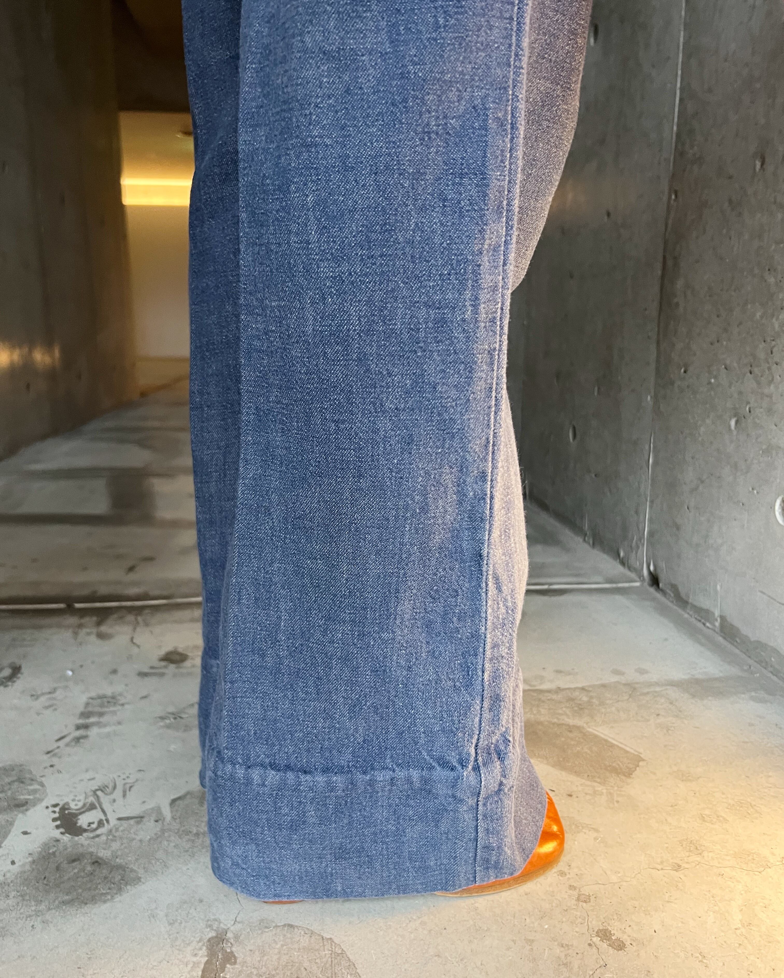 今回のご案内アイテムは、ベースデザインにセーラーパンツを用い作られた60〜70年代のヒッピーカルチャーには欠かせない"フレアパンツ"