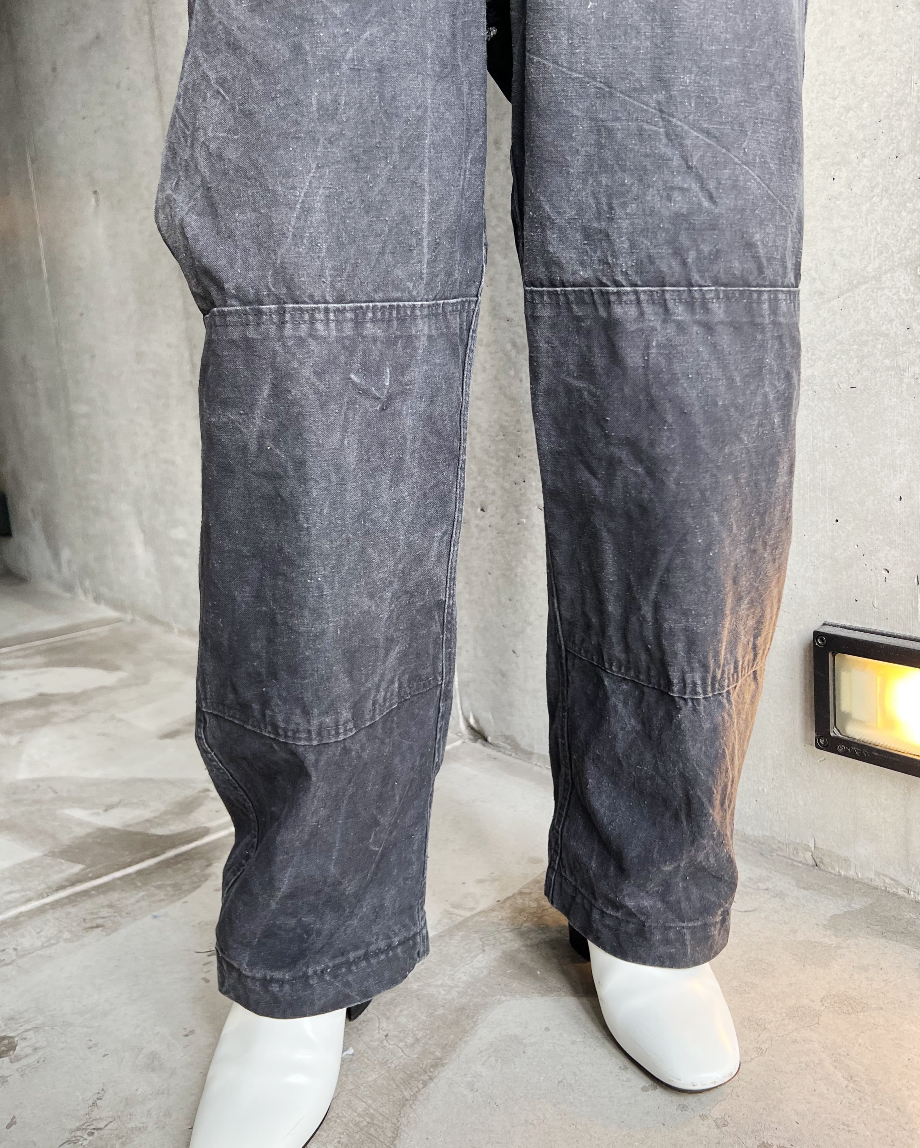 大柄の人が多いので、それに見合ったサイズなら出会す機会は多いものの、日本人にも着やすいウエストサイズでレングスと珍しい一枚。袖はカットオフでカスタマイズ、ダック地特有のアタリも相まってパンクな雰囲気漂う辺りなど魅力たっぷりです。