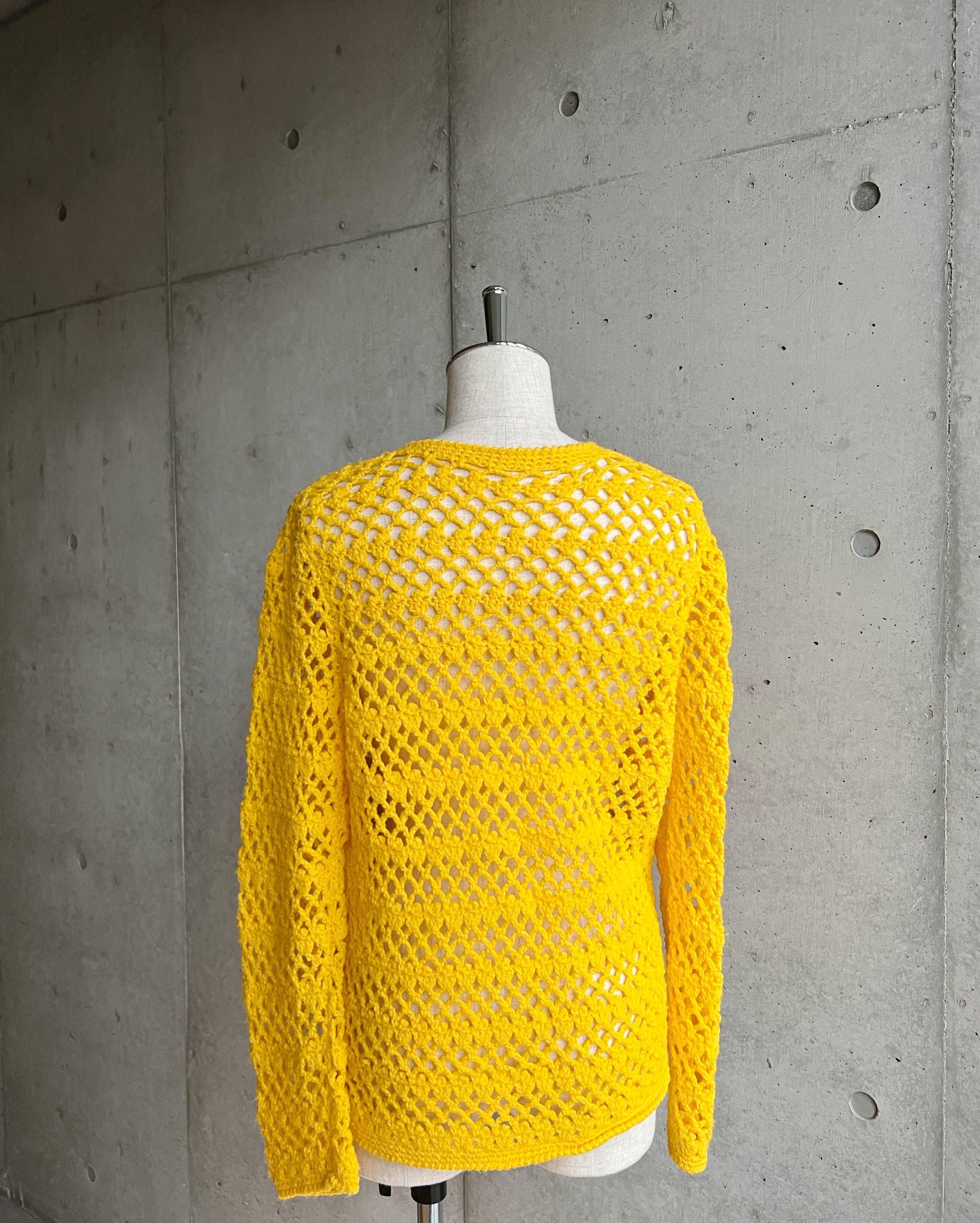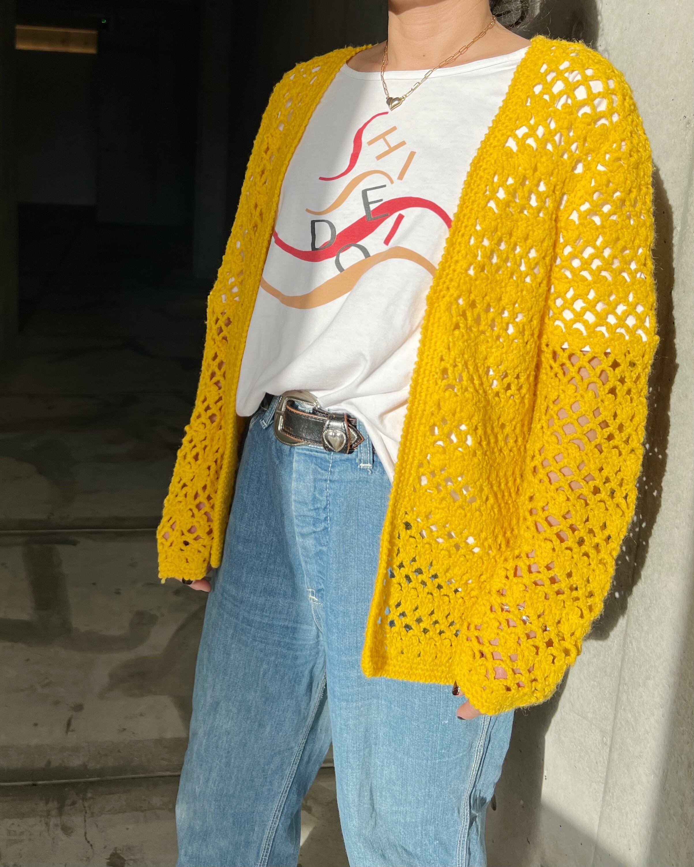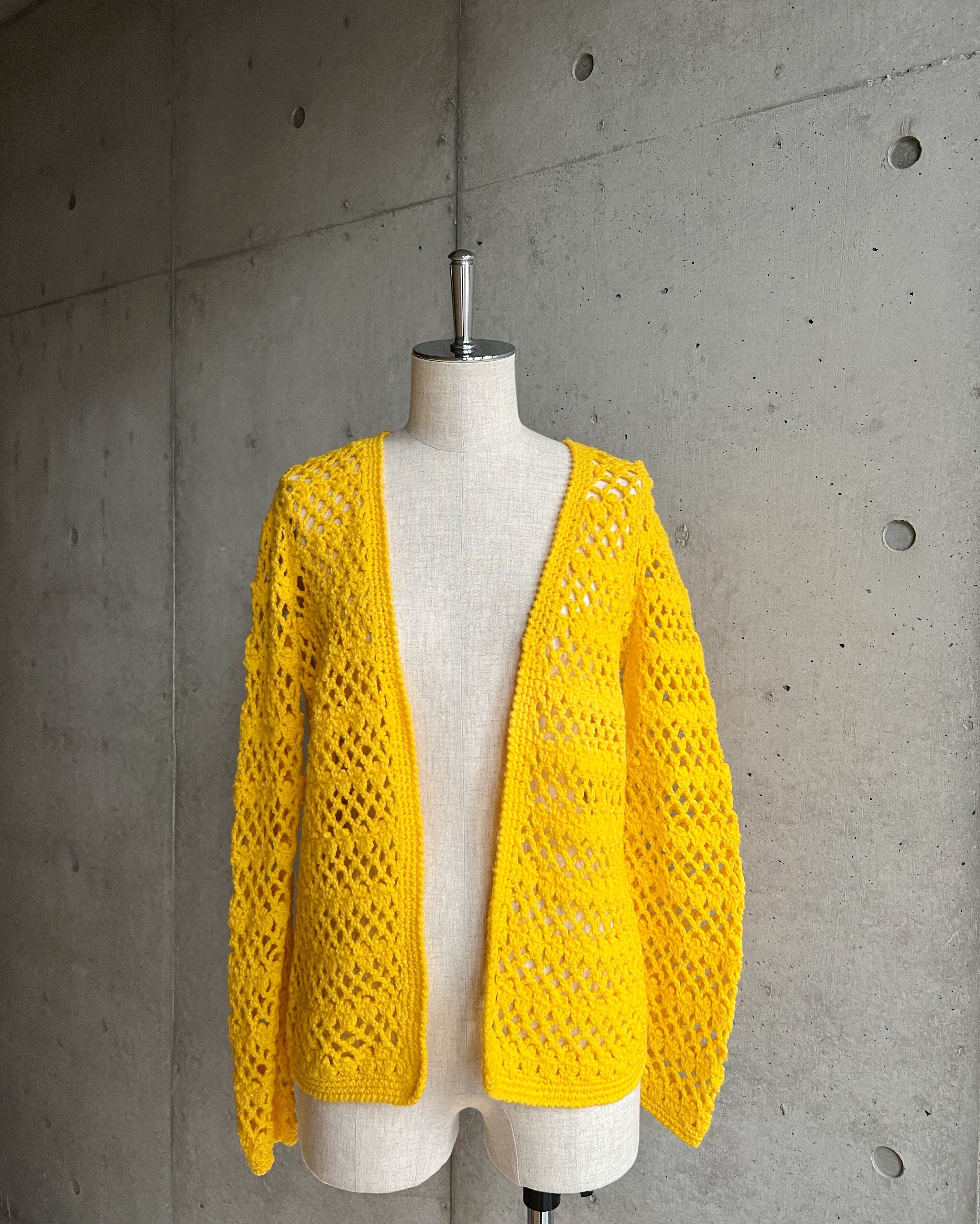 tamago storeでは過去に何度かクロシェニットはご紹介していますが、ここまで発色の良いタイプはお初となります。。ここまで発色が良いとインナーは白を選びたくなりがちですが、敢えてタイダイ染めのアイテムと組み合わせて、エスニック調な雰囲気で纏うのも良いですね