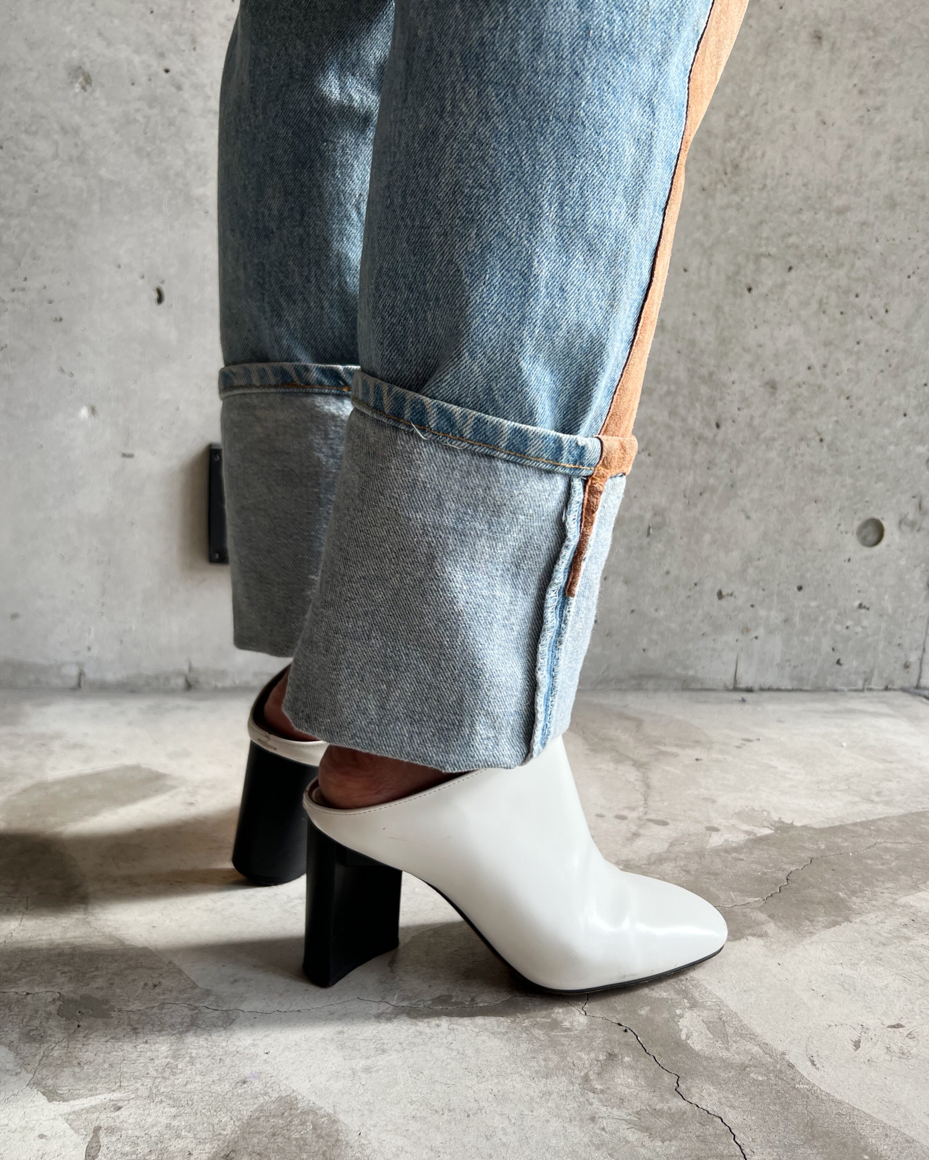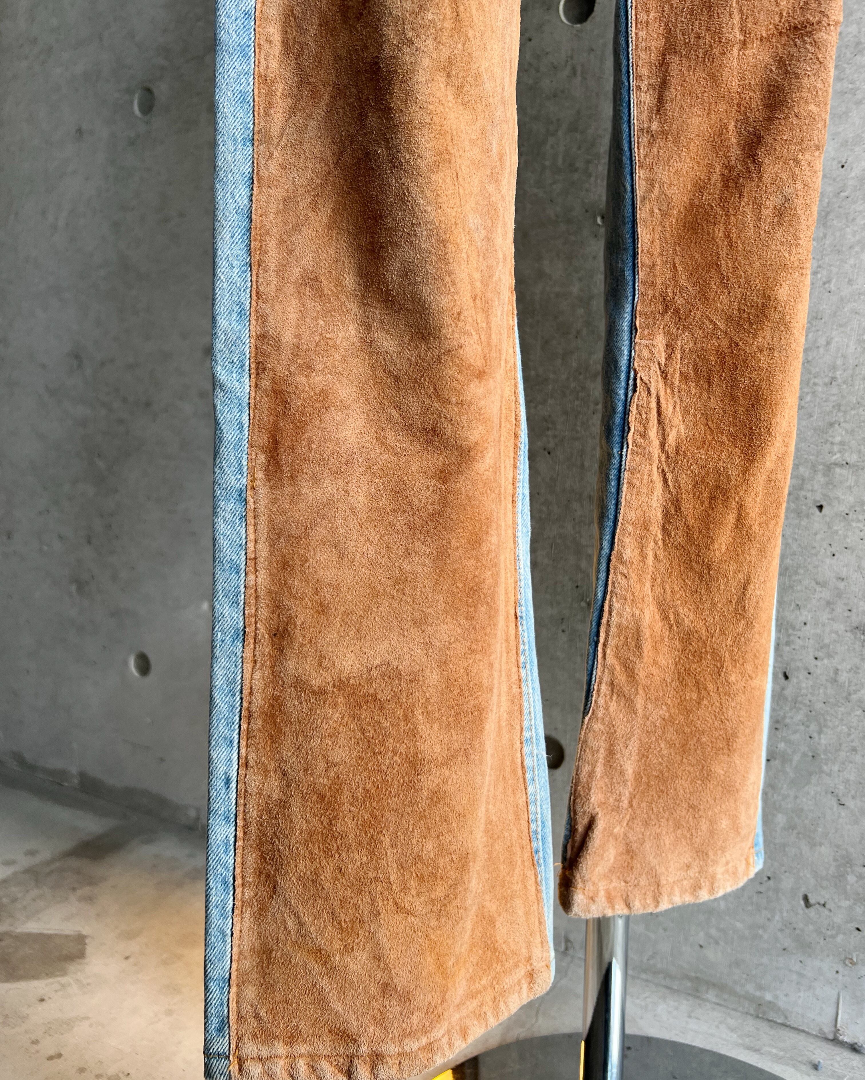 定番であるLevi's 501をベースに前オーナーが表革を大胆にパッチワークを施したカスタマイズデニム