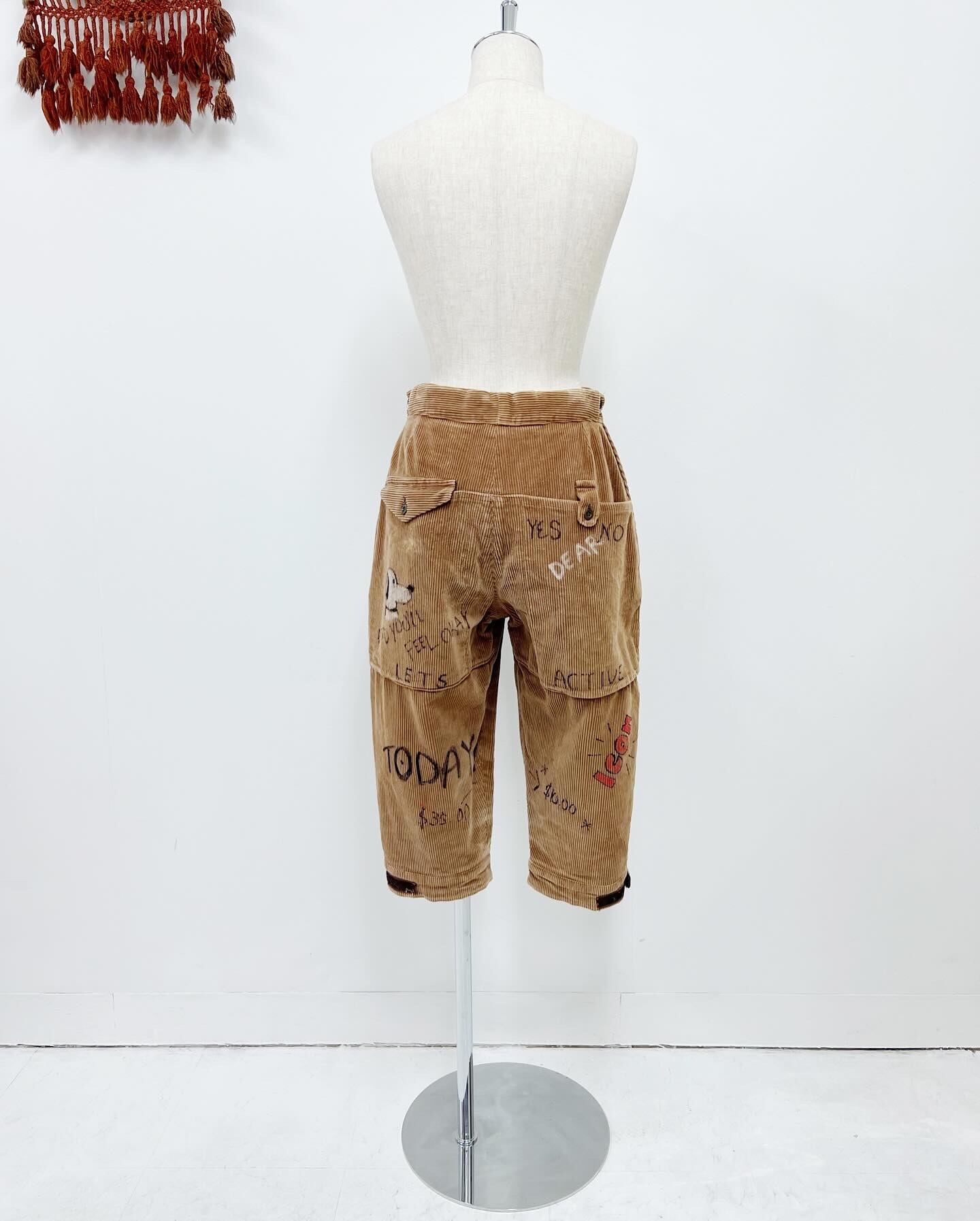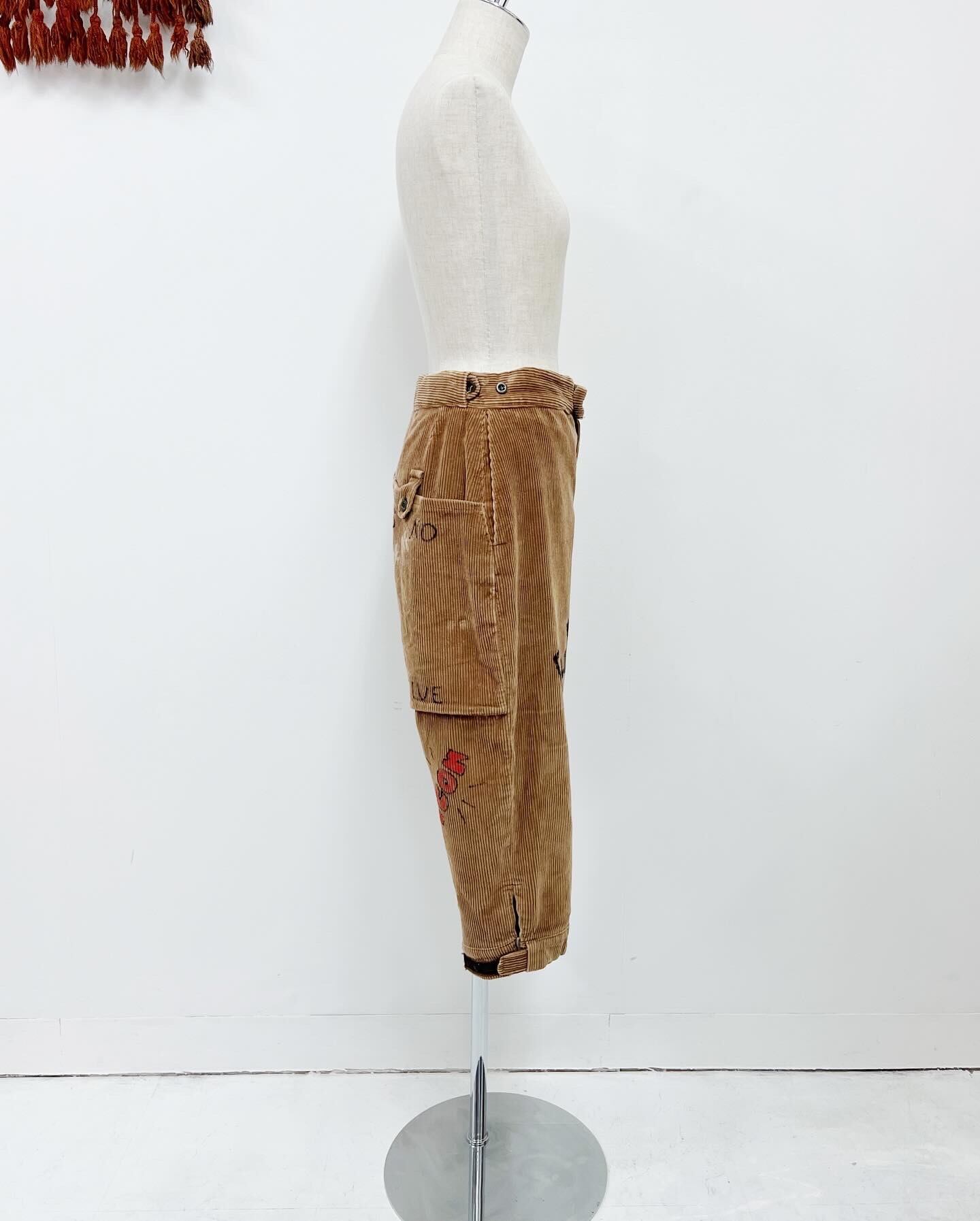 細畝コーデュロイながら肉厚な生地を用いた60年代頃のニッカポッカー。そんなクラシカルなパンツにtamago storeでカスタムペイントを施した一枚。