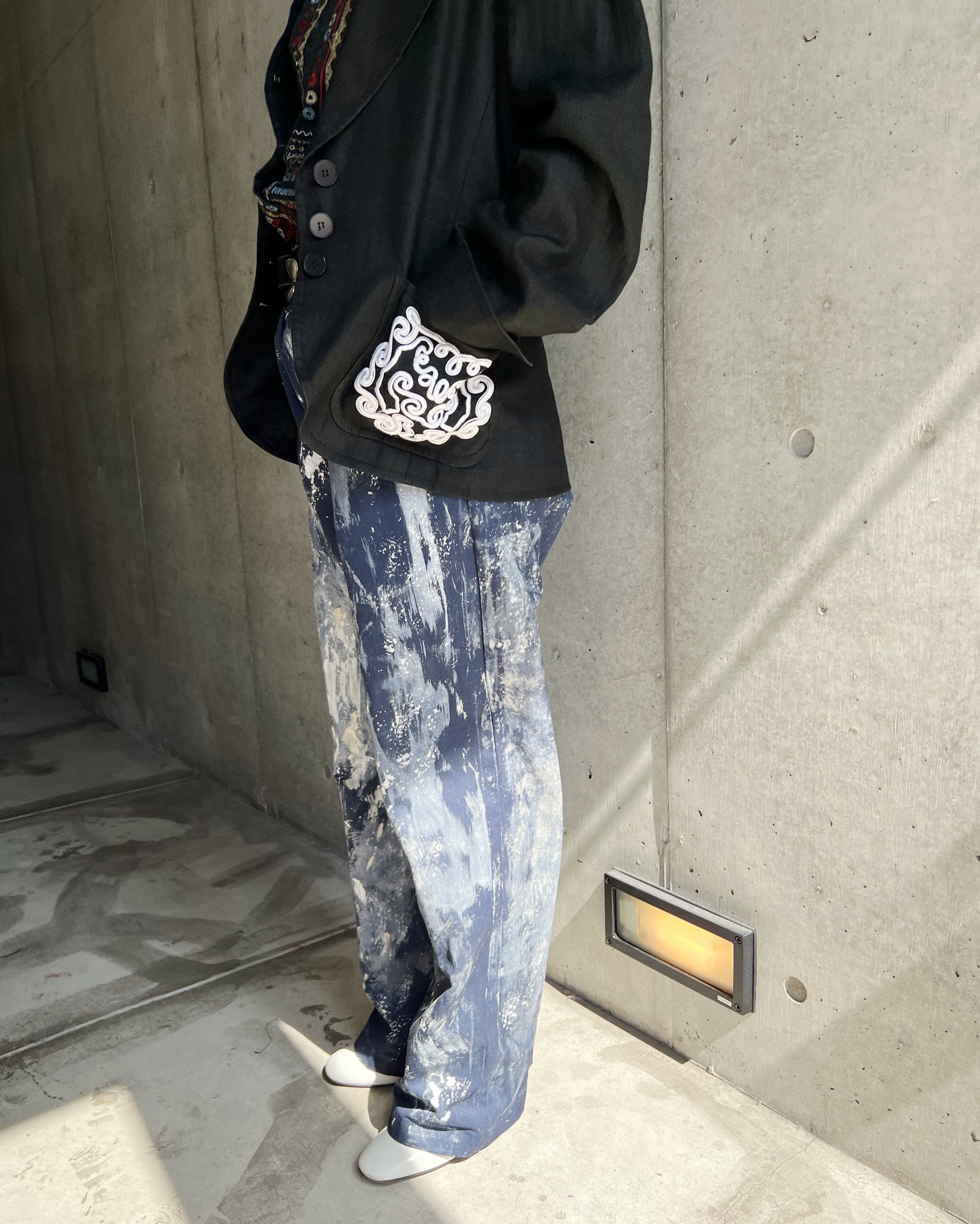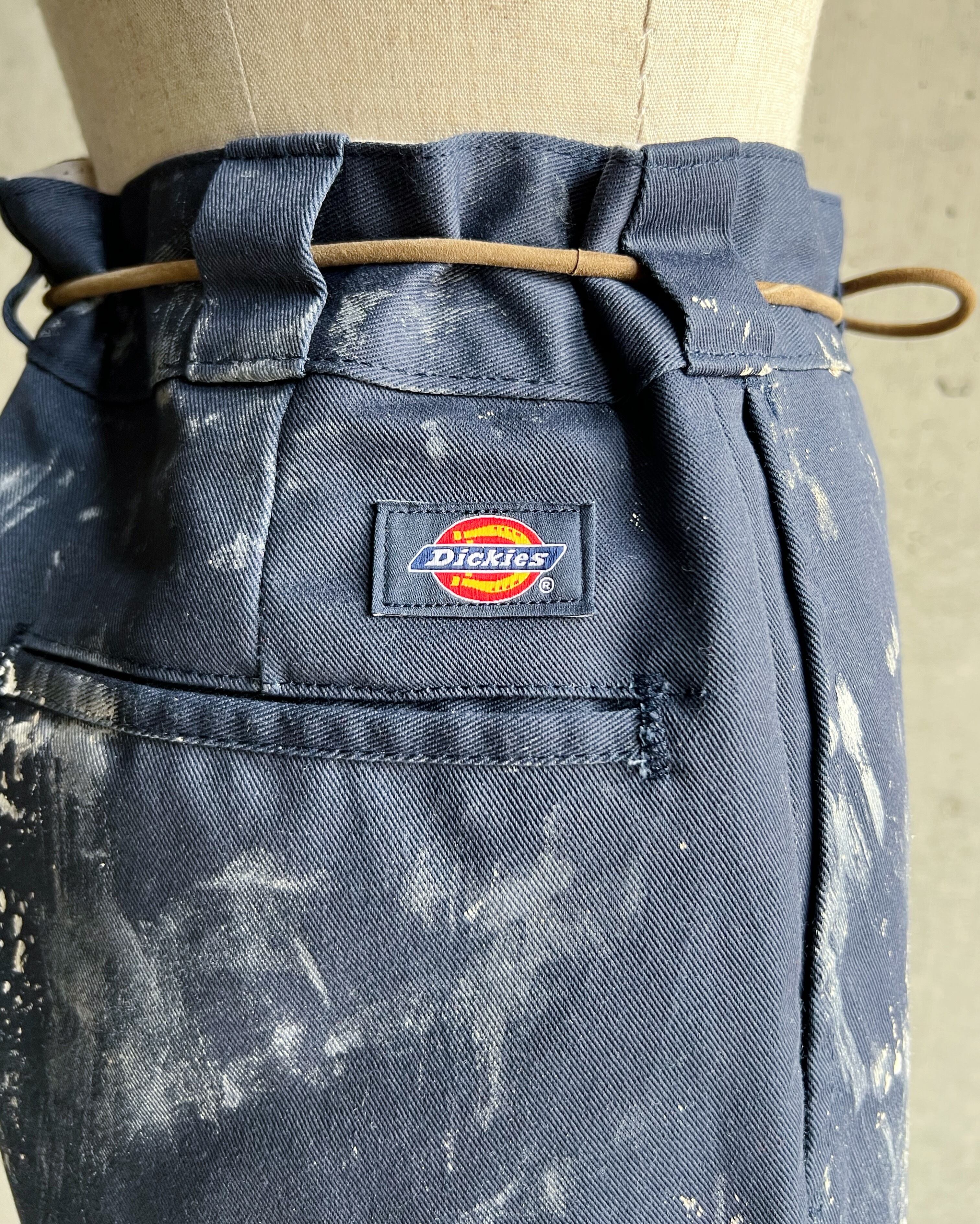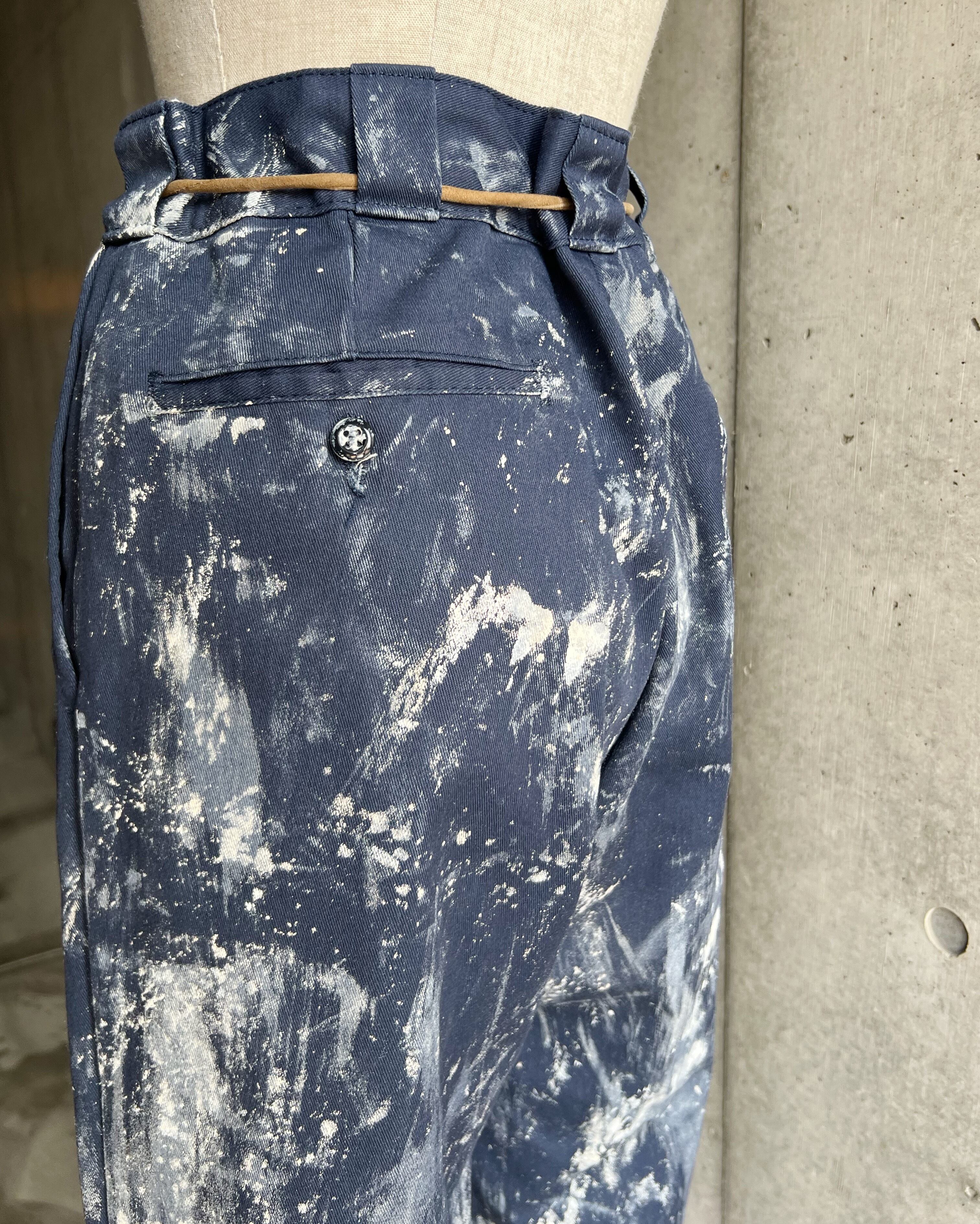今やワークパンツの枠を越えて世界中で愛されているディッキーズ。そんな同ブランドの中でも不動の人気を誇るのが太めのストレートシルエットが特徴の"874"を白とアイボリーカラーにてスパッタリングカスタムした一本
