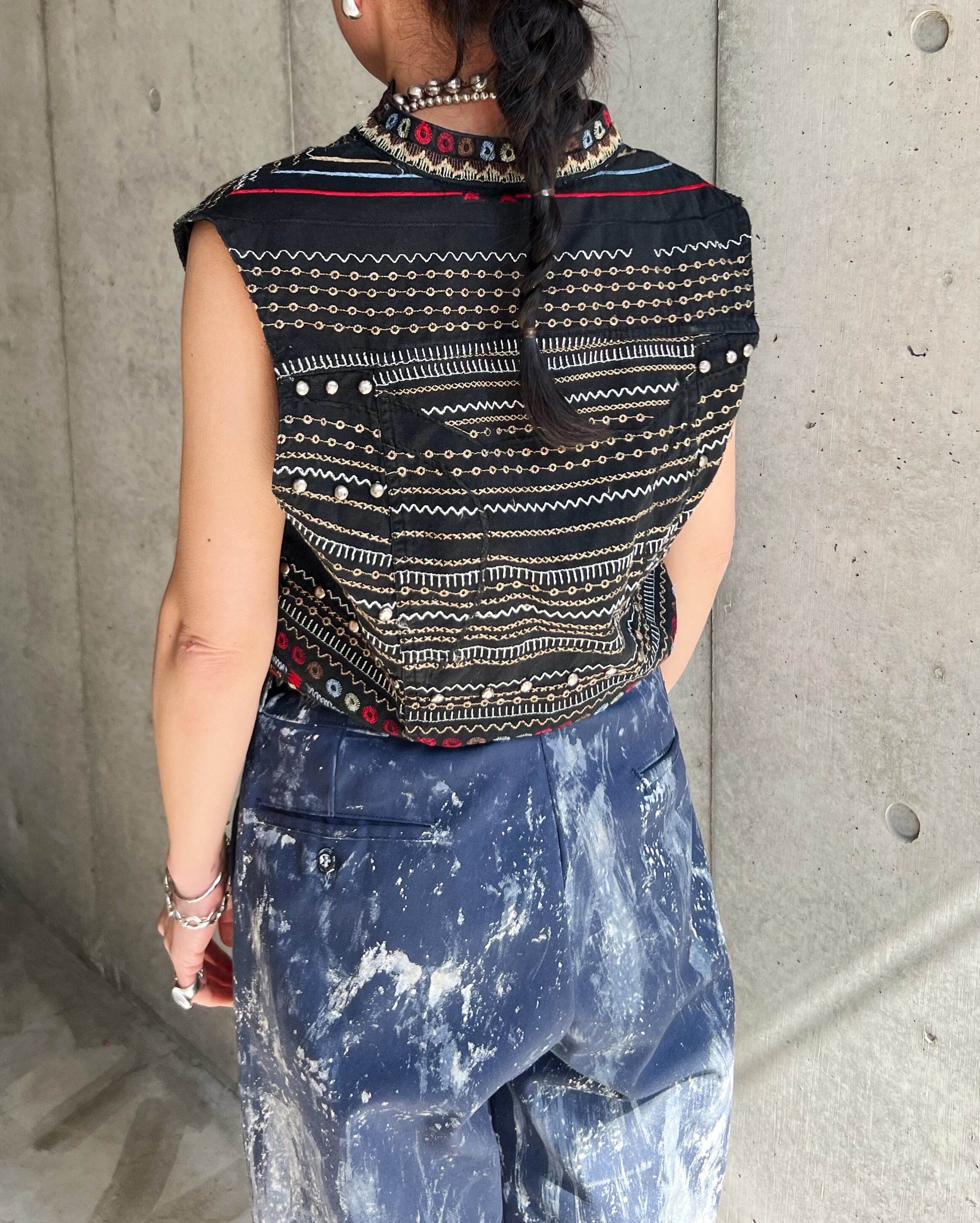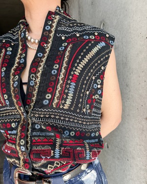 90年代のCHICO'Sらしいトライバルコスチューム調デザインのコットンベスト