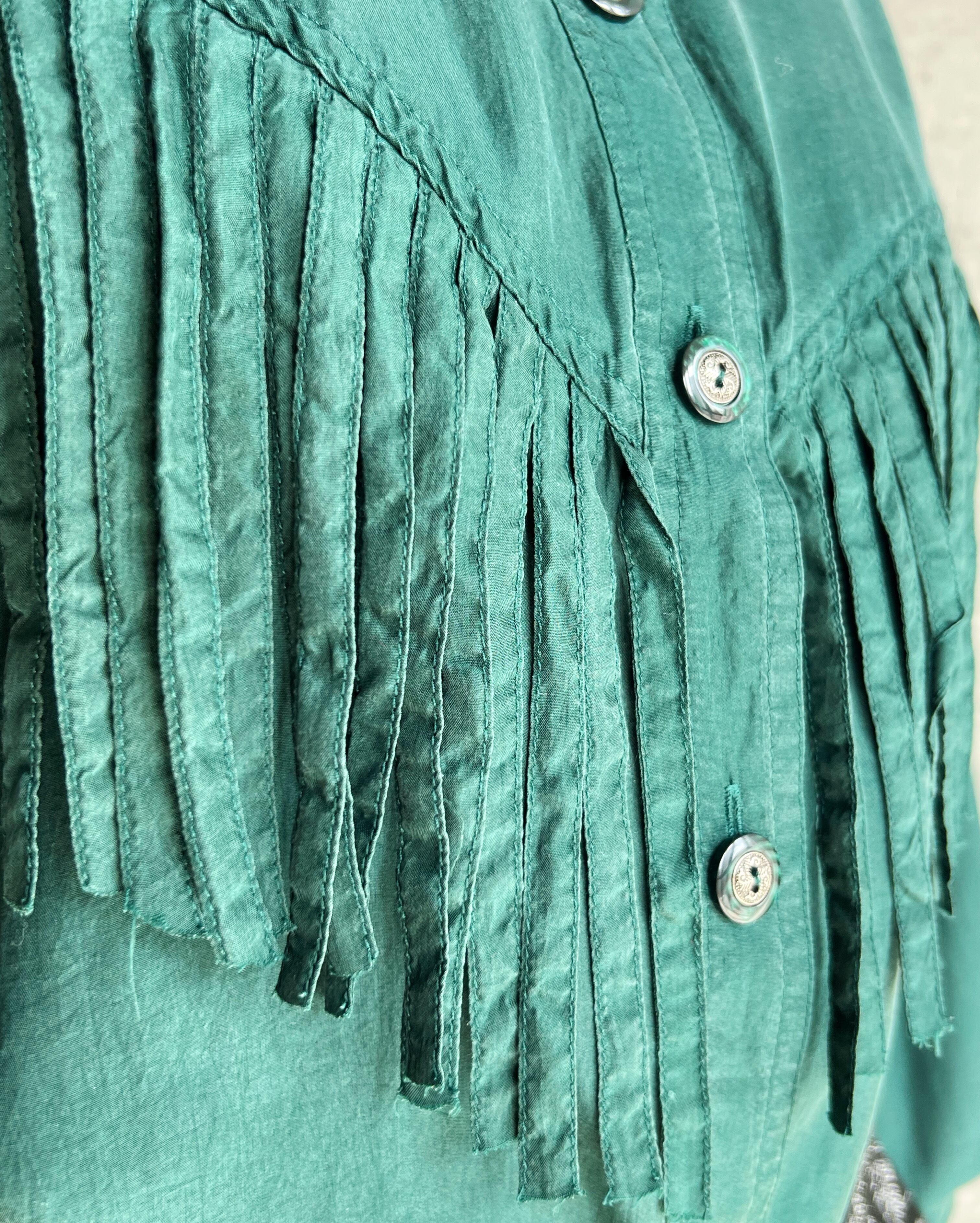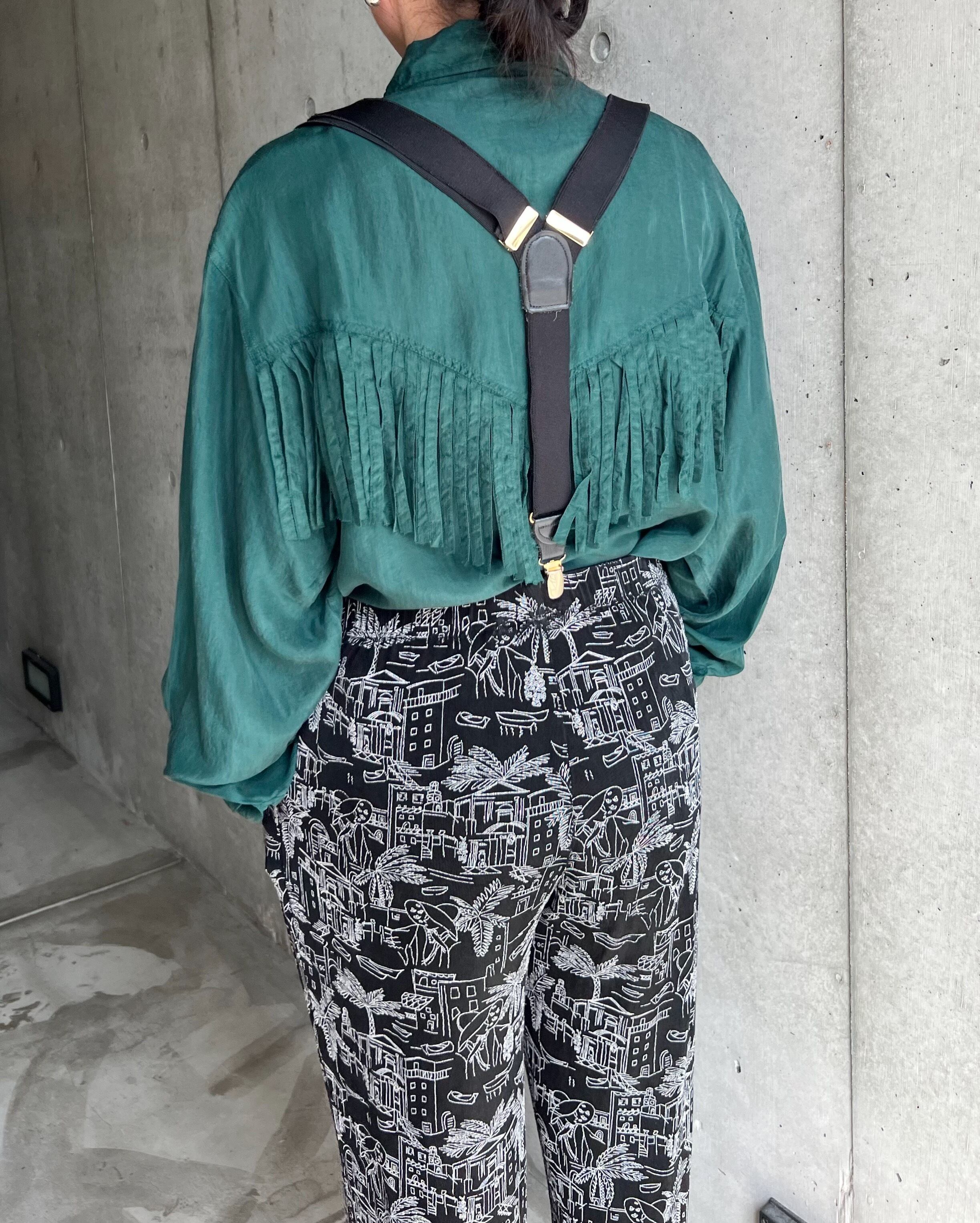 80年代ならではの上質なシルクを使い、ウエスタンジャケットを連想させるディテールを取り入れたユニークなシルクシャツ