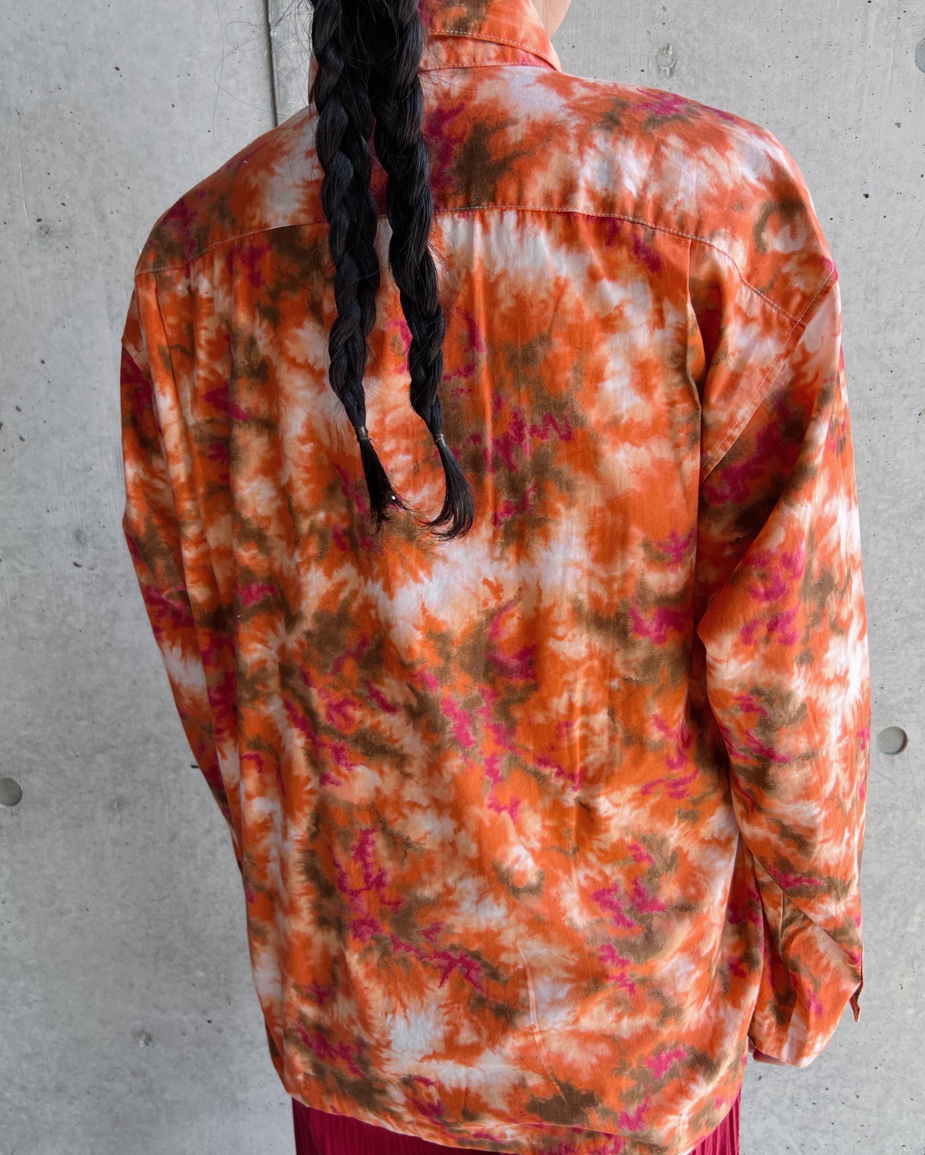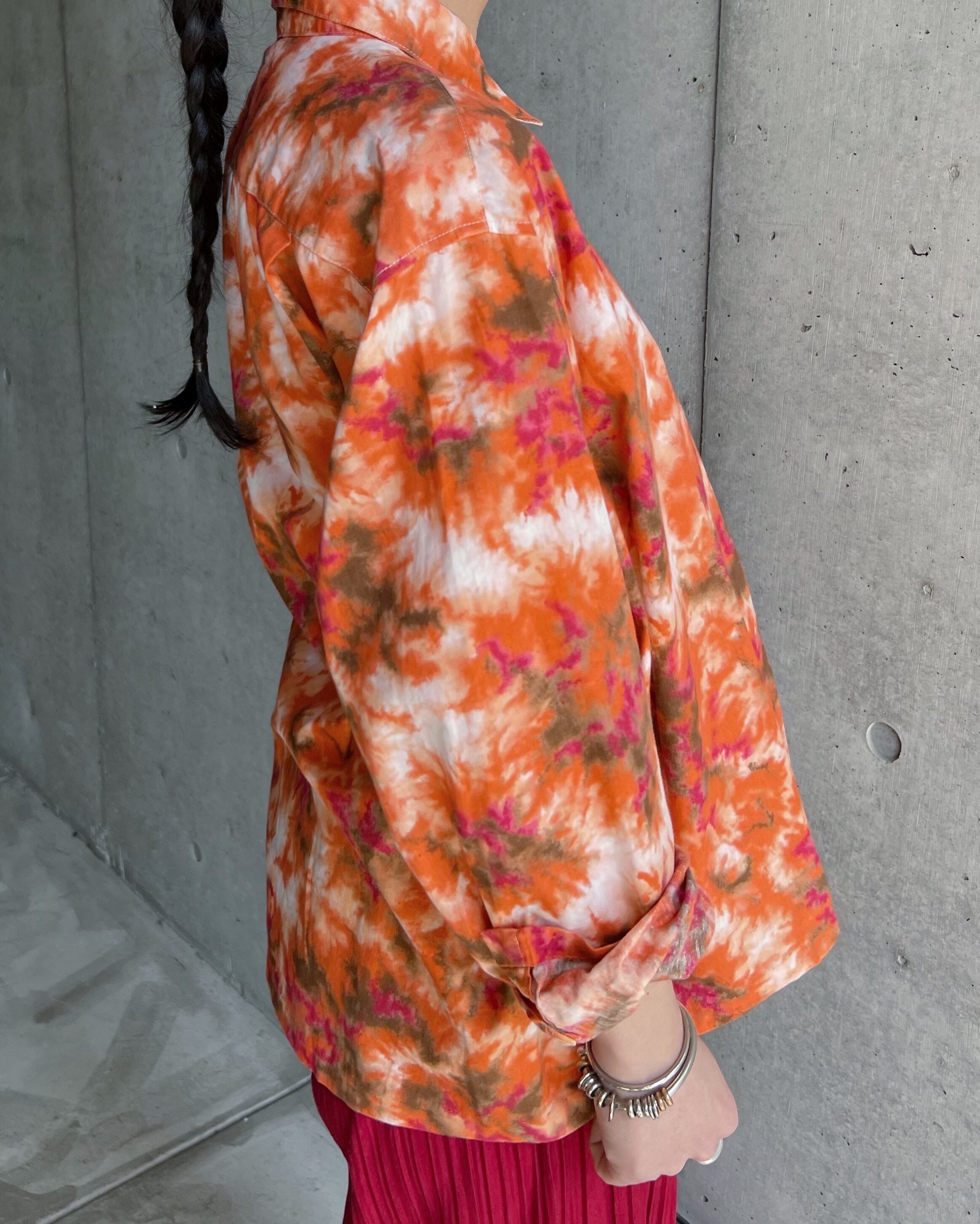 タイダイ染めをプリントで表現した生地を用いたユニークなシャツ