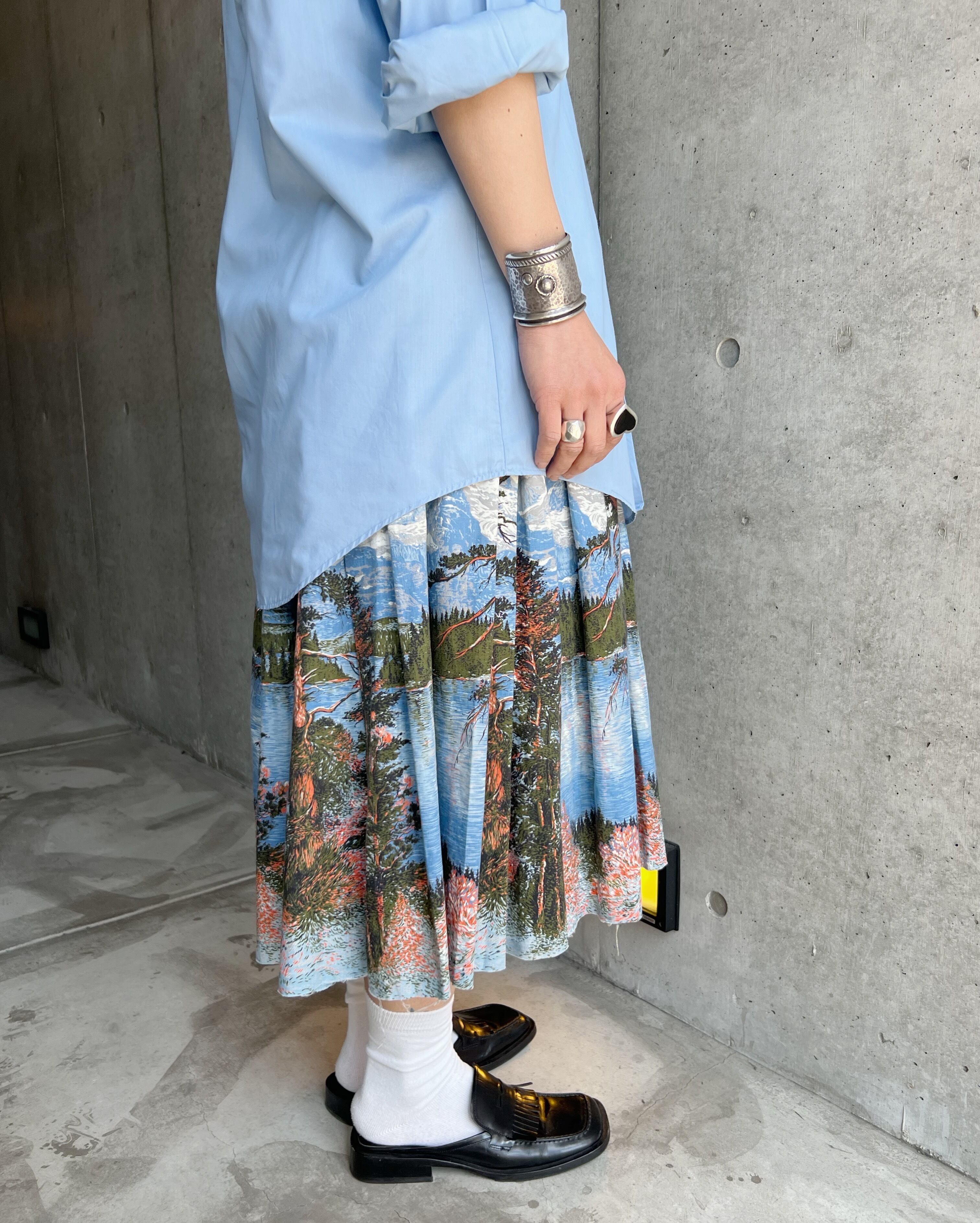 着丈のながさも膝下丈の絶妙なバランス感で大人な仕上がりなので普段スカートをあまり履かない方にもチャレンジして欲しい一枚です