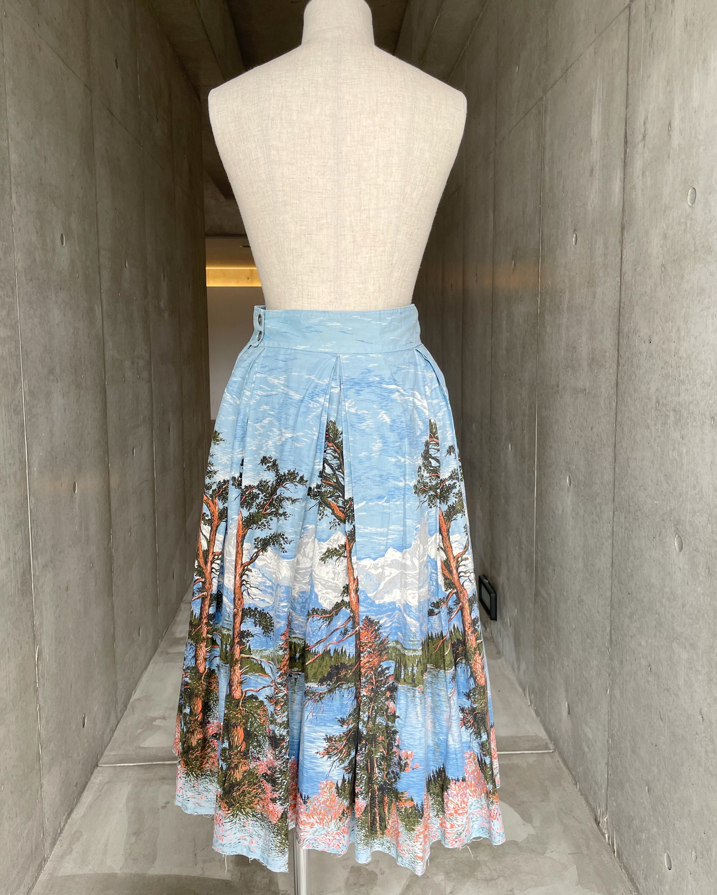 おそらくアロハシャツに使っていた生地を用いて作られたハンドメイドスカート