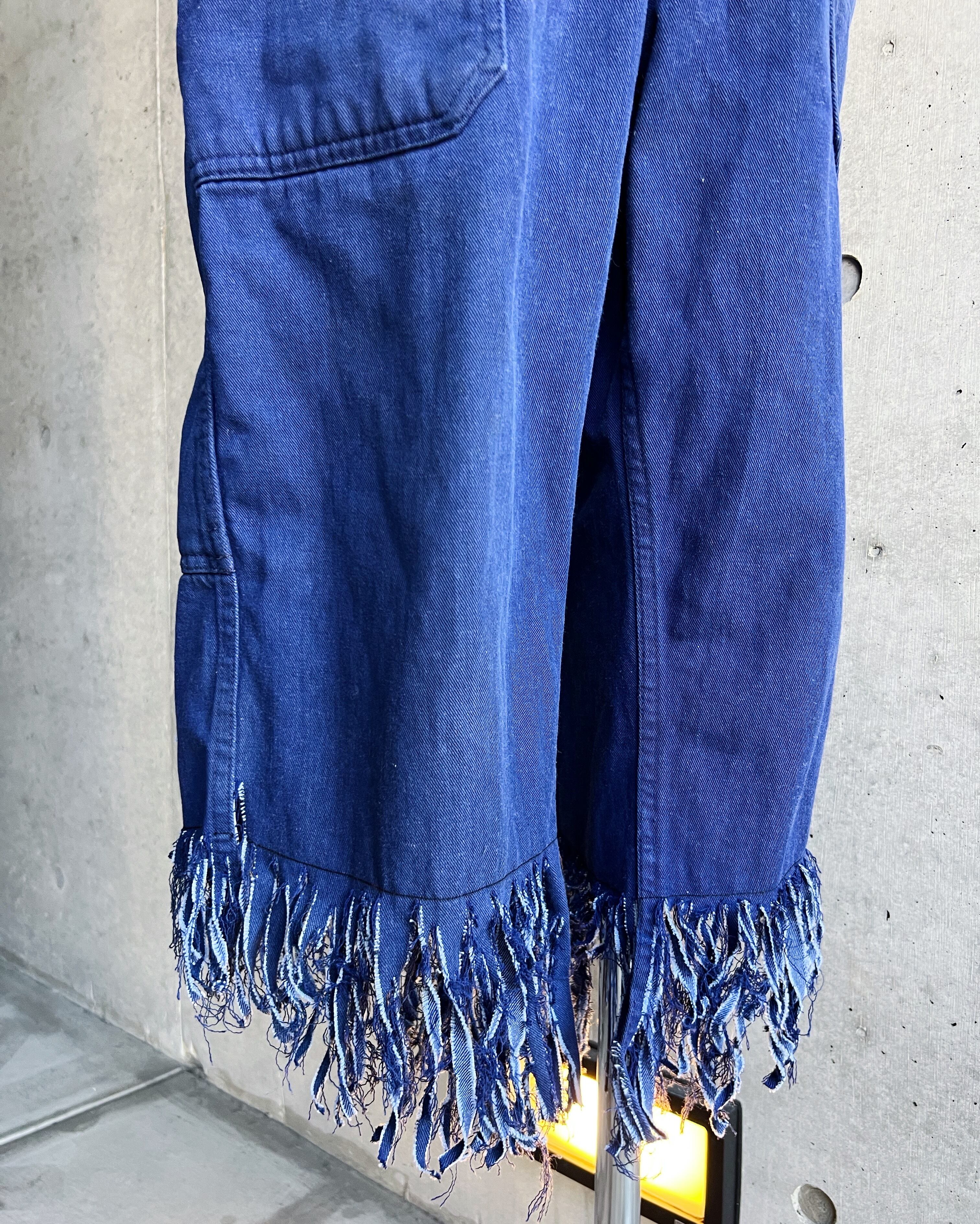 本来の作業着としてのクラシカルな要素は残しつつ裾だけにデザインを施し、モードなオーバーオールへとアップデート。