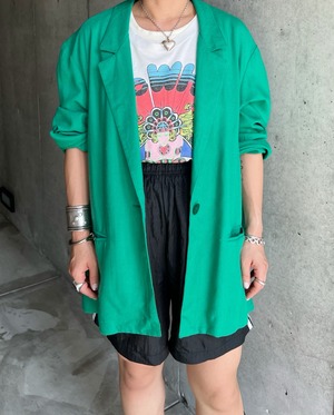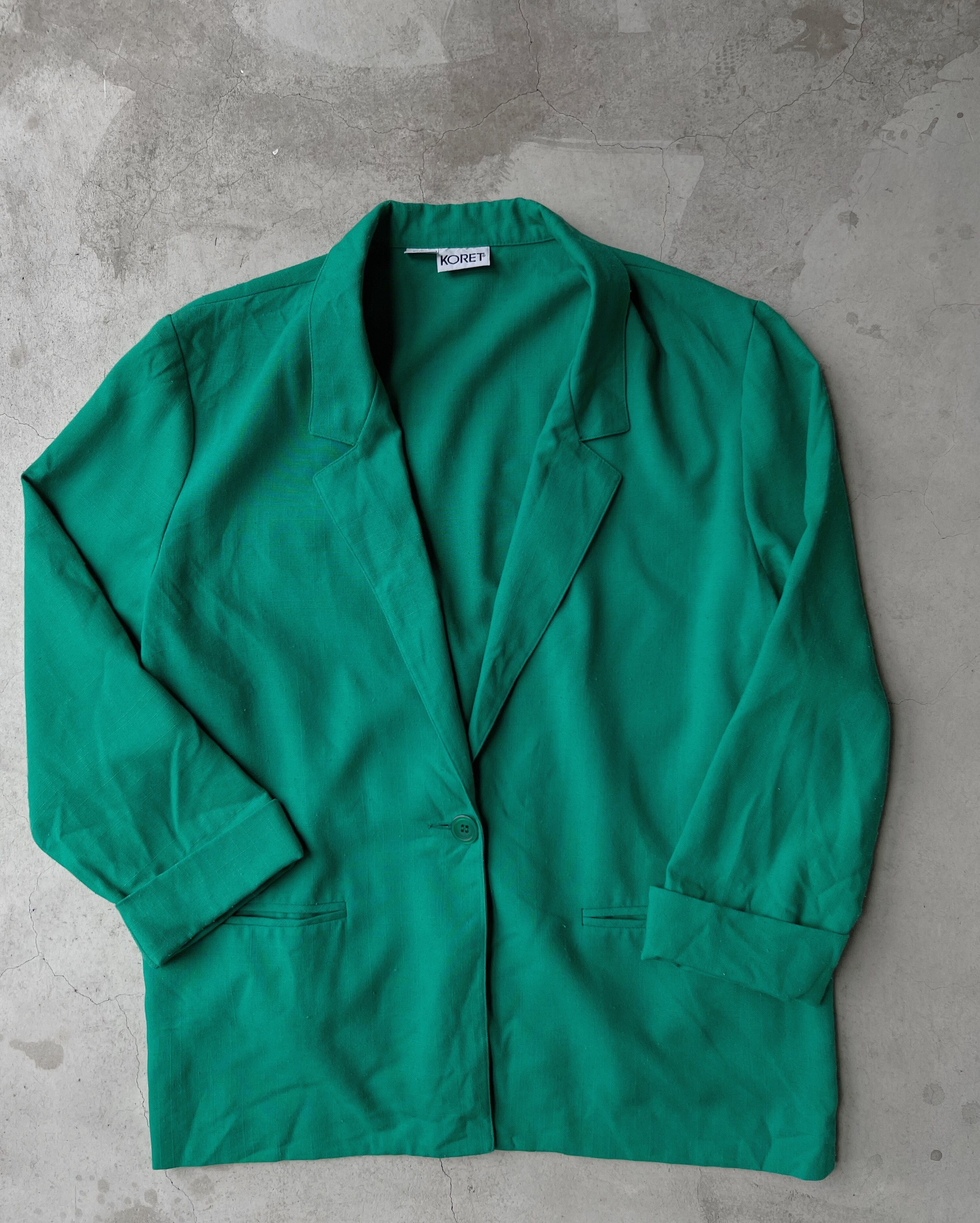 朝晩がヒンヤリする晩夏から初秋に掛けて着たくなるリネンジャケット。鮮やかなエメラルドグリーンが何とも印象的