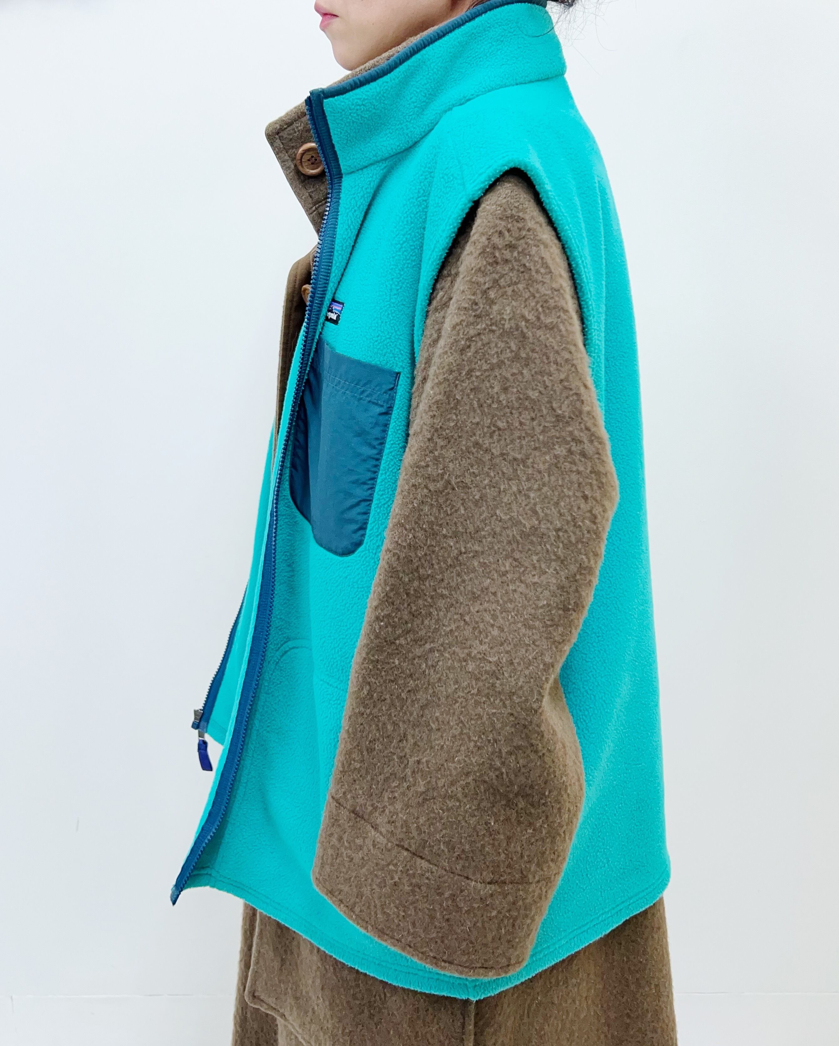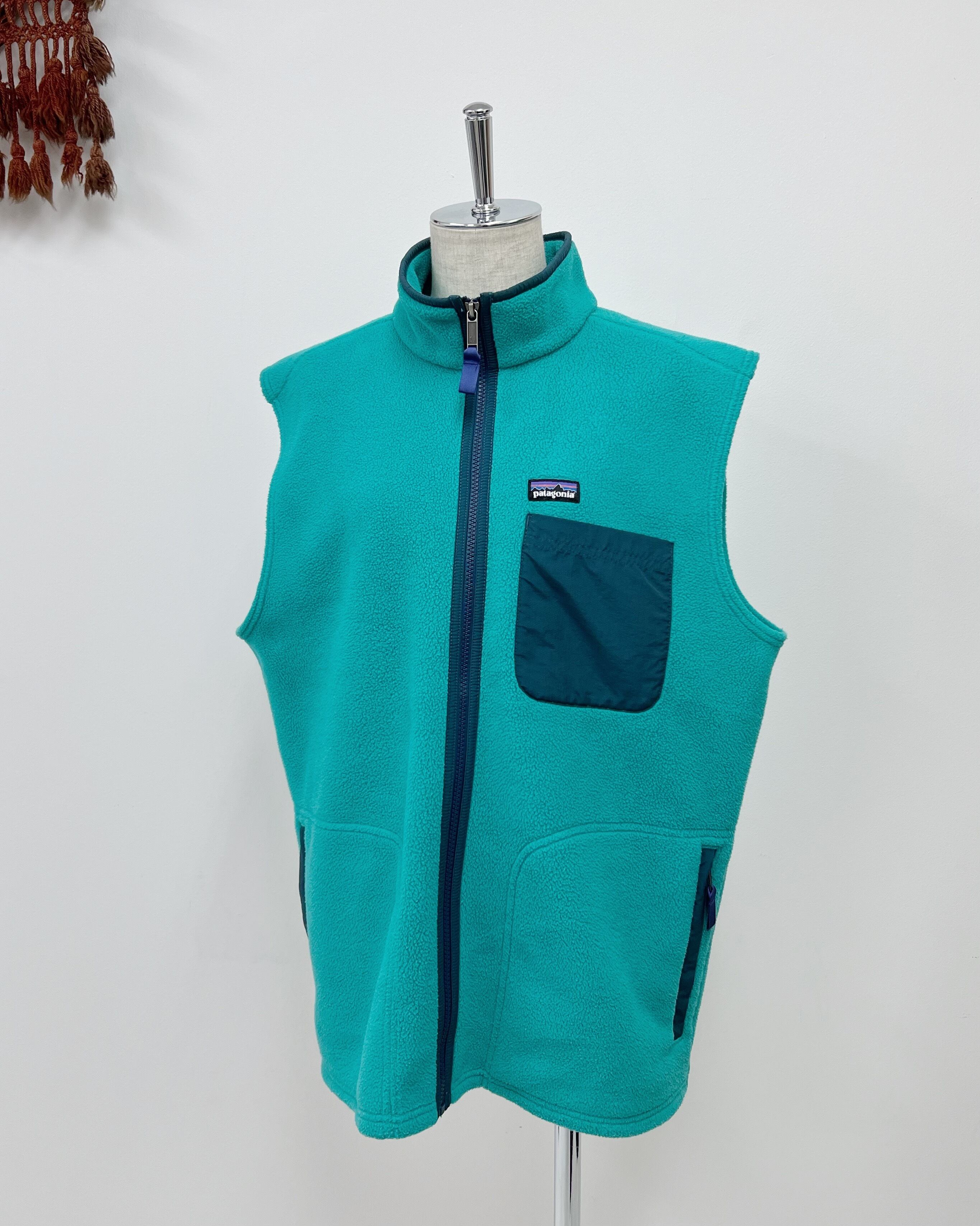鮮やかなエメラルドグリーンが90年代アウトドアらしいパタゴニアの定番フリースベスト
