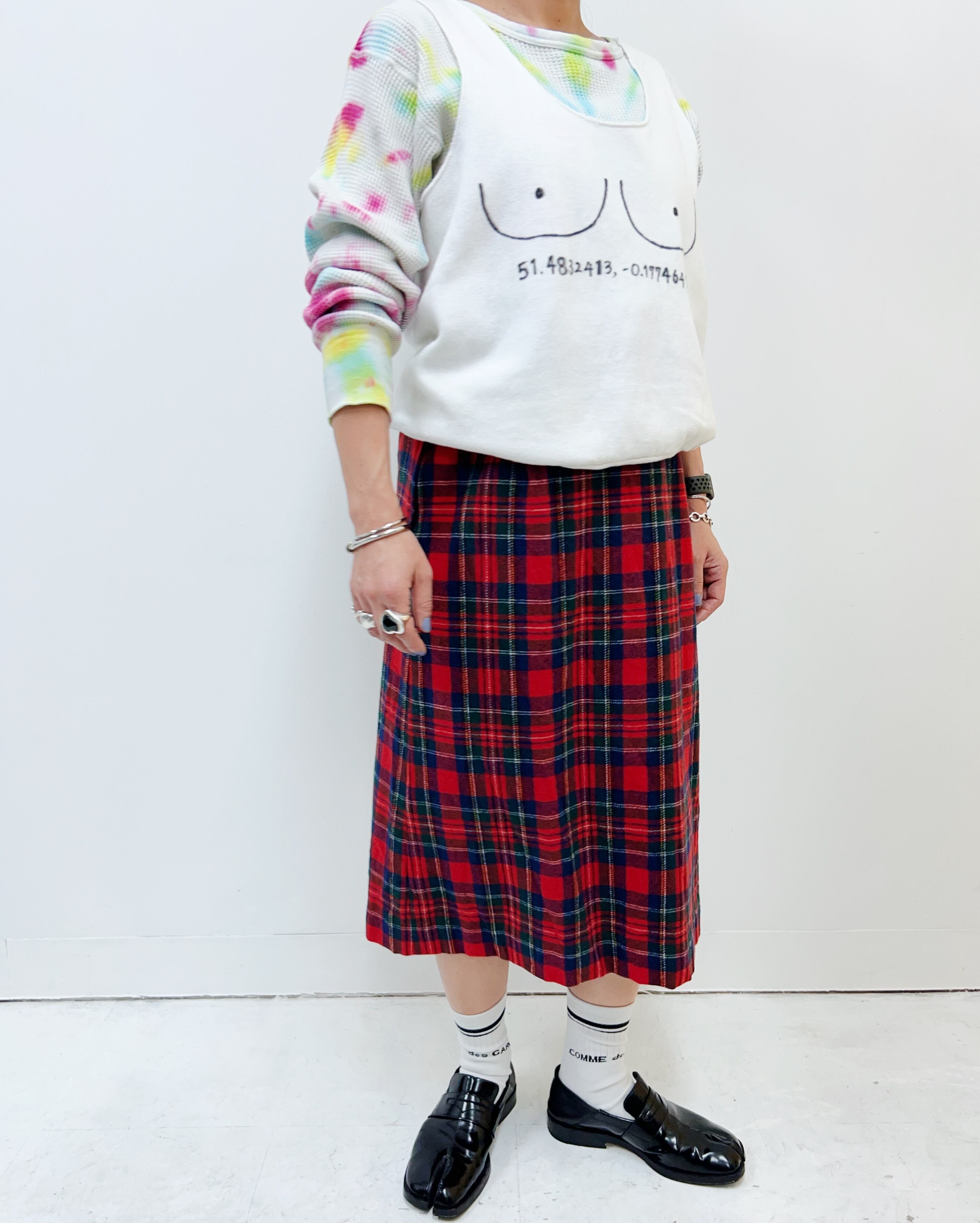 裏地もしっかり裾まで付いているのでチクチクしたストレス無く履いて頂けます。着丈がしっかり膝下まであるので一枚で履いてロングソックスをあわせたプレッピースタイル、スキニーシルエットのパンツをインナーにレイヤードを楽しんだり。と幅広くお使い頂けます。