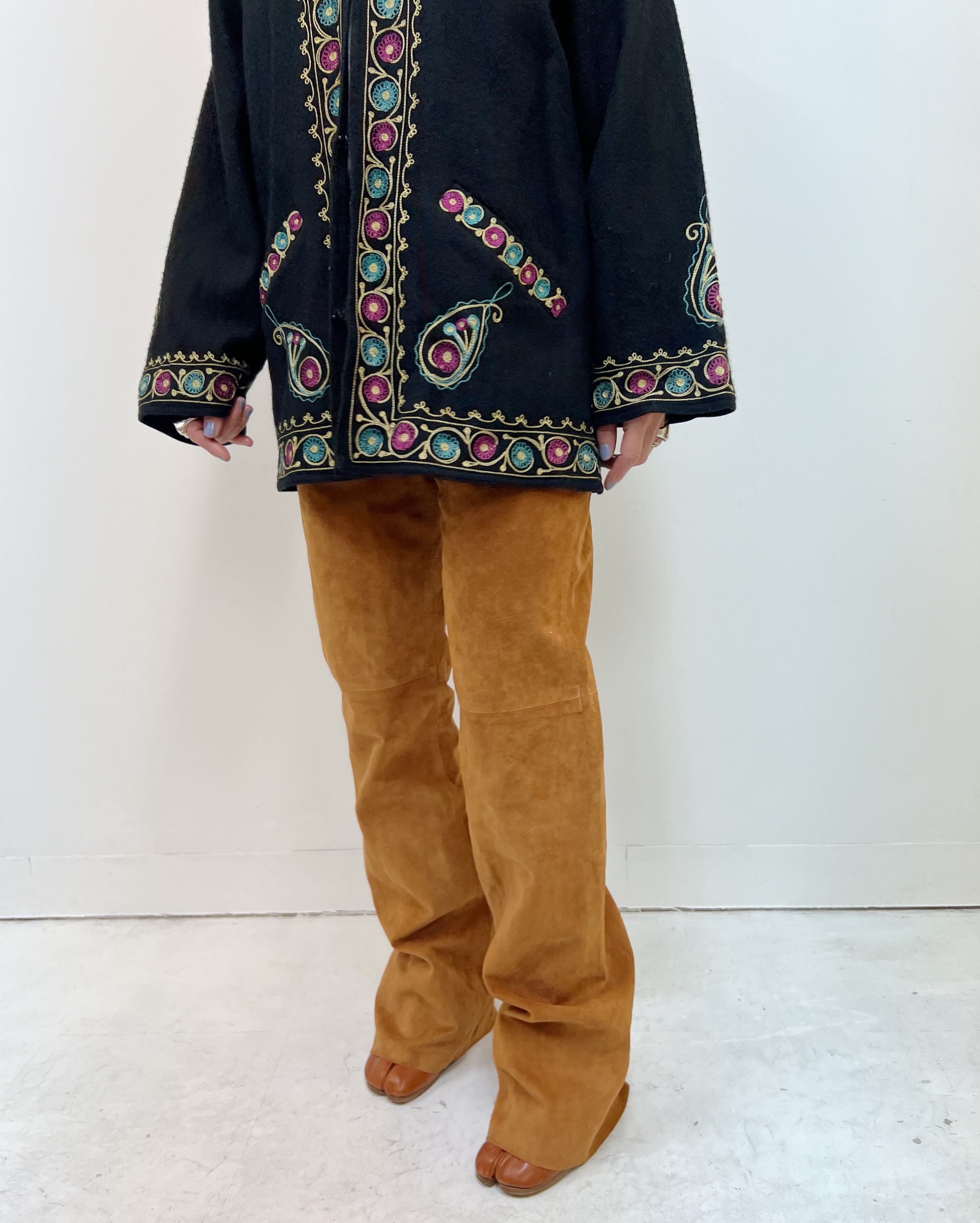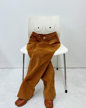 レザーパンツ。と言えど、革自体は柔らかくてモチッとした質感で履いていてもストレスを感じさせなさそう(レザーパンツは履き心地が命。ここは本当に重要。)コンディション記載の通り、裾先まで裏地が付いているので冬場も履けるのが嬉しいです。