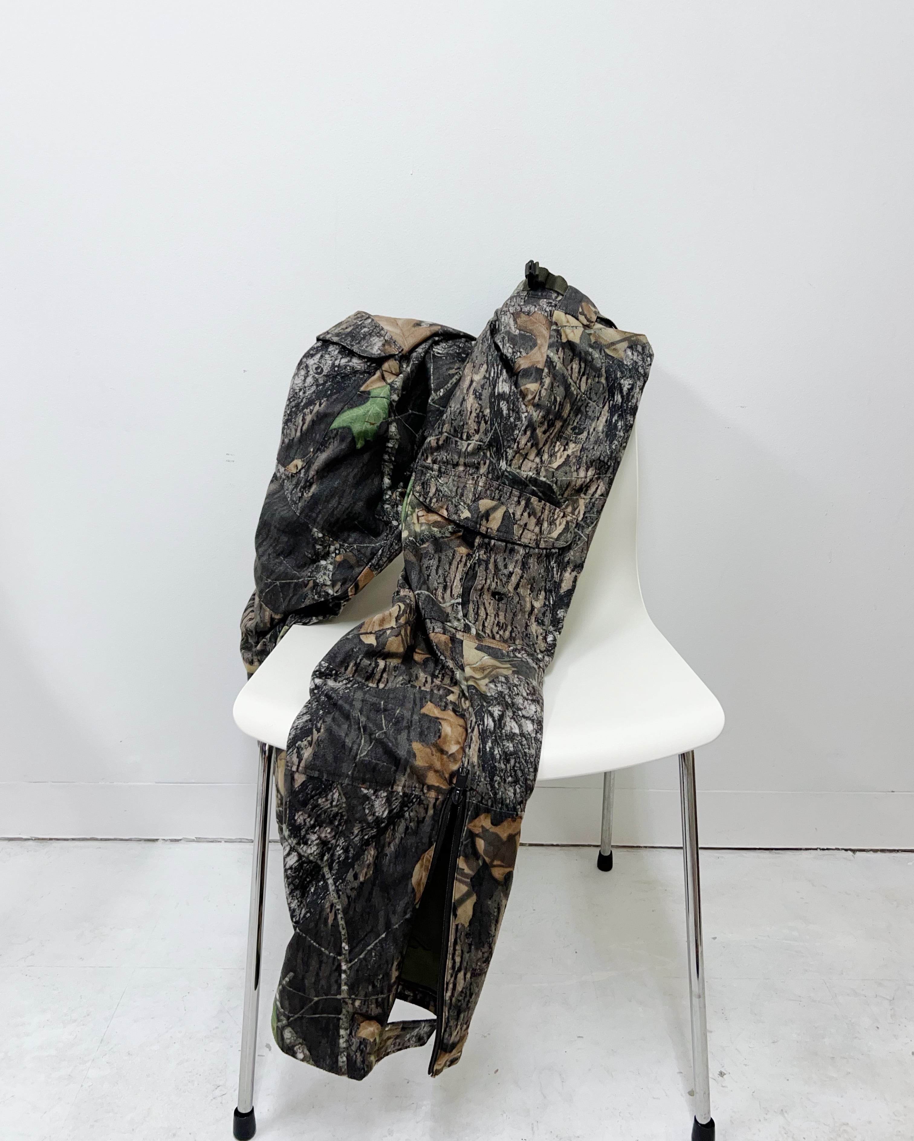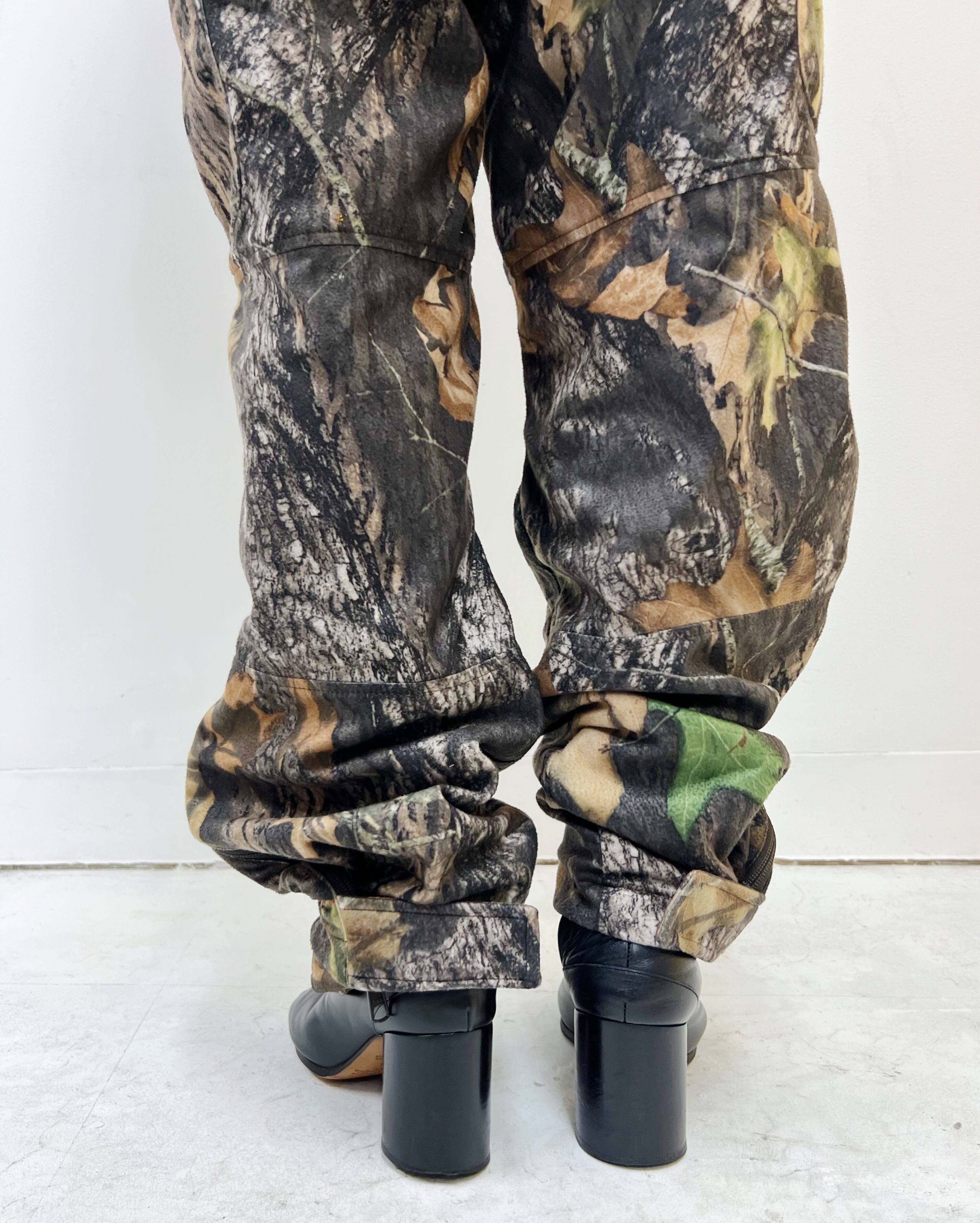 冬場のハンティングゲームで使用されていたリアルツリーカモ柄プリントのフリースパンツ。