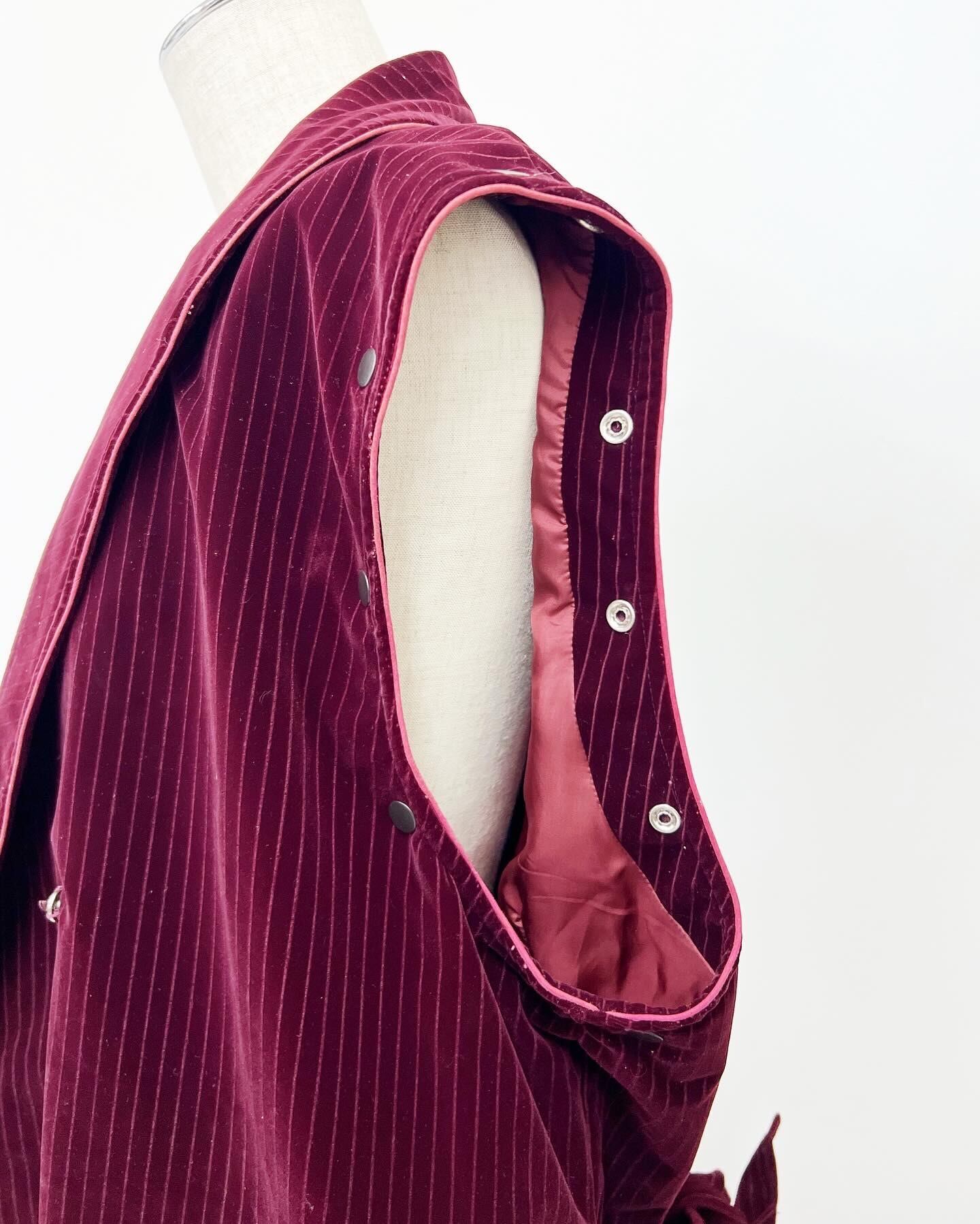 肩の付け根にあるスナップボタンは飾りか?と思いきや…実は袖が取れる仕様。と言うなんとも癖の強いディテールが目を惹きます笑