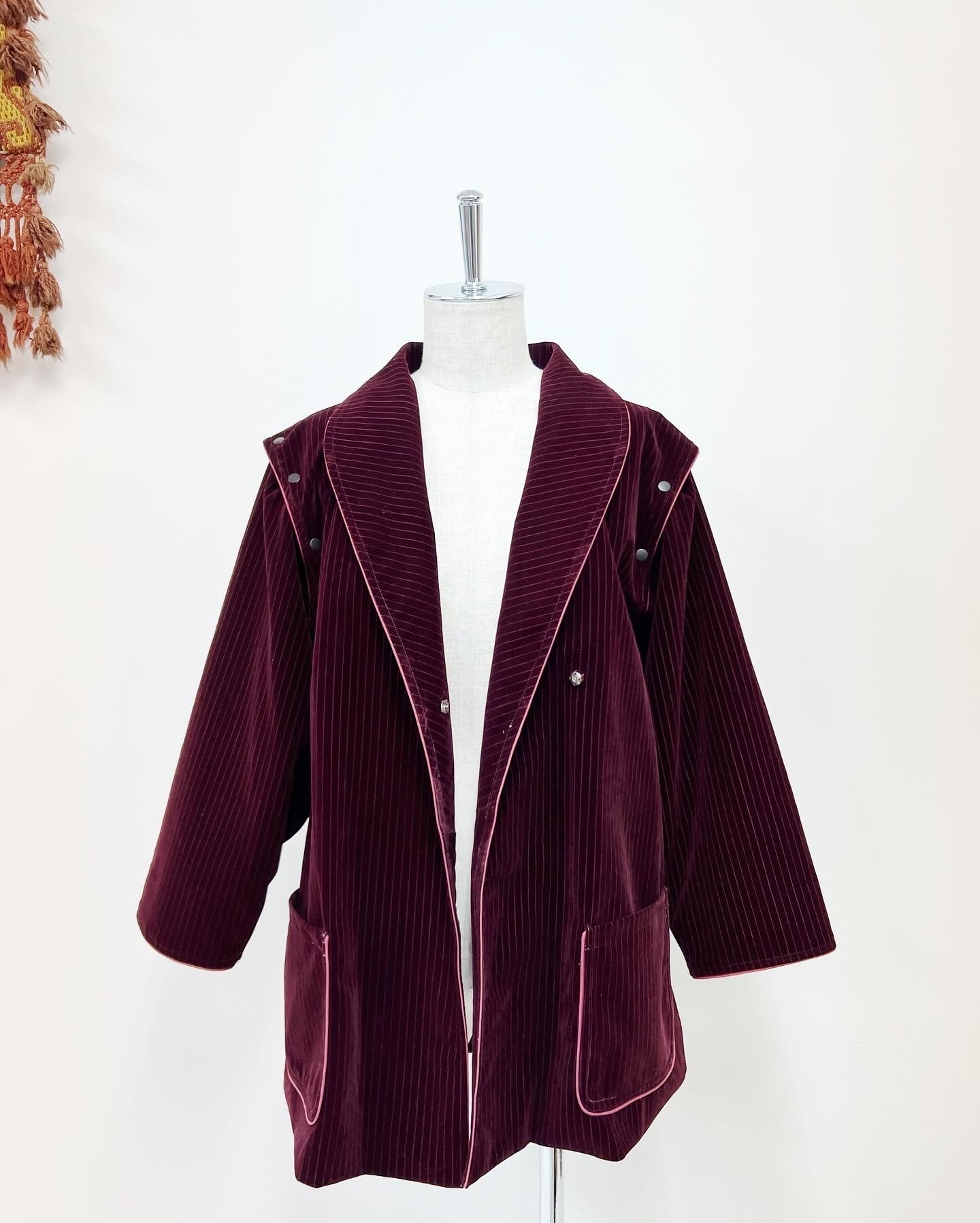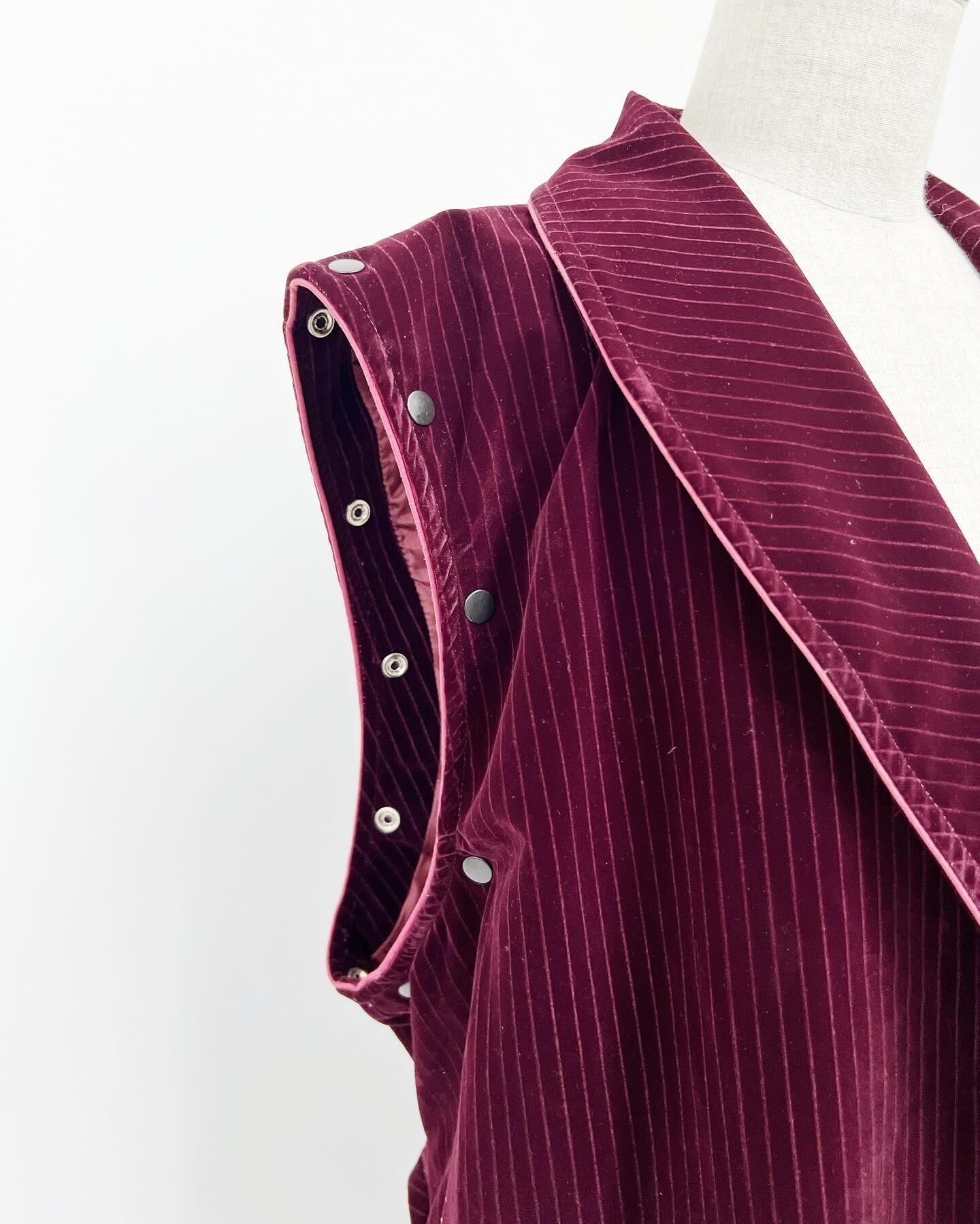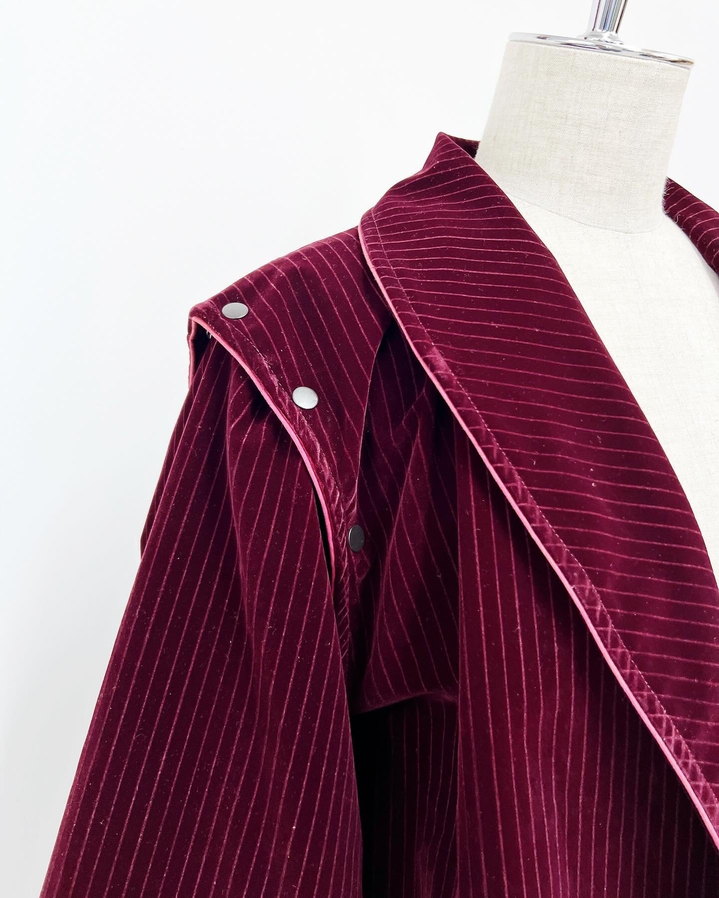 適度な光沢のある毛足が短く上品なベルベットを でチョークストライプを表現したショールカラーデザインジャケット