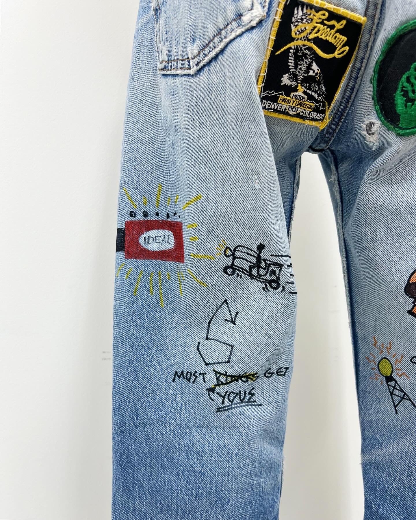 90年代に復刻された501xx。前オーナーはバイカーだったのかお尻部分が摩擦で生地が薄くなったのかワッペンが縫い付けられており、その姿が何とも愛らしい。。