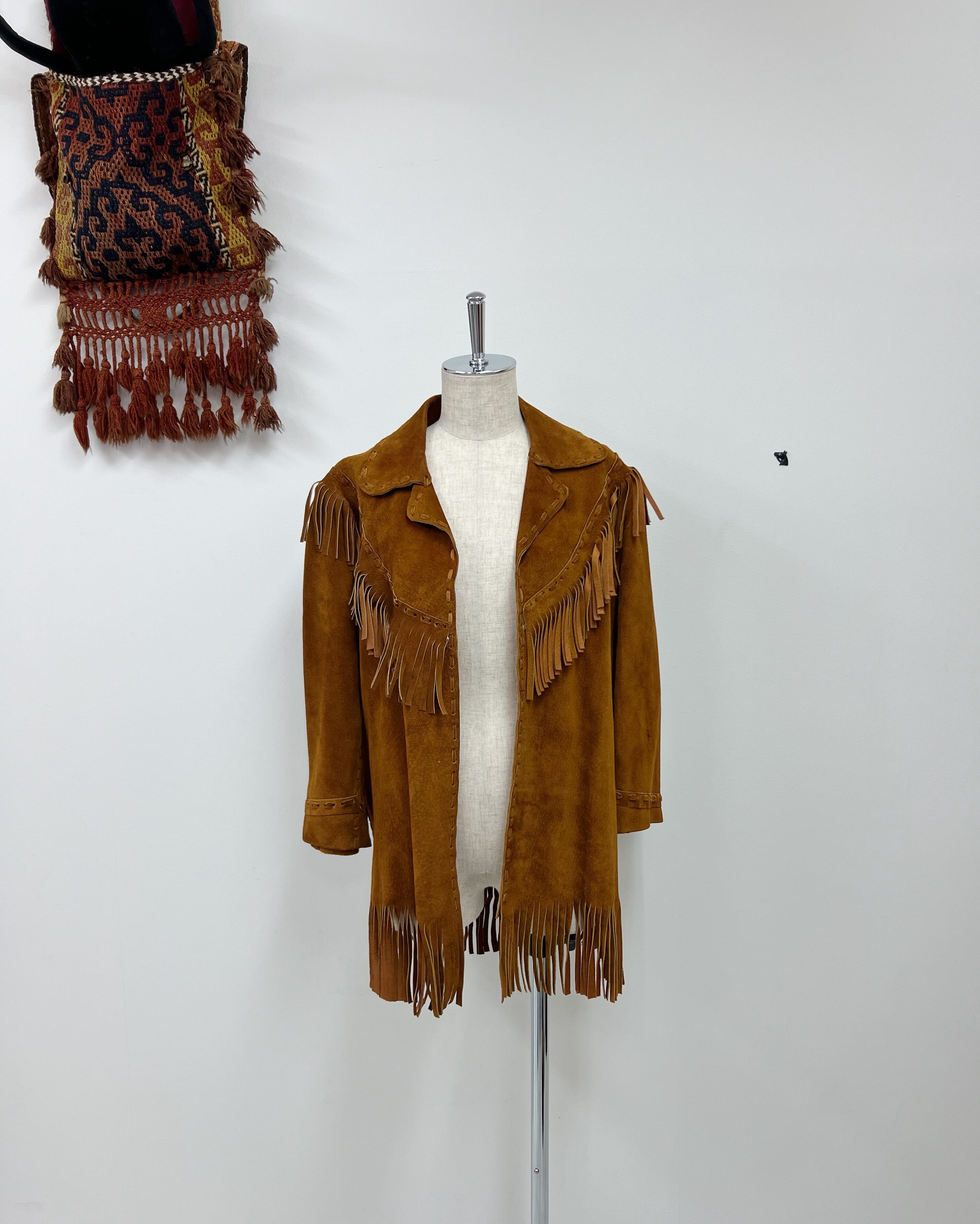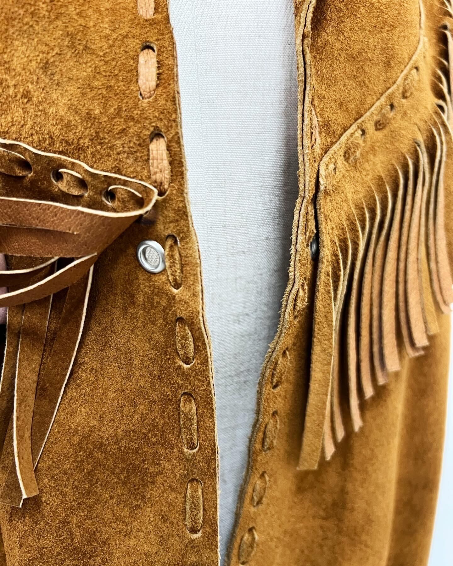 チェスト部分のフリンジ装飾で覆われて隠れていますが、マルカンが両方に通っているので、お好みで紐を通せば閉めて着ることも可能