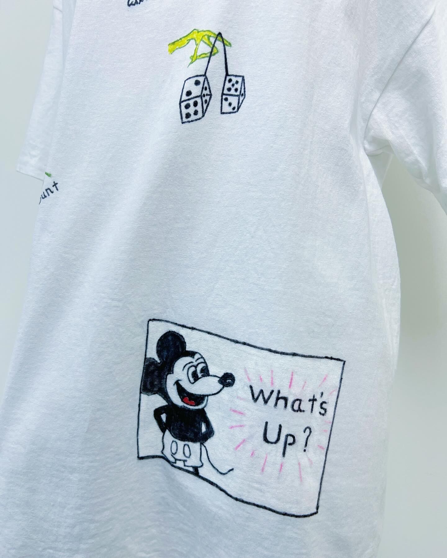 deadstock(未使用品)のT-shirtsを水通しし、tamago storeにてドローイングを行った