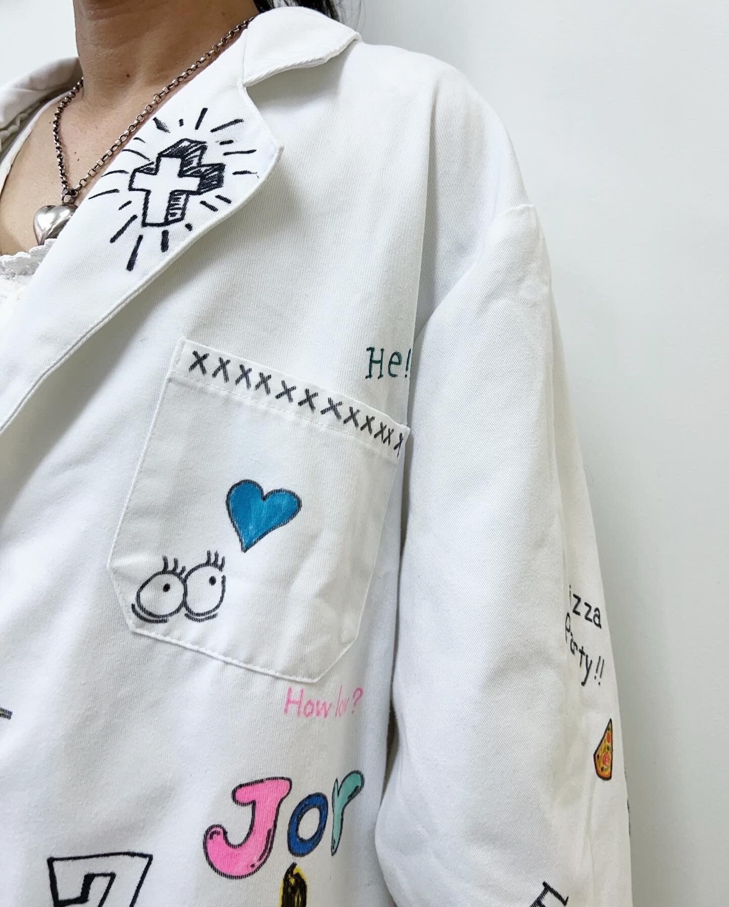 アメリカのメディカルジャケットにtamago storeにてペイントを施したキッチュで一点ものとなる逸品。